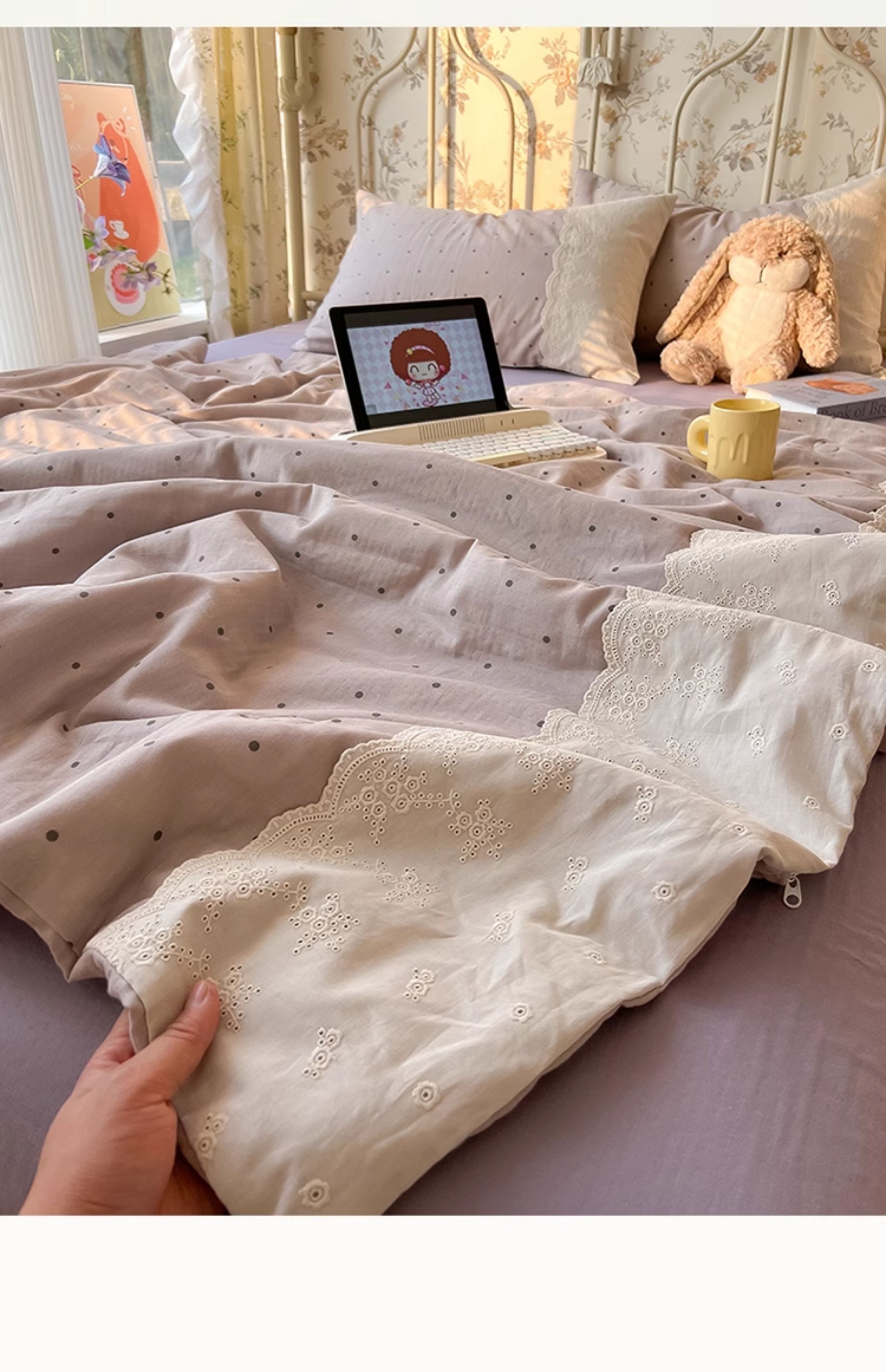 • 매우 부드러운 레이스 가장자리 - 작은 토끼 버섯 [세탁 가능, 알몸으로 자도 됨]