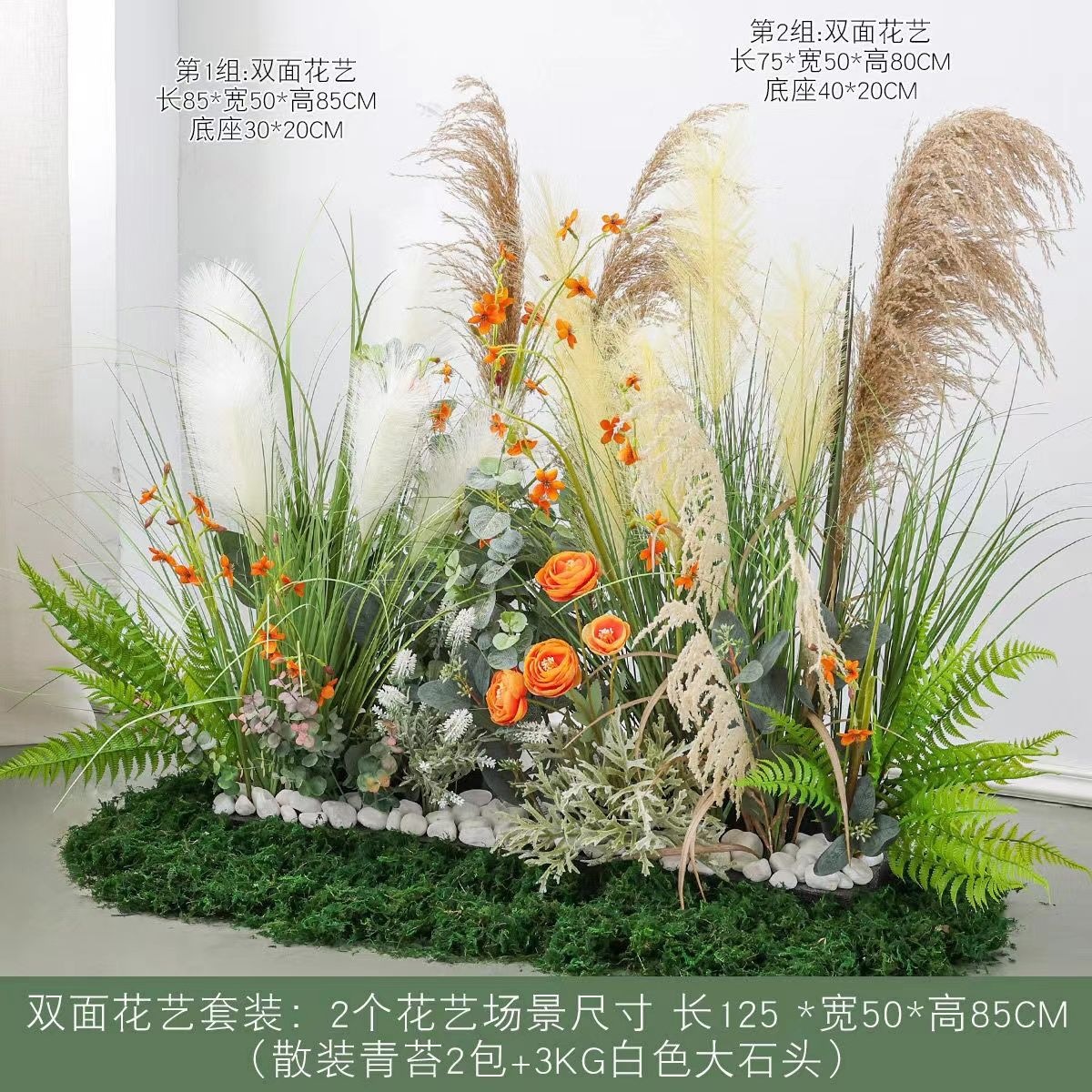 모네의 정원 인공 꽃 야외 인공 꽃과 잔디 호텔 홀 장식 갈대 잔디 꽃 창 인공 녹색 식물스토어 가기