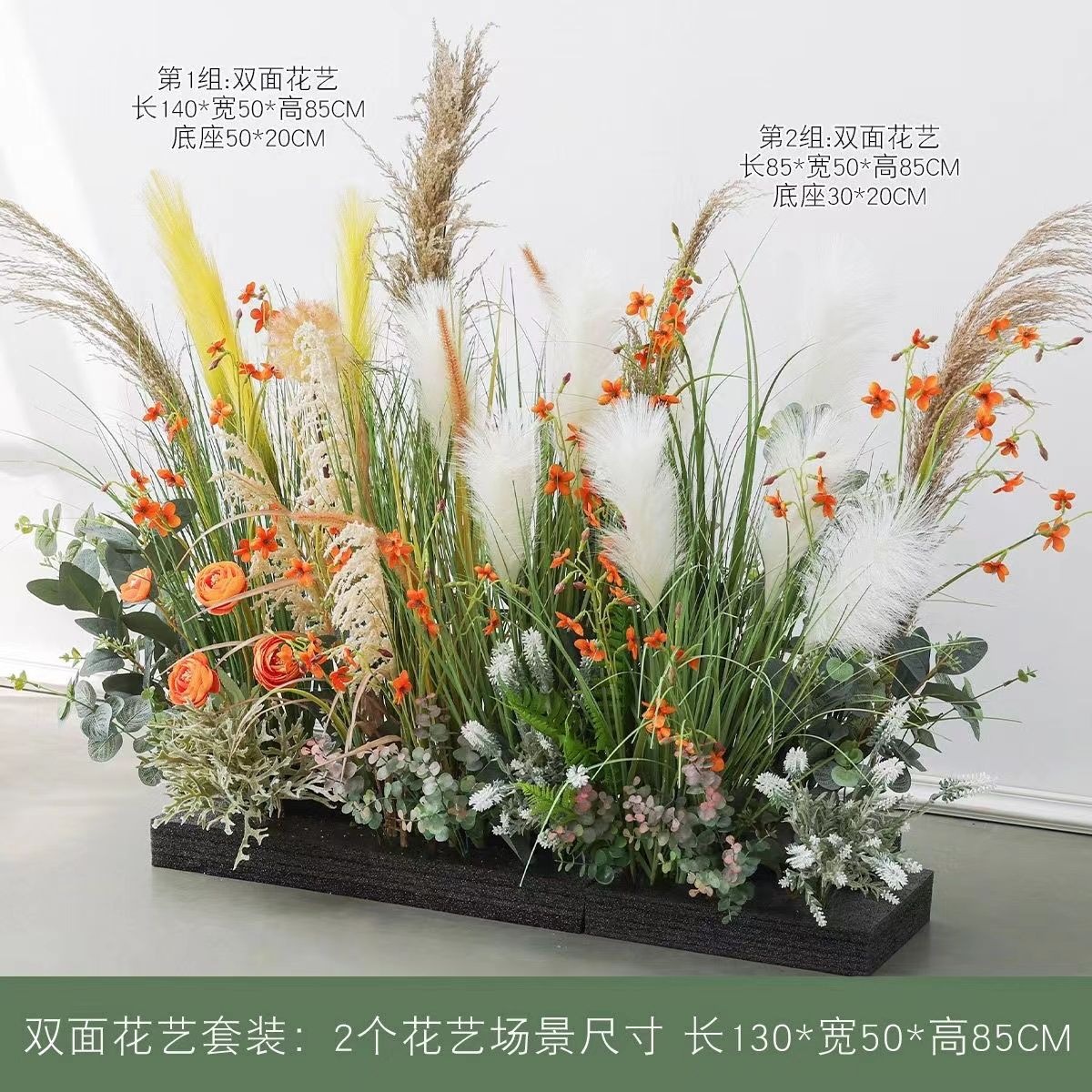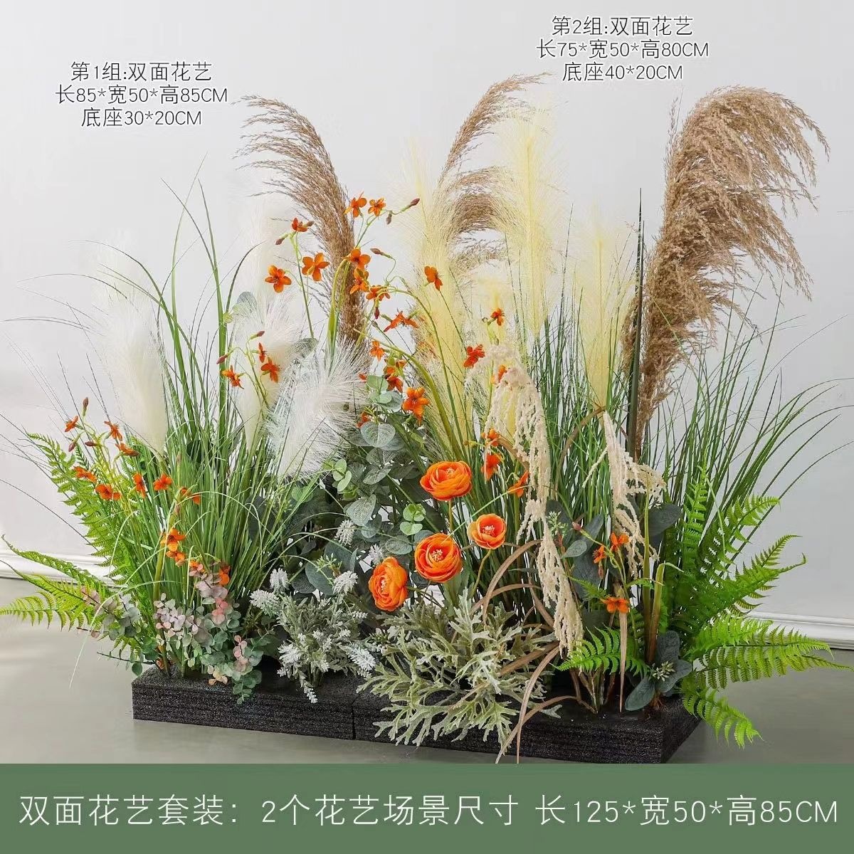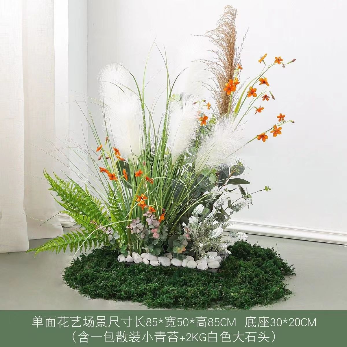 모네의 정원 인공 꽃 야외 인공 꽃과 잔디 호텔 홀 장식 갈대 잔디 꽃 창 인공 녹색 식물
