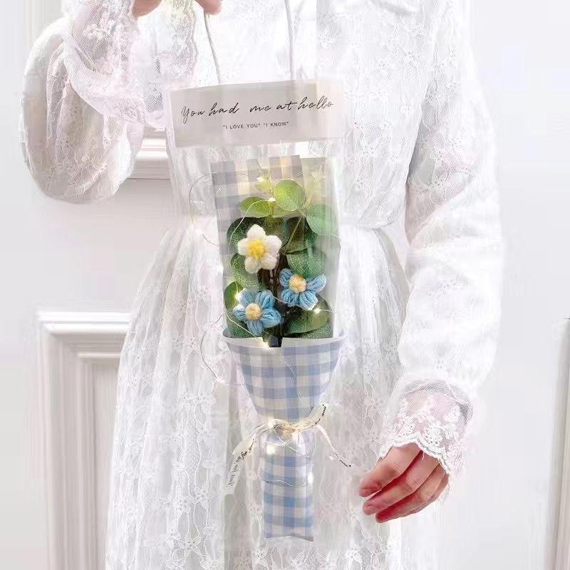 [16만명의 수집가] 울로 뜨개질한 꽃다발, 손으로 짠 장미 완제품, 창의적인 해바라기 여신의 날스토어 가기