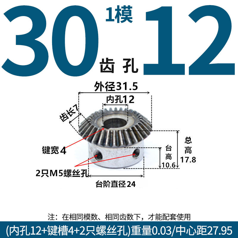 • 베벨 기어 1 금형 30 톱니 구멍 12