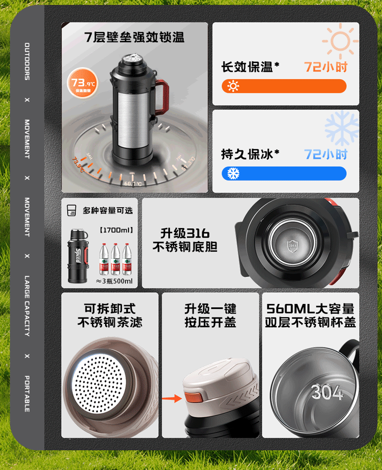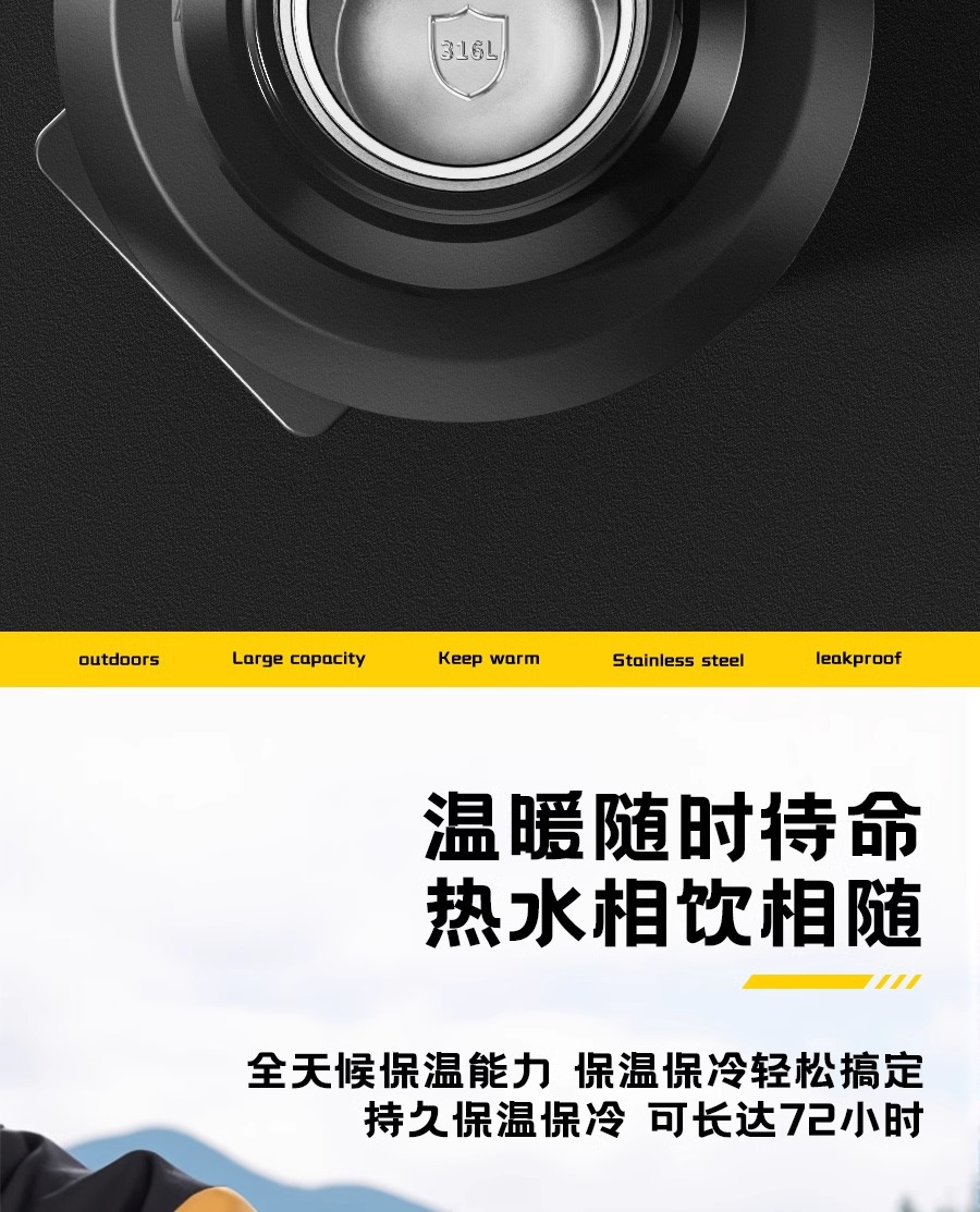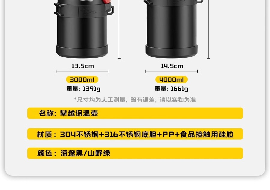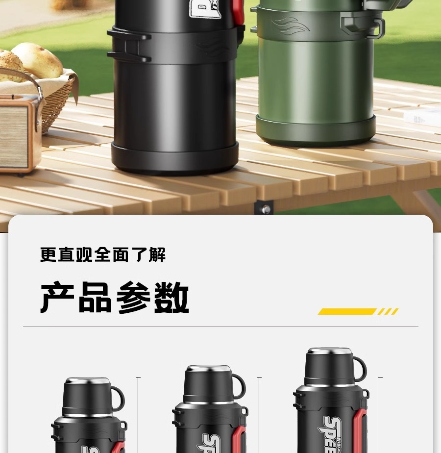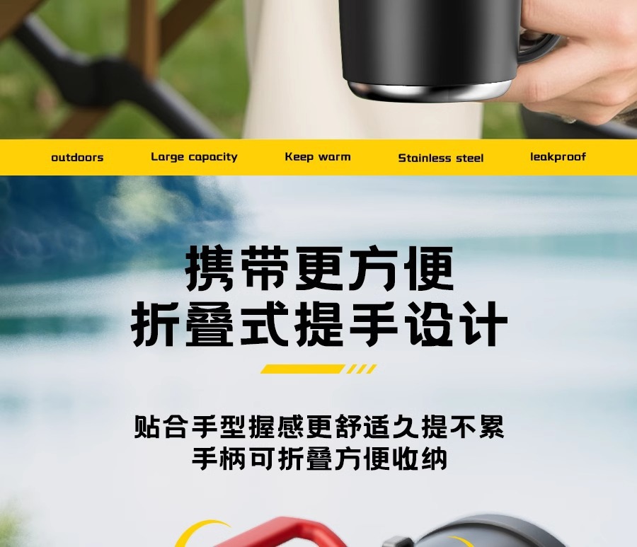 Jieanxi 야외 대용량 단열 스포츠 주전자 여행 캠핑 등산 온수 주전자 스테인레스 스틸 주전자스토어 가기
