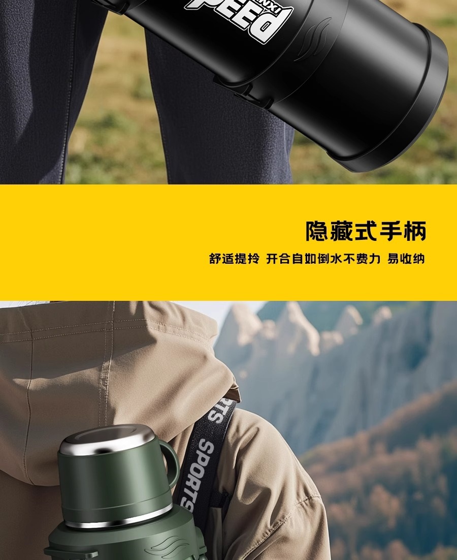 Jieanxi 야외 대용량 단열 스포츠 주전자 여행 캠핑 등산 온수 주전자 스테인레스 스틸 주전자