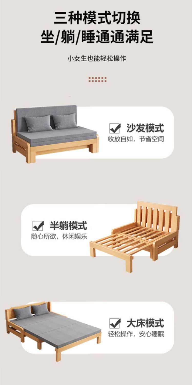 원목 소파 베드 일체형 거실 접이식 소파 베드 다기능 일체형 더블 발코니 겸용 접이식 침대스토어 가기