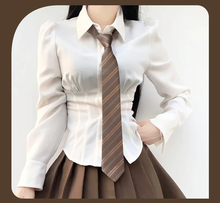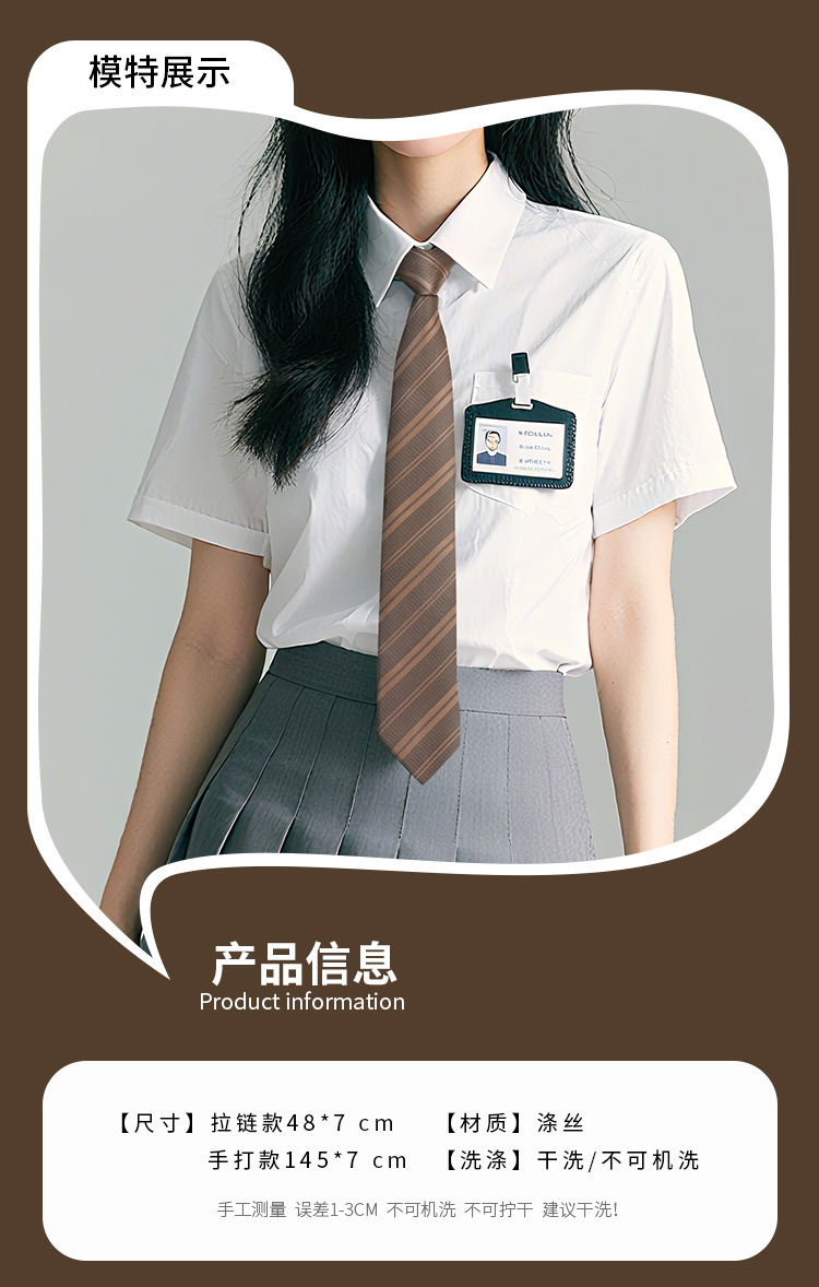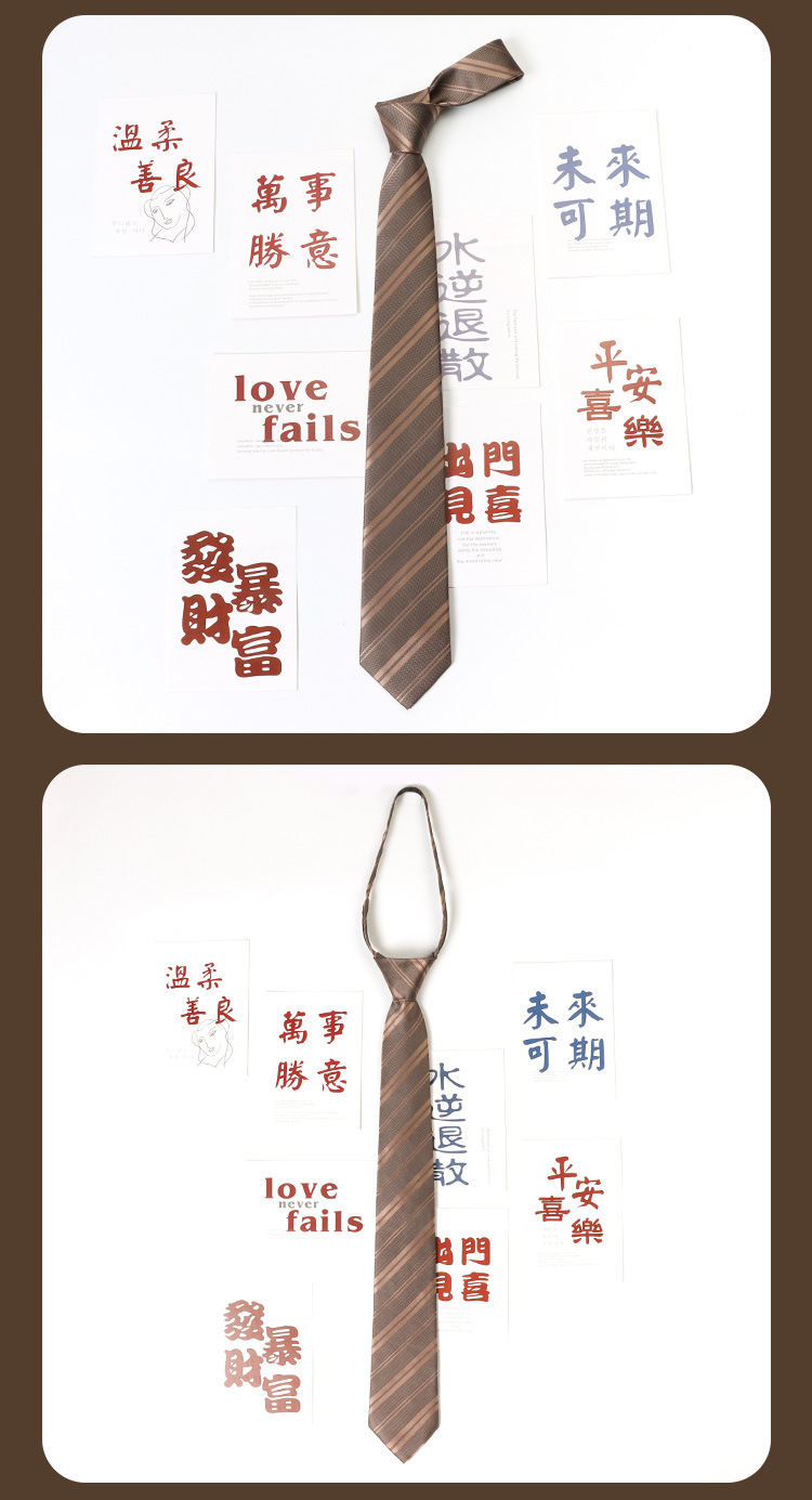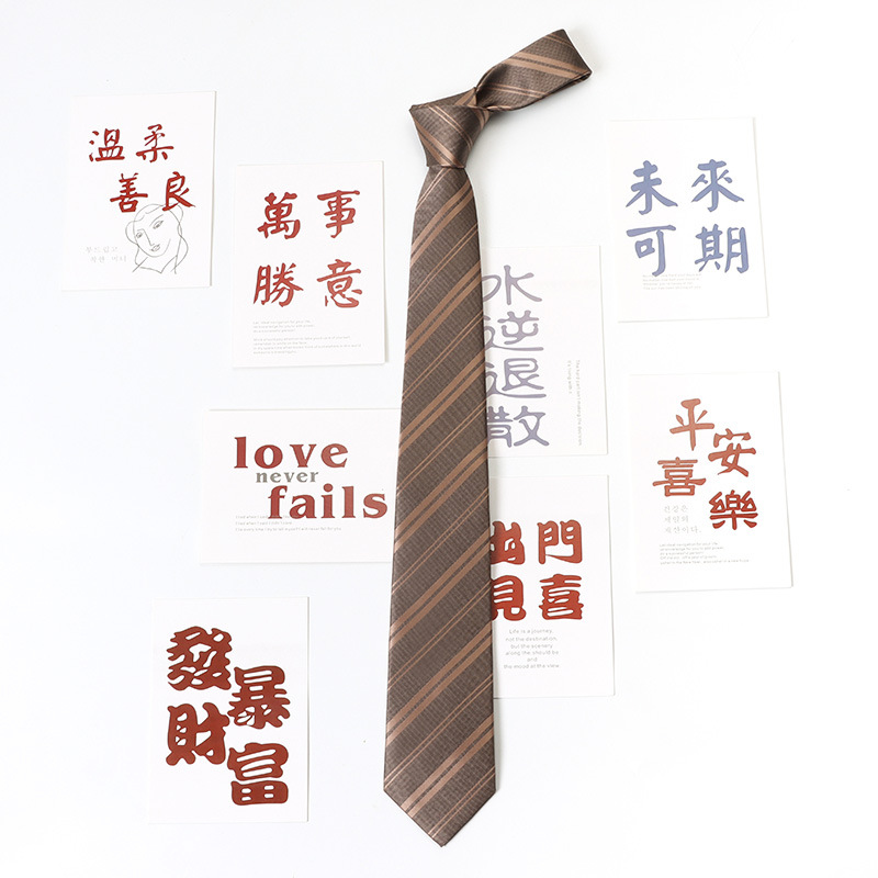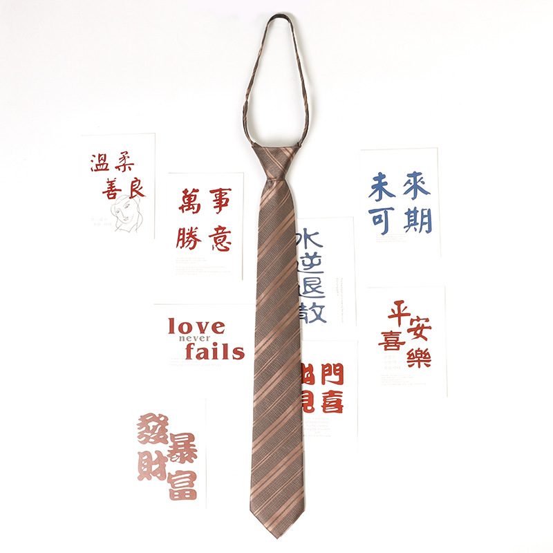 남학생과 여학생을 위한 샴페인 스트라이프 JK 넥타이, 레트로 커피 브라운, 일본 대학 스타일, 지퍼 없음, 게으른 손으로 묶음스토어 가기