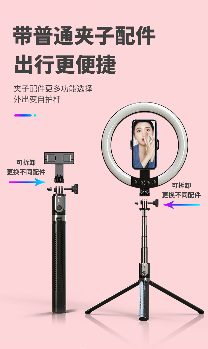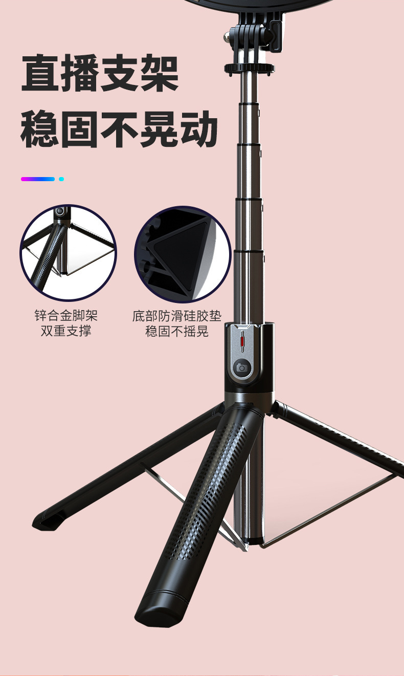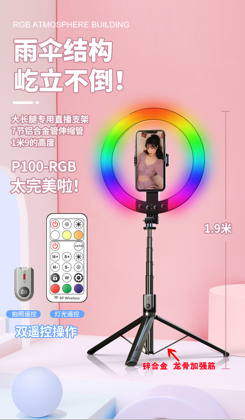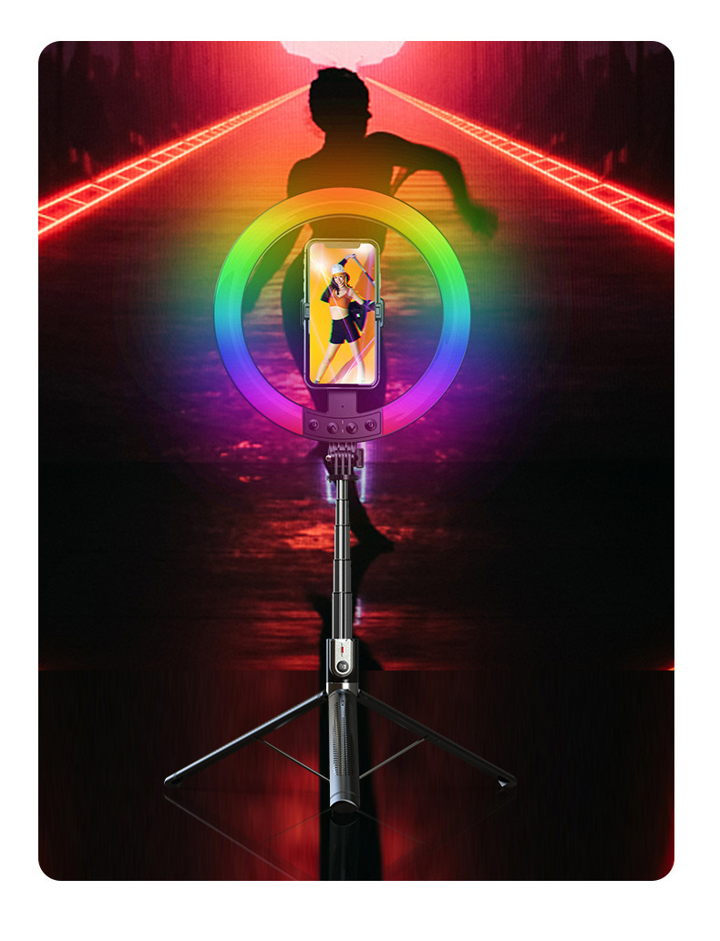 1.9m 알루미늄 합금 RGB 필 라이트 셀카 스틱 블루투스 원격 제어 휴대 전화 라이브 방송 손떨림 방지 안정기 삼각대 스탠드스토어 가기