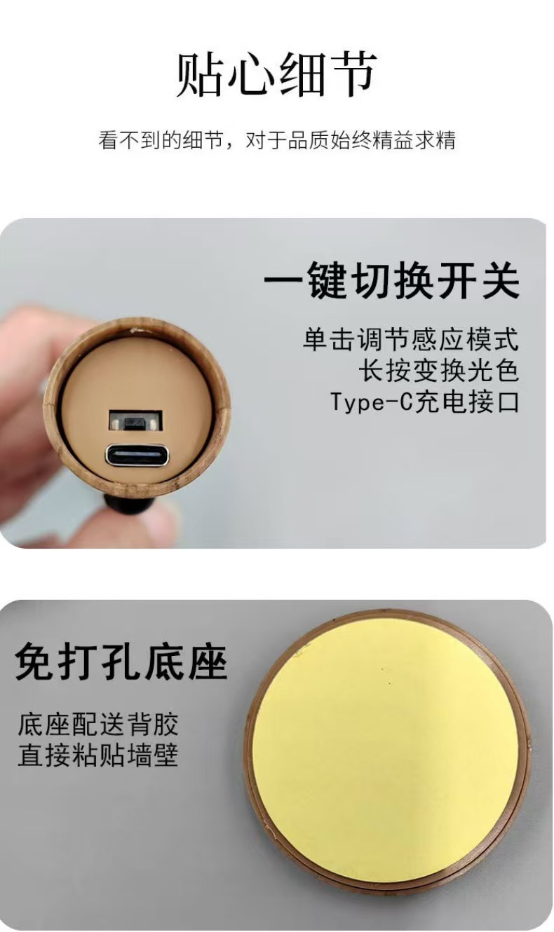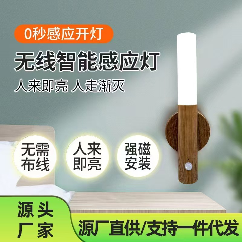 국경을 넘는 나무결 무늬 방지 충전식 야간등 자동 감지 야간용 침실 복도 자석 벽등 인체 감지등스토어 가기
