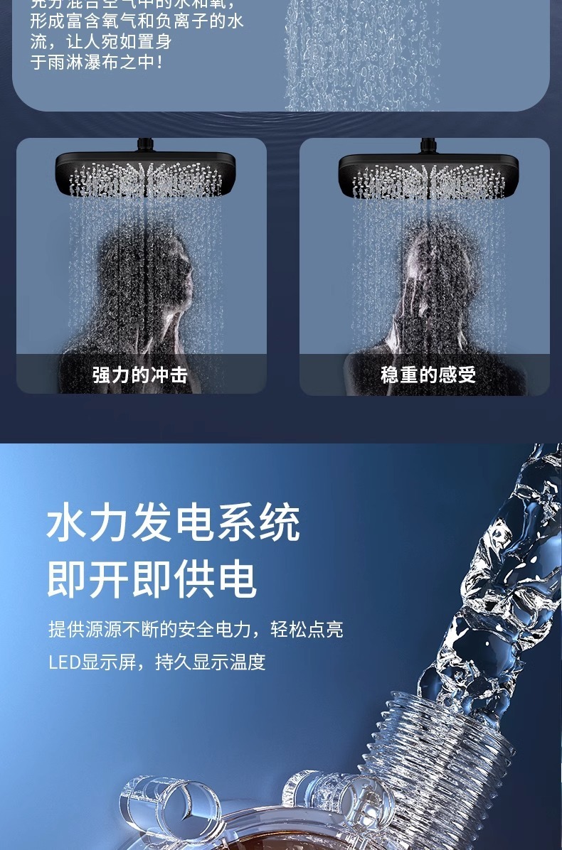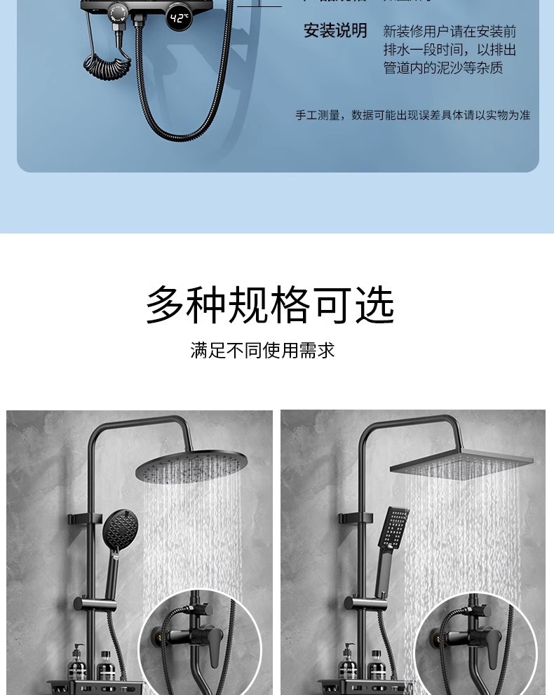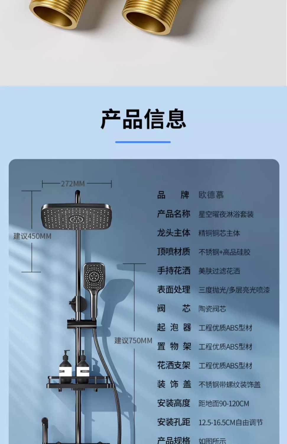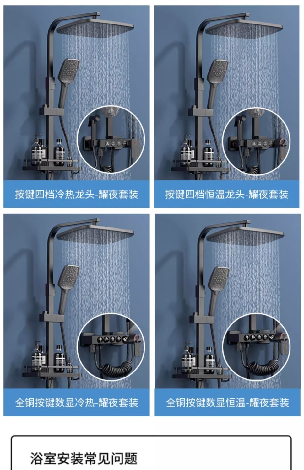 Dehe 온도 조절 샤워 헤드 세트 가정용 검정색 가압 욕실 레인 샤워 헤드 샤워기 표면 장착 공장 도매