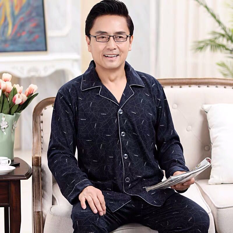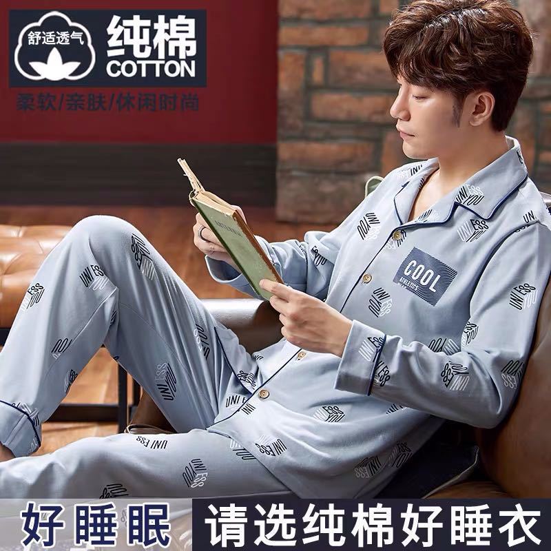 순수 코튼 잠옷 남성 가을, 겨울 긴 소매 카디건 코튼 봄, 가을 플러스 사이즈 남성 홈웨어 세트스토어 가기