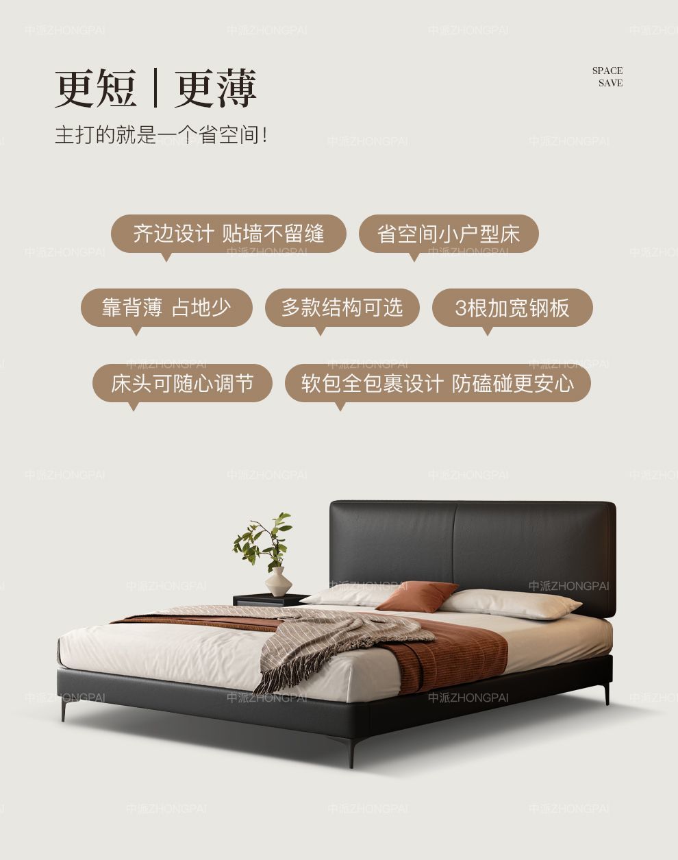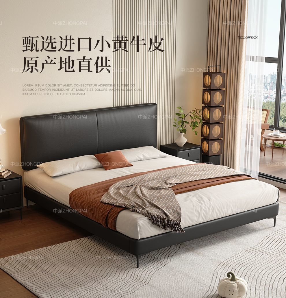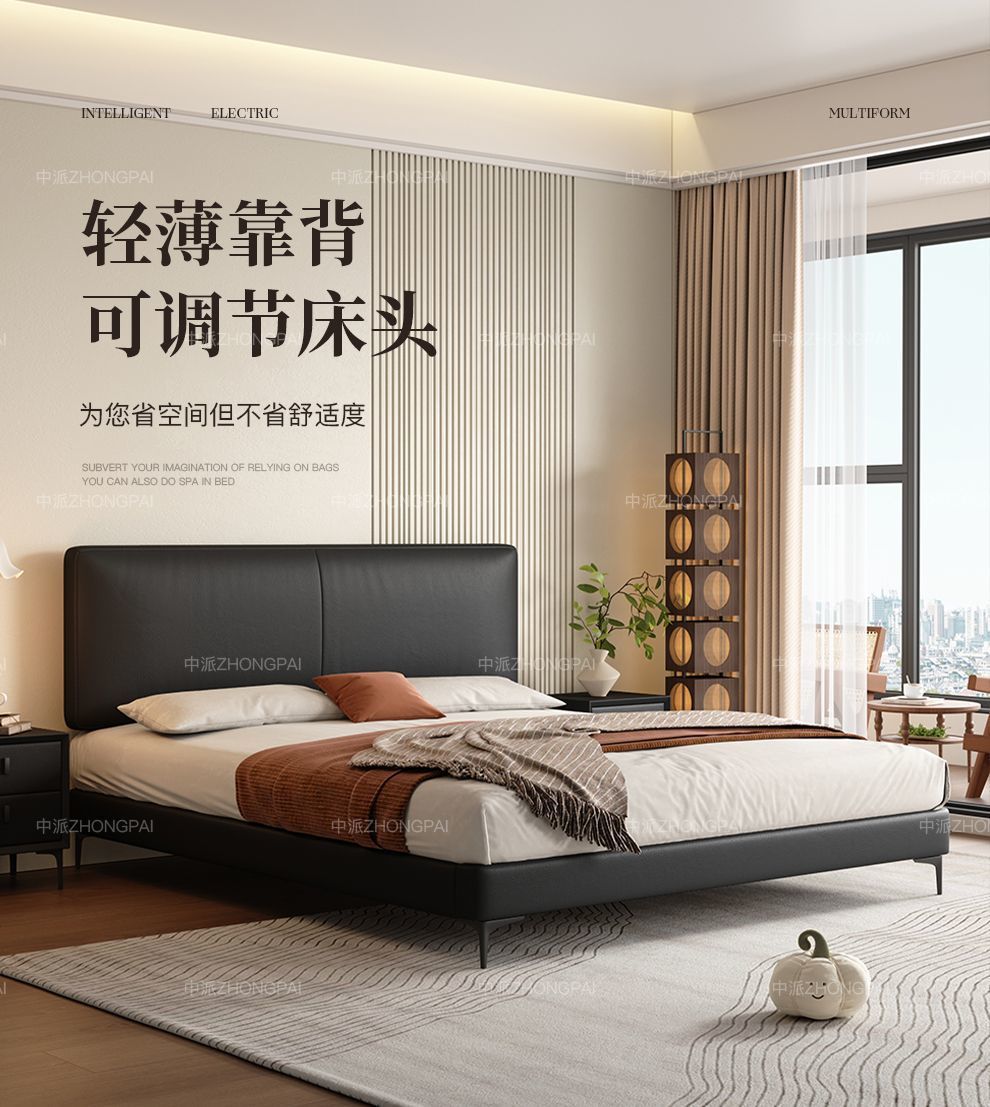새로운 초박형 침대 옆 침대 가죽 침대 1.8m 더블 침대 마스터 침실 1.5m 작은 아파트 퀸 사이즈 웨딩 침대 가죽 아트 침대스토어 가기