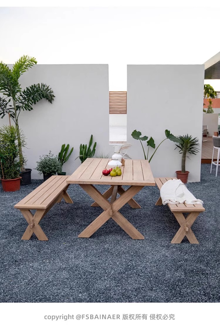 야외 원목 테이블과 의자, 안뜰 가구, 빌라 안뜰 야외 식탁과 의자, 티크 테이블과 의자, 방수 및 자외선 차단제 긴 테이블과 의자