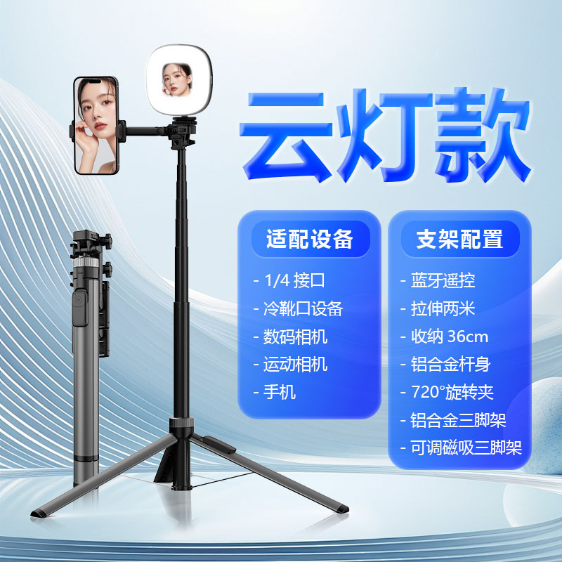 • 뷰티 램프 모델【1.9m】휴대폰 및 카메라용 범용 + 알루미늄 합금 샤프트 + 충전 리모콘 + 자기 삼각대
