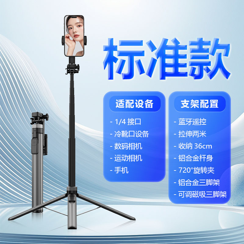 • 표준 모델 [ 1.9m ] 휴대폰 카메라 범용 + 알루미늄 합금 샤프트 + 충전 리모콘 + 자기 삼각대