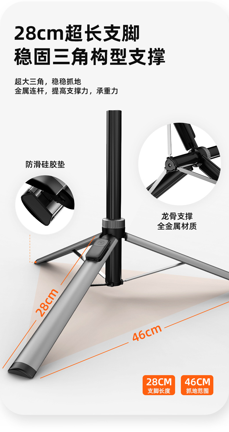 새로운 알루미늄 합금 휴대 전화 셀카 스틱 삼각대 개폐식 바닥 장착형 다기능 라이브 방송 카메라 스탠드