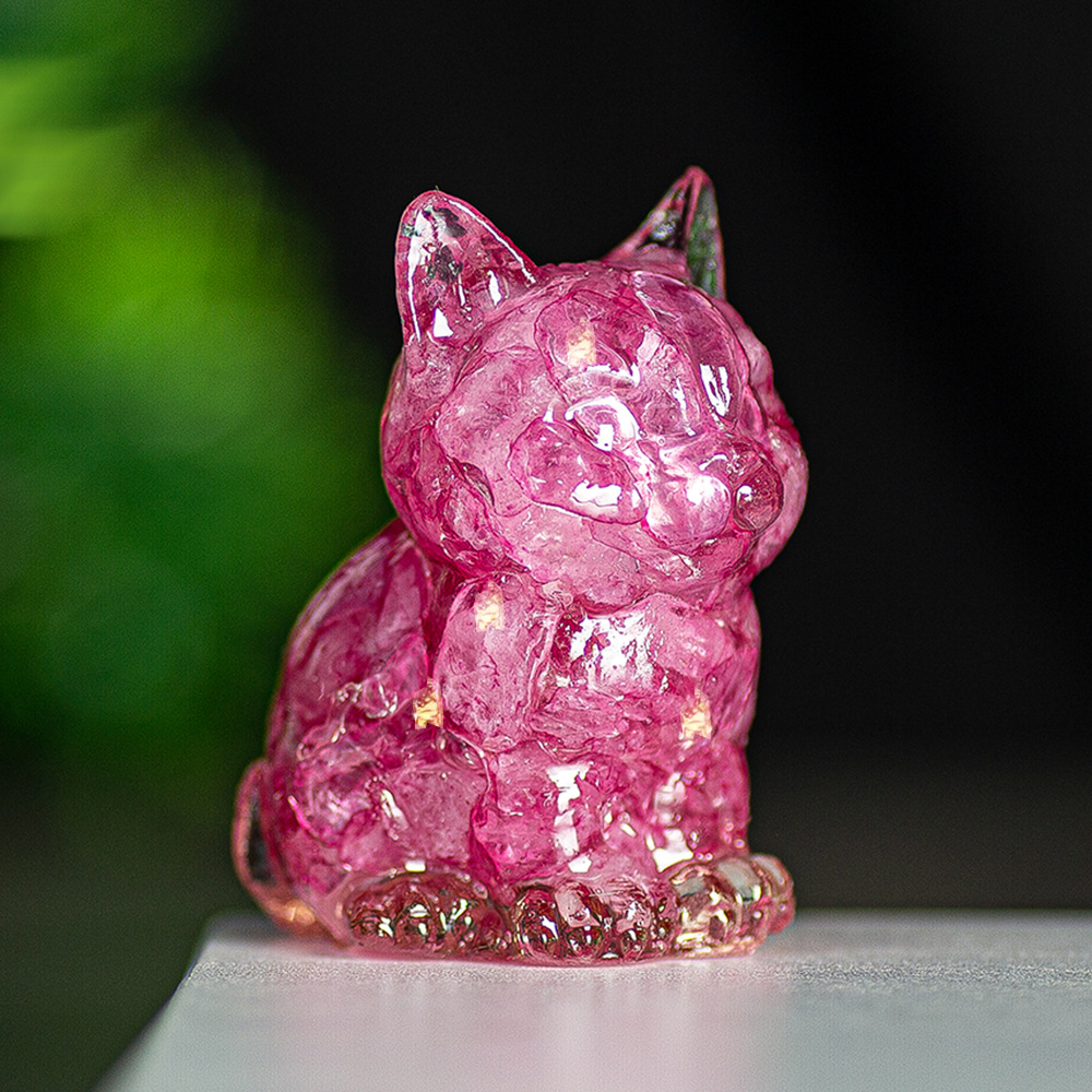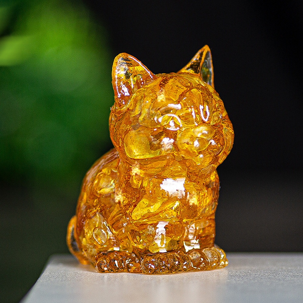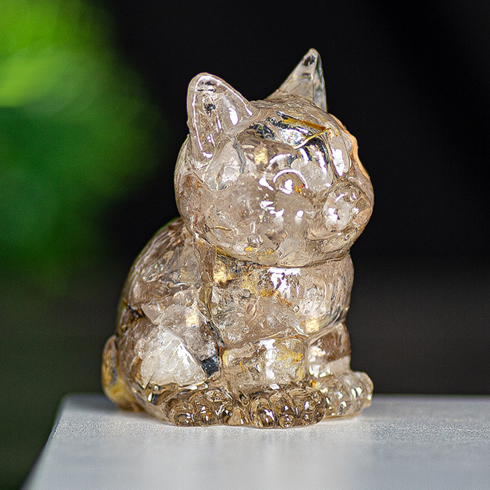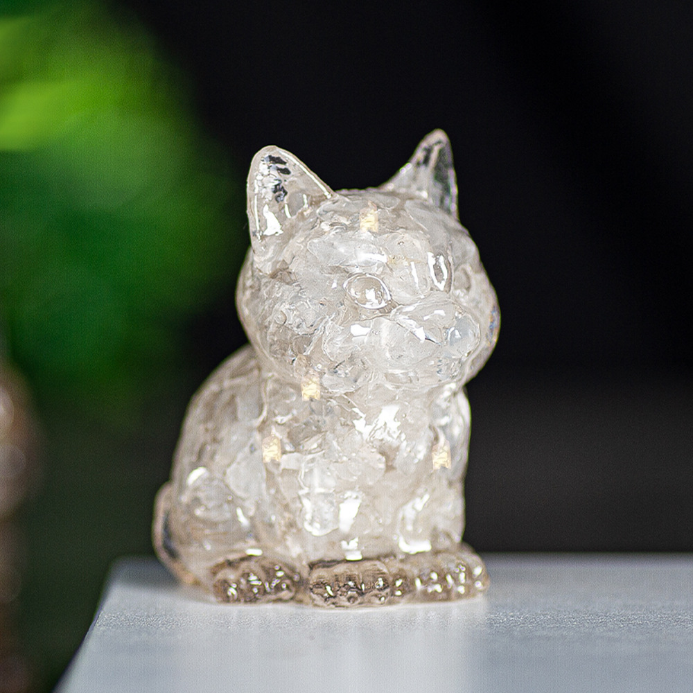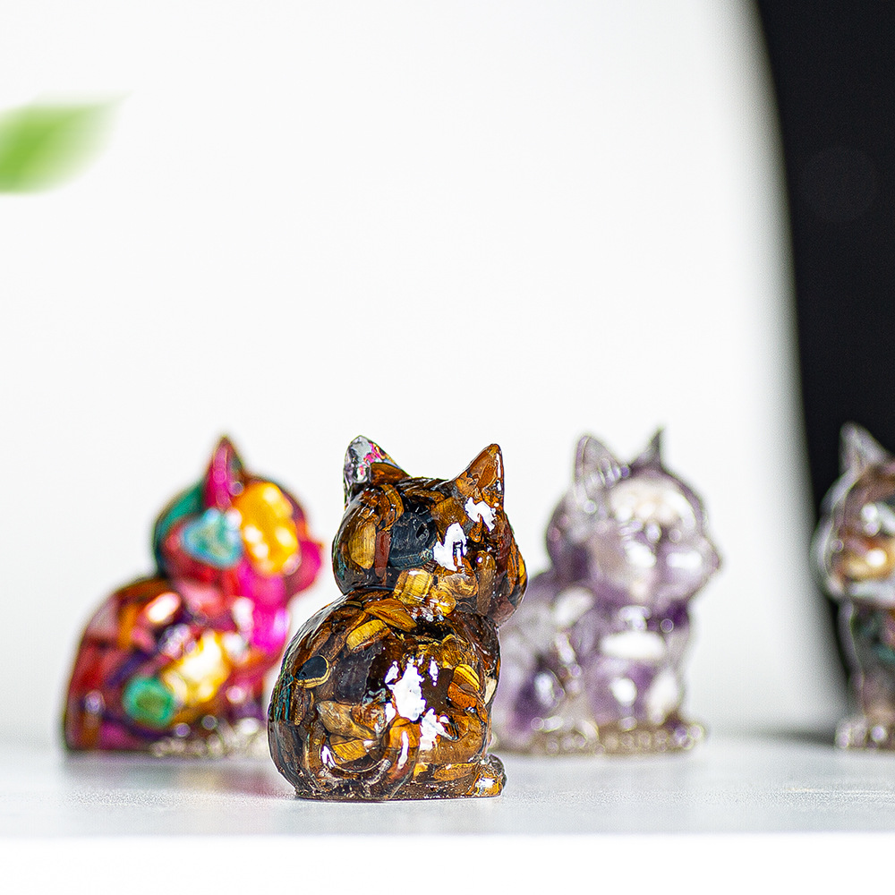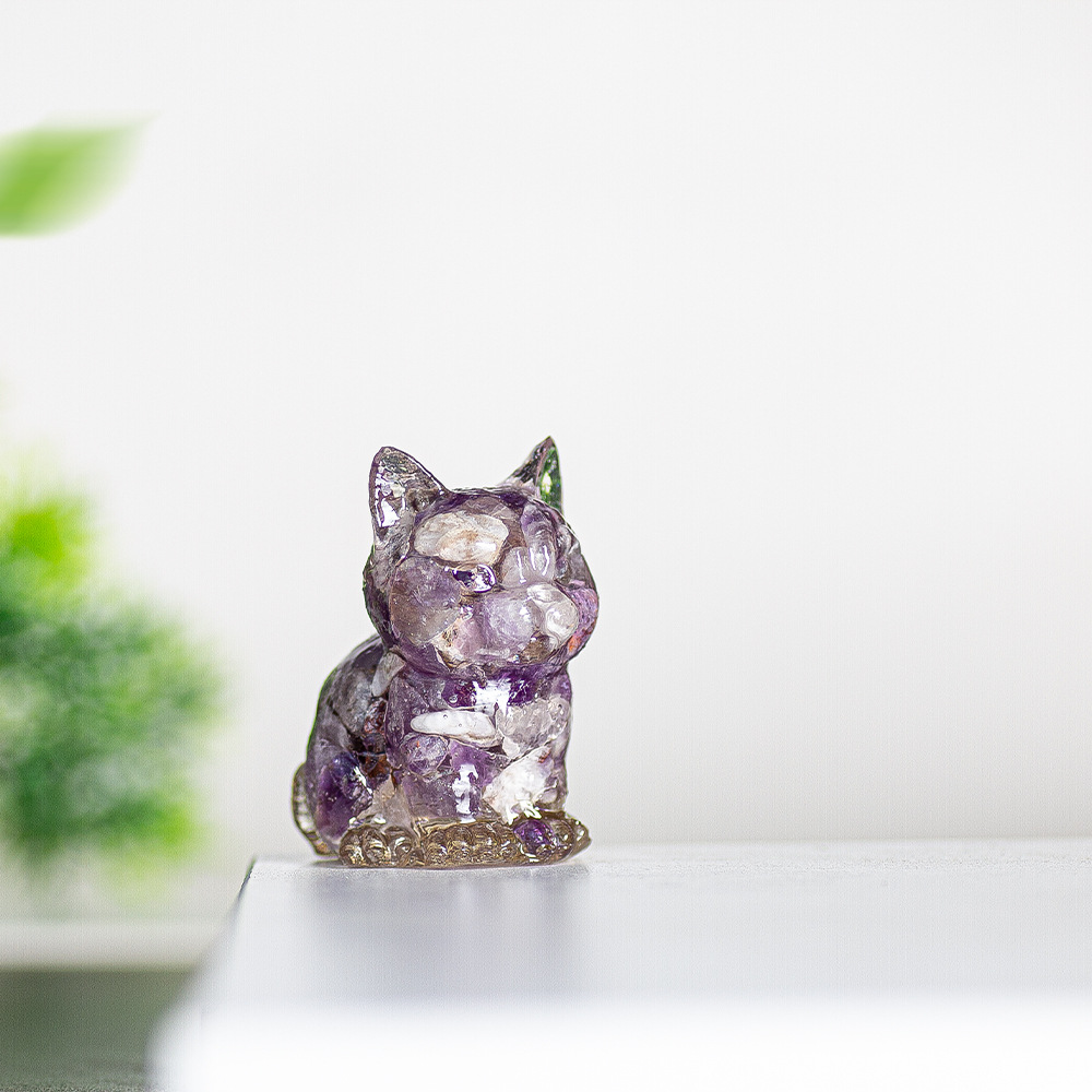 "수지로 채워진 천연 크리스탈 고양이 장식품" 홈 마스코트 장식 크리스탈 수제 귀여운 고양이 조각품