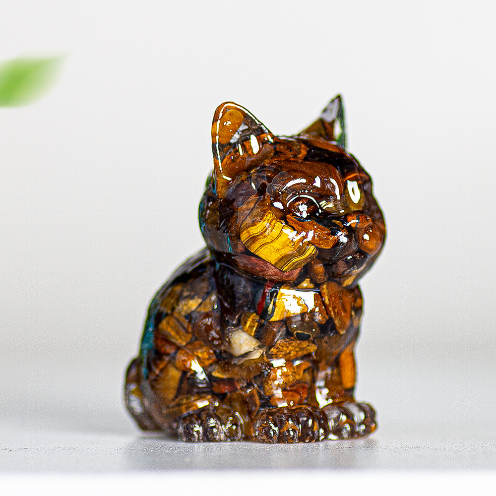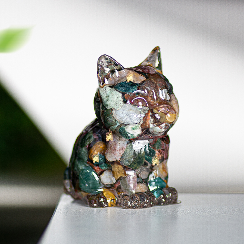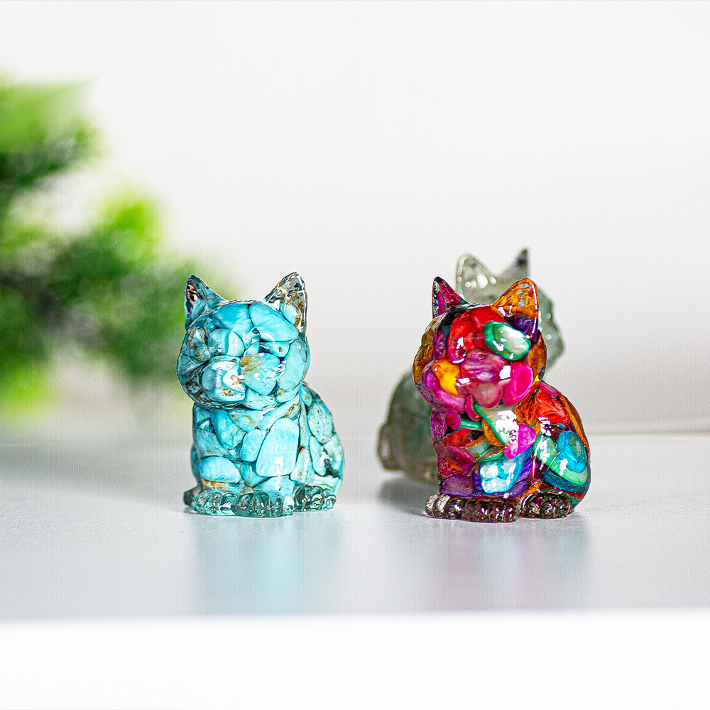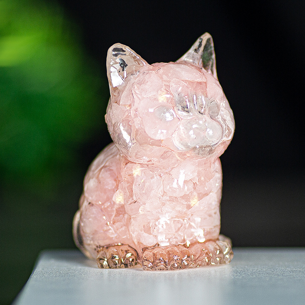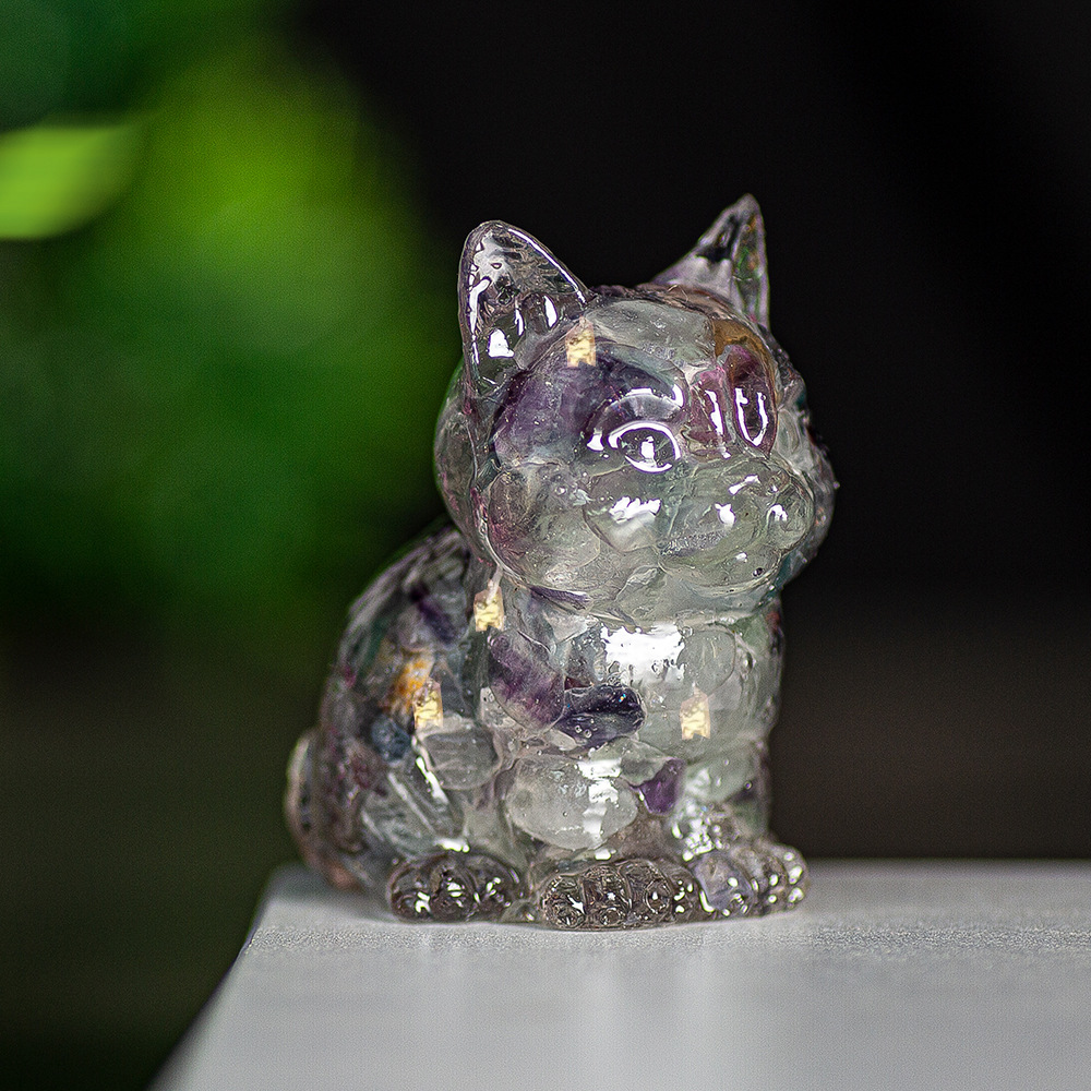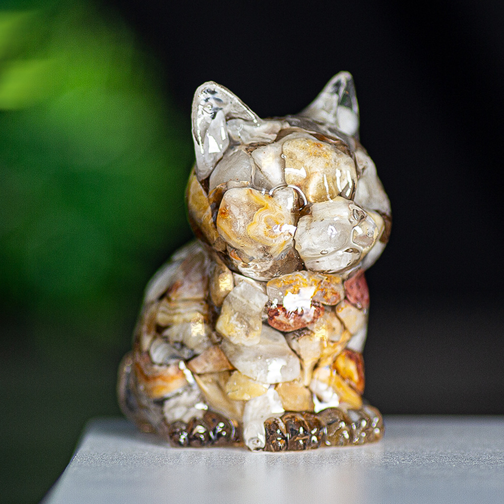 "수지로 채워진 천연 크리스탈 고양이 장식품" 홈 마스코트 장식 크리스탈 수제 귀여운 고양이 조각품
