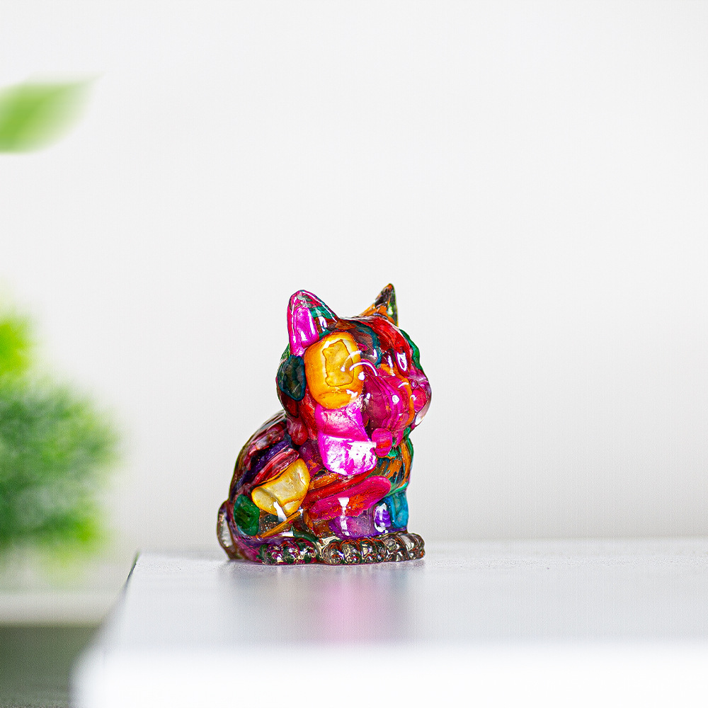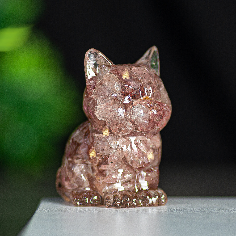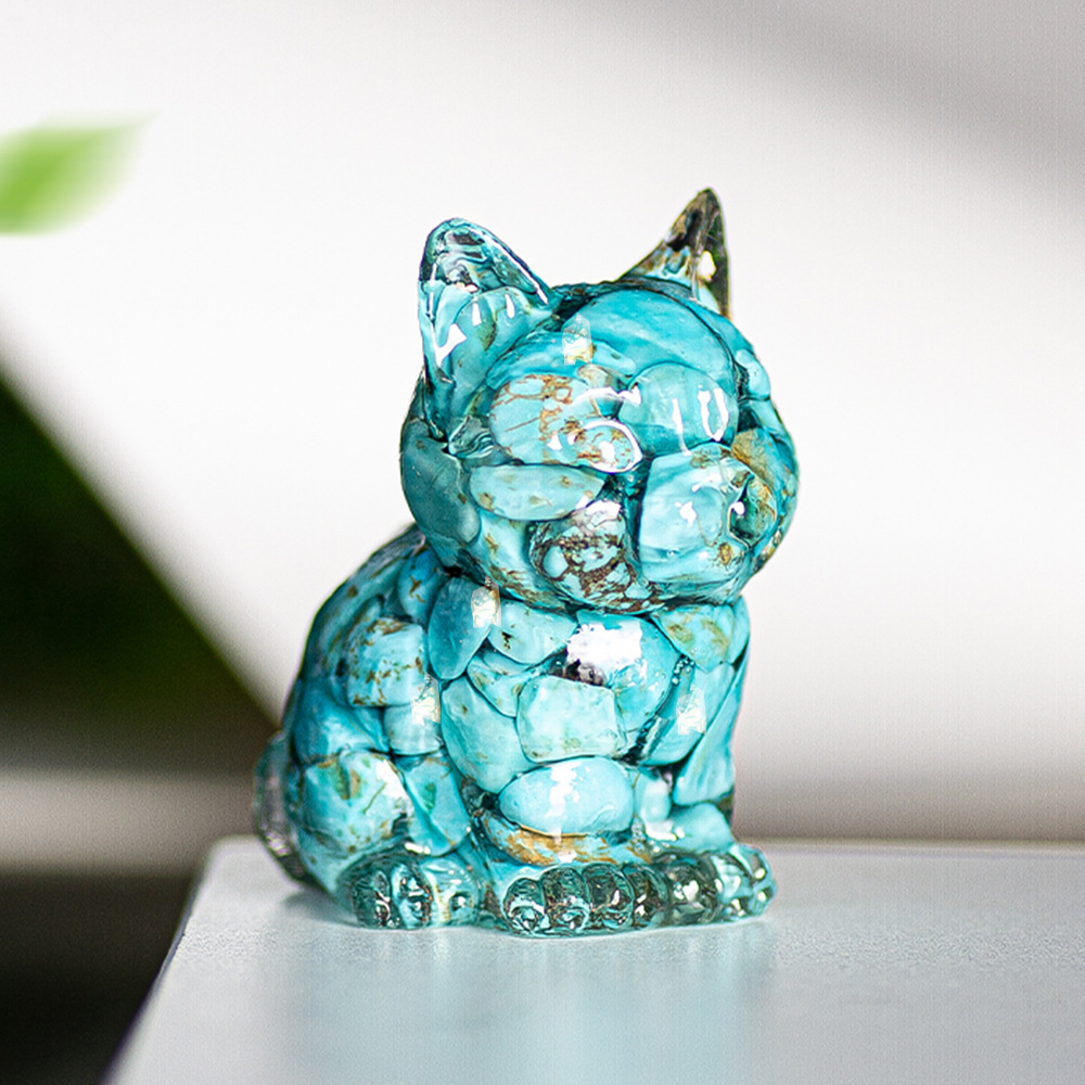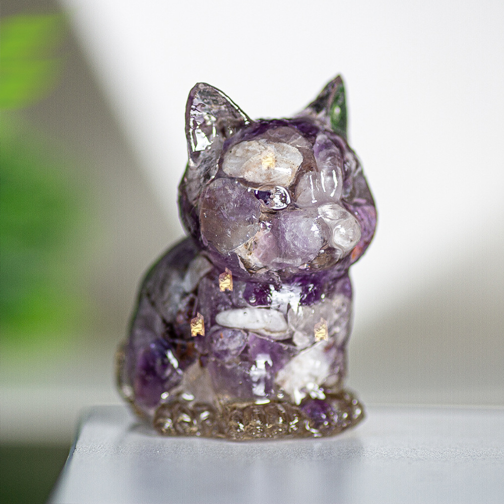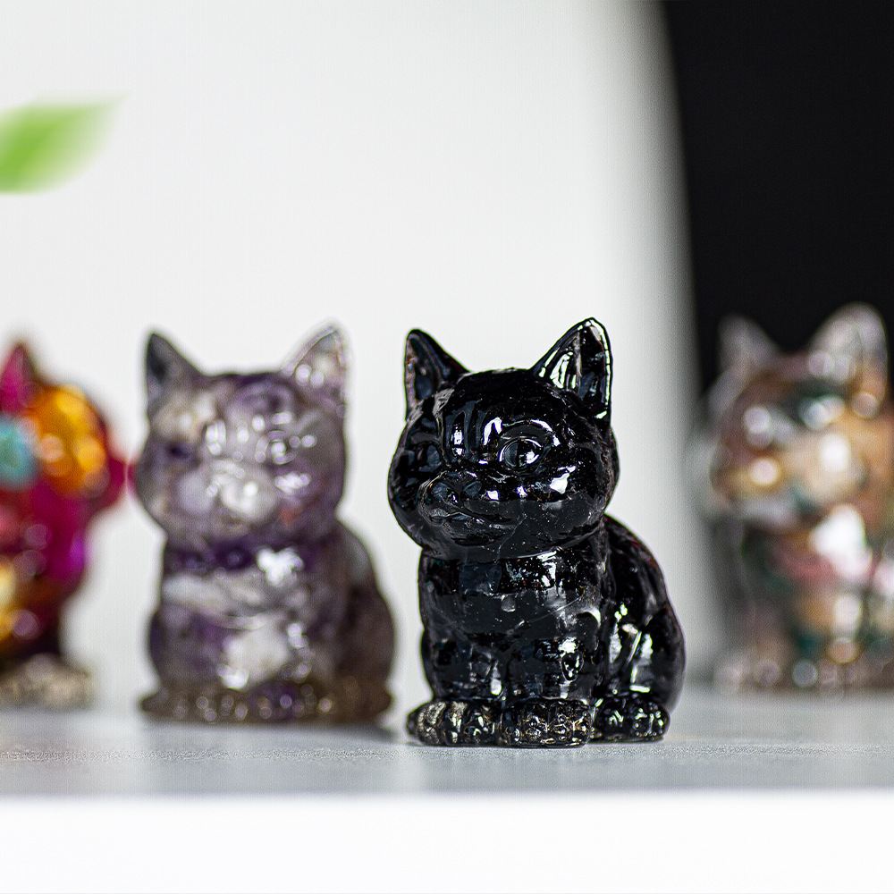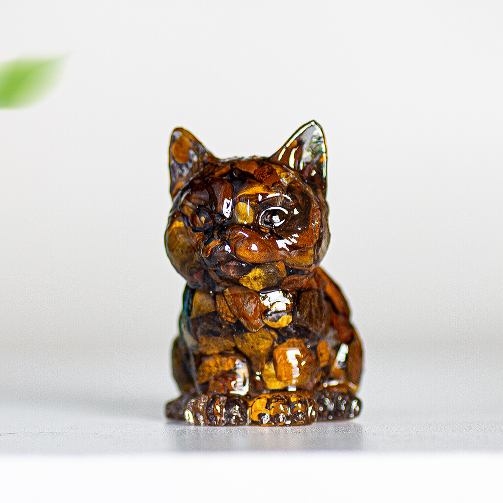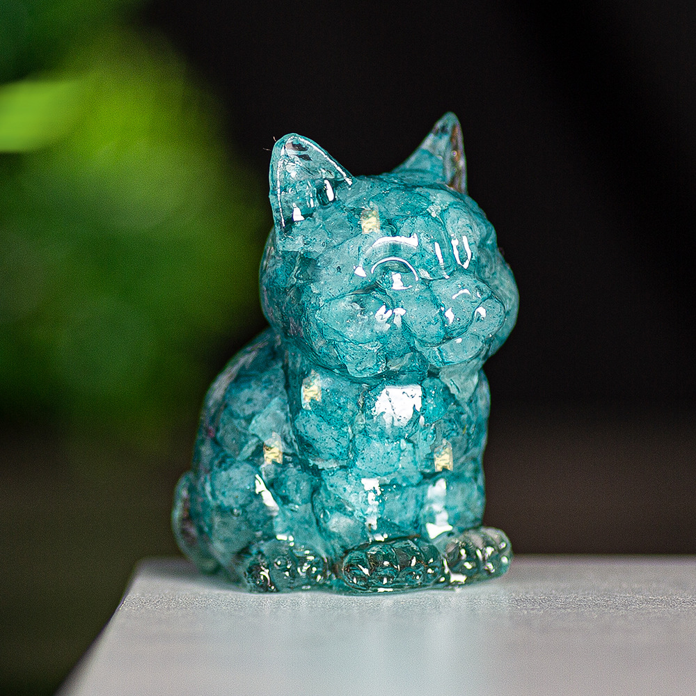 "수지로 채워진 천연 크리스탈 고양이 장식품" 홈 마스코트 장식 크리스탈 수제 귀여운 고양이 조각품