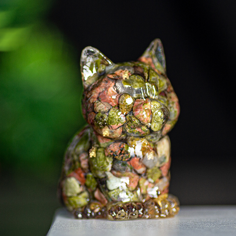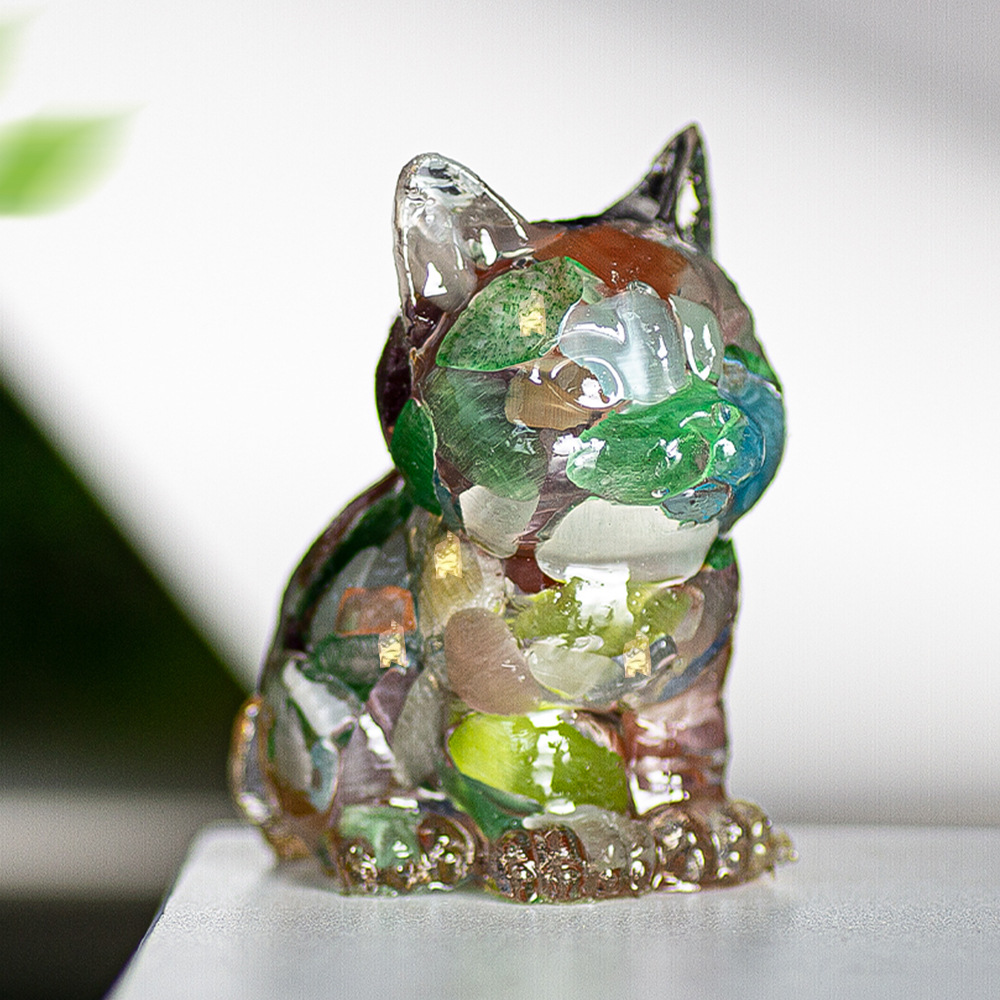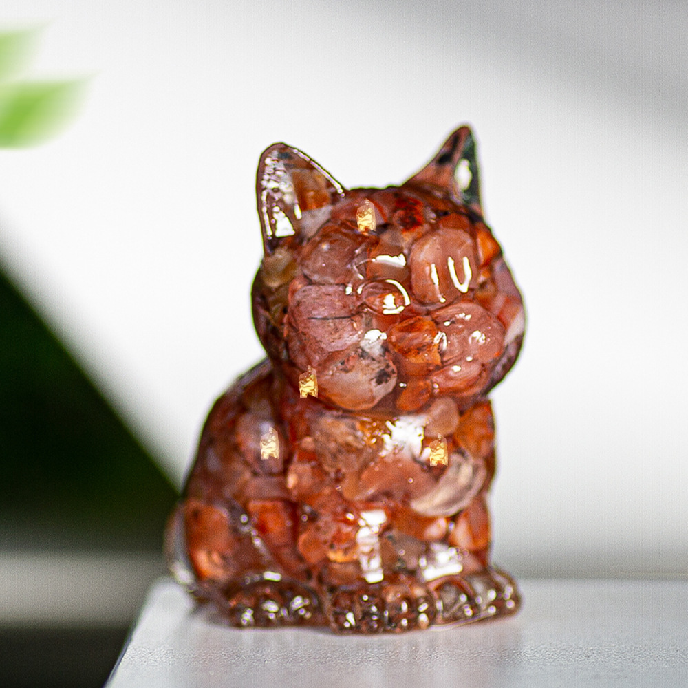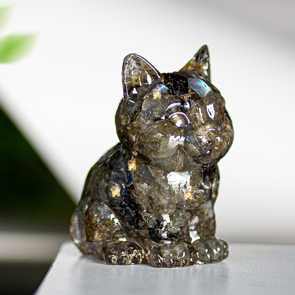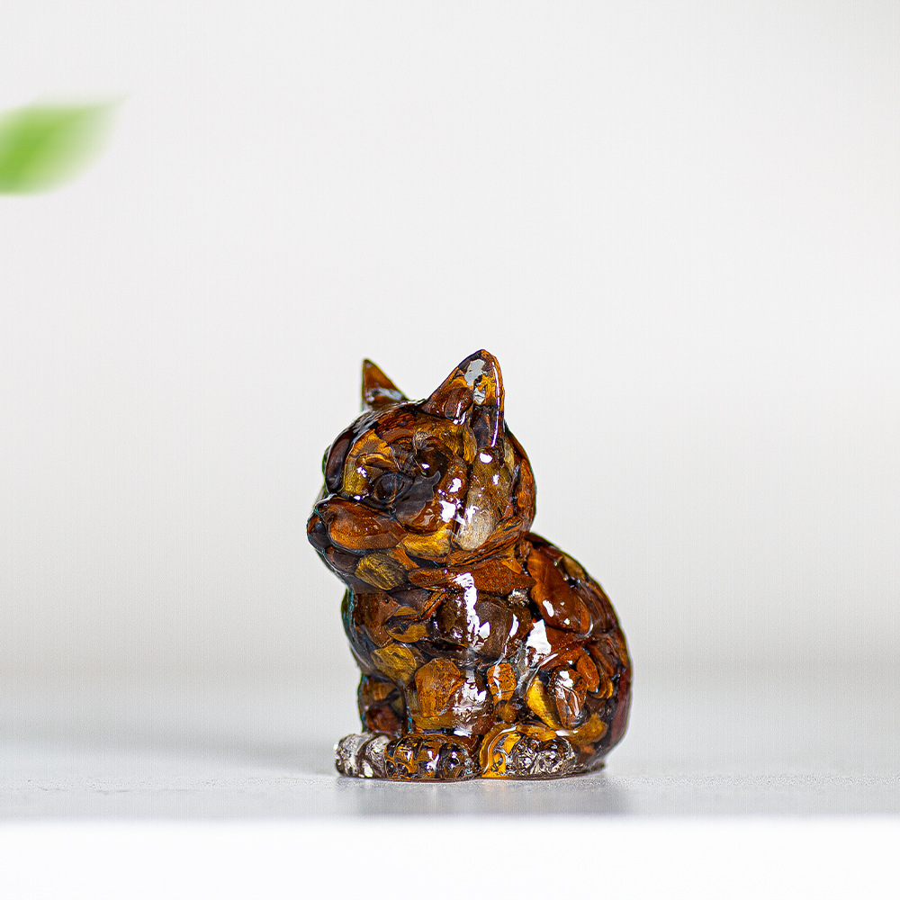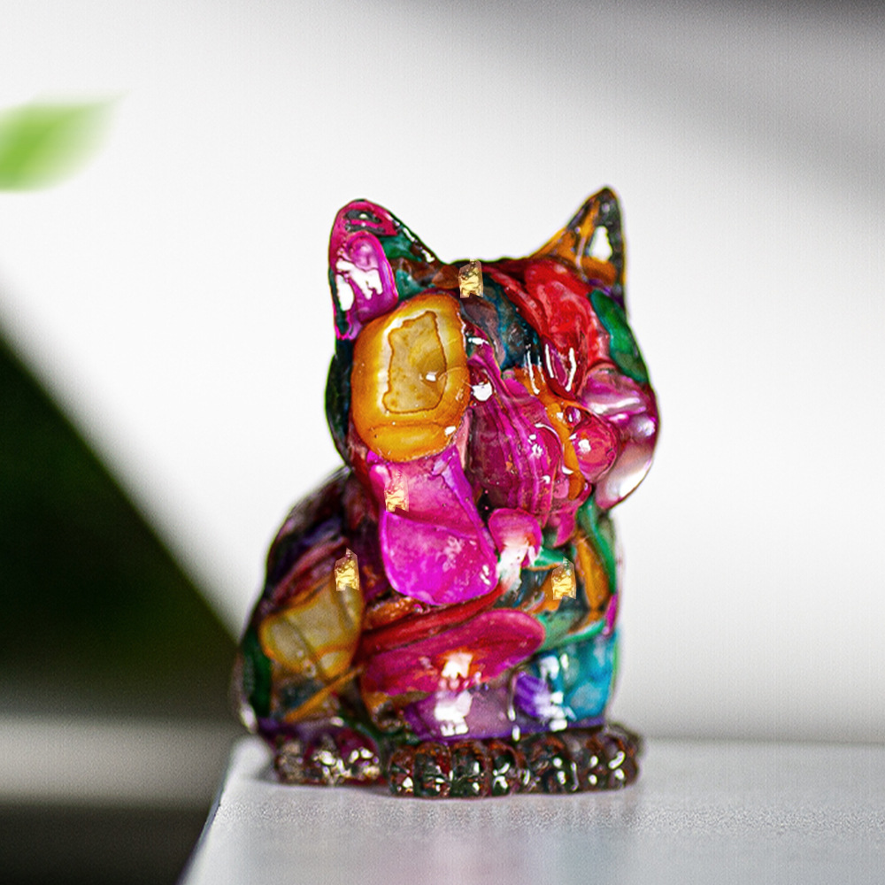 "수지로 채워진 천연 크리스탈 고양이 장식품" 홈 마스코트 장식 크리스탈 수제 귀여운 고양이 조각품