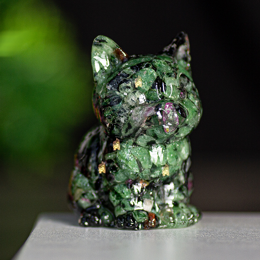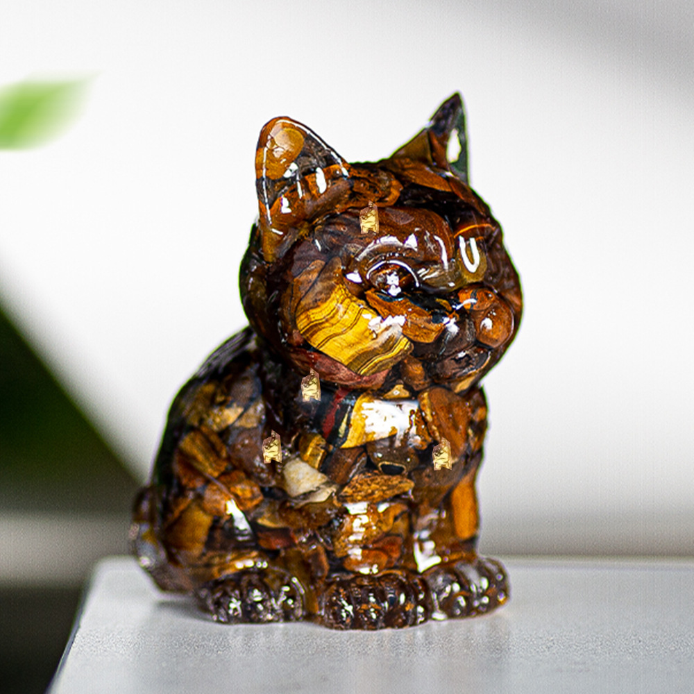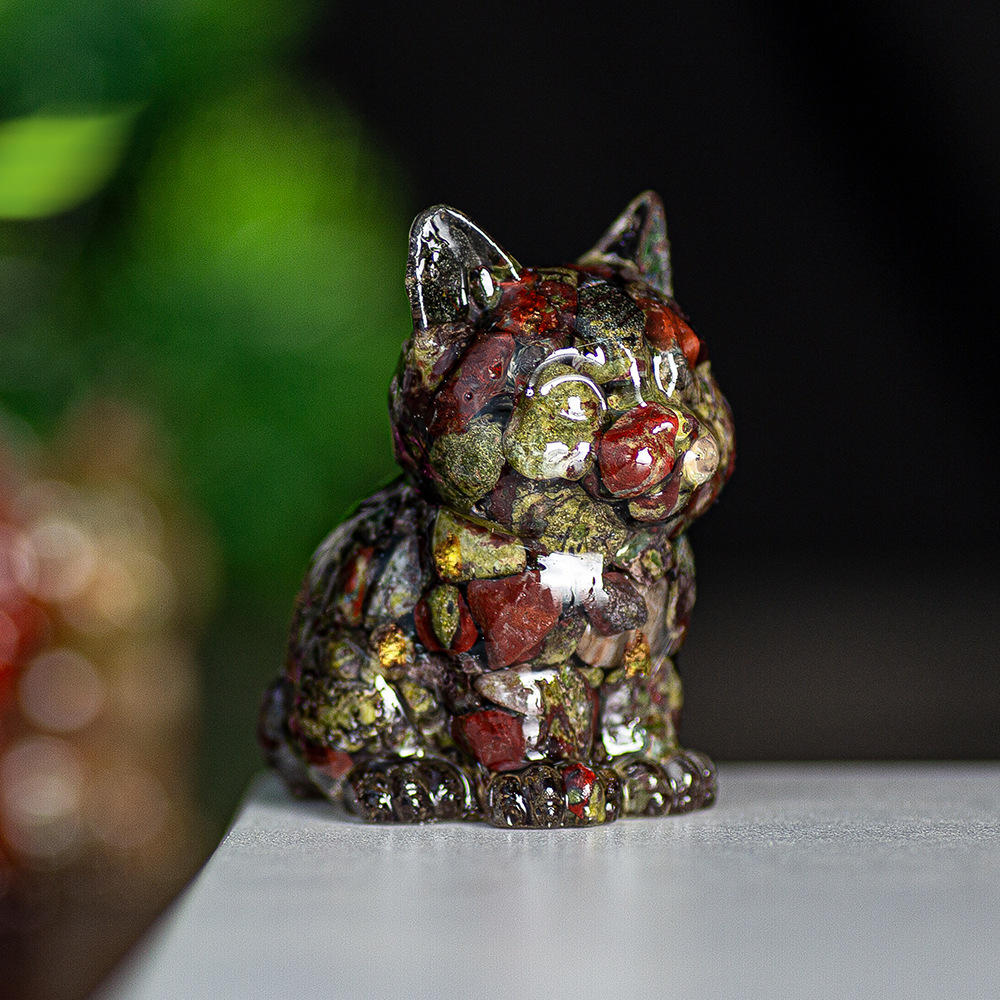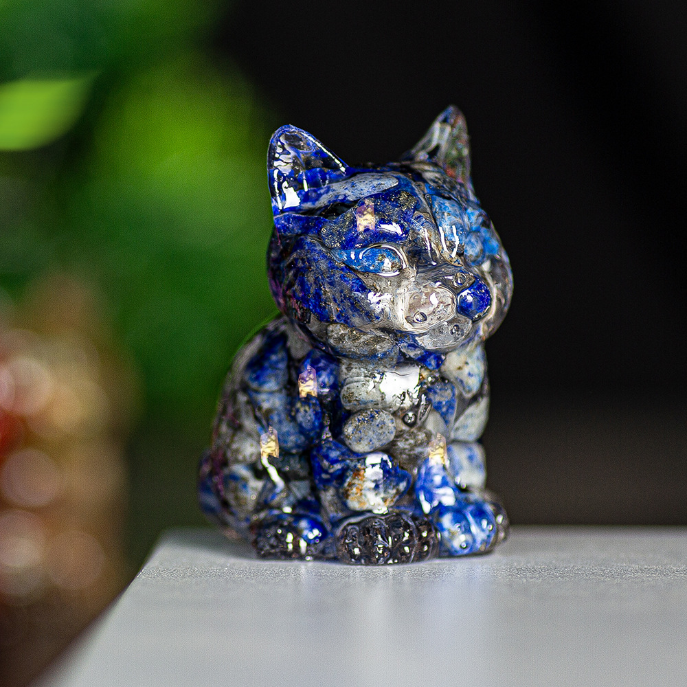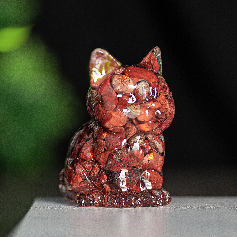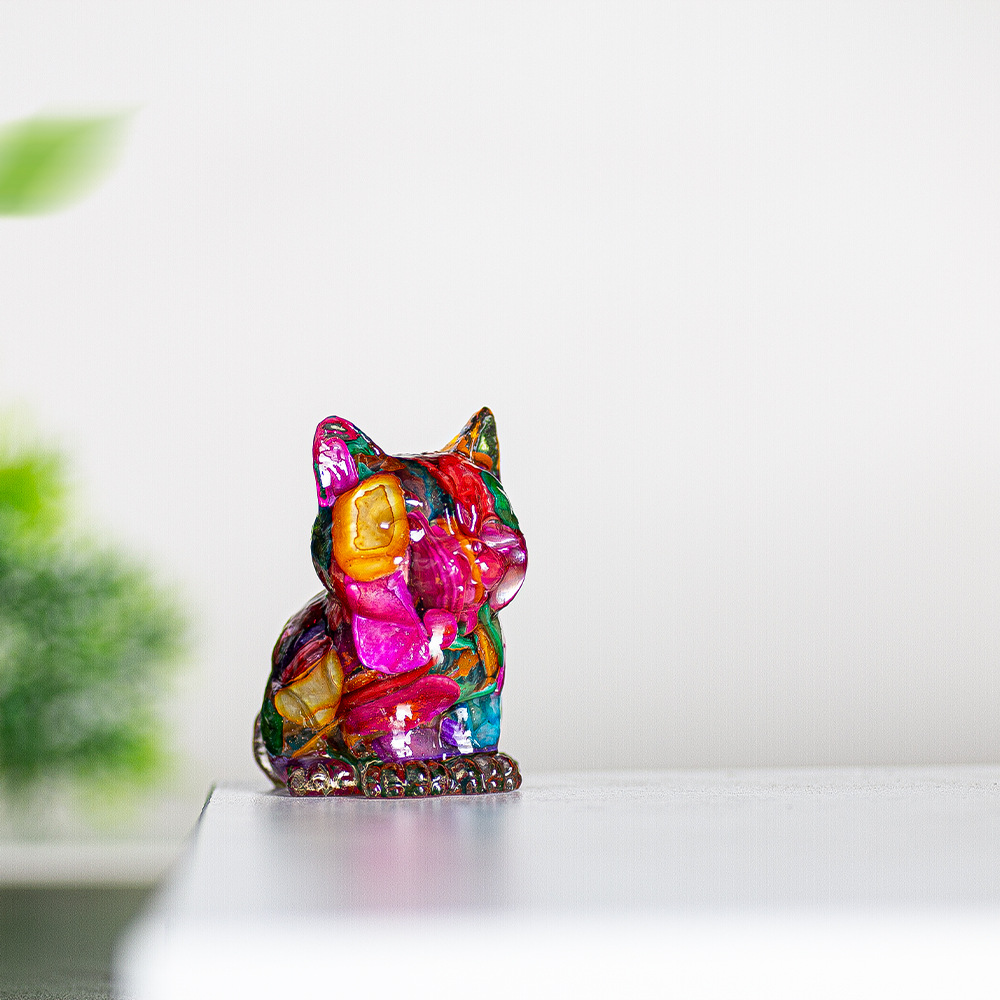 "수지로 채워진 천연 크리스탈 고양이 장식품" 홈 마스코트 장식 크리스탈 수제 귀여운 고양이 조각품