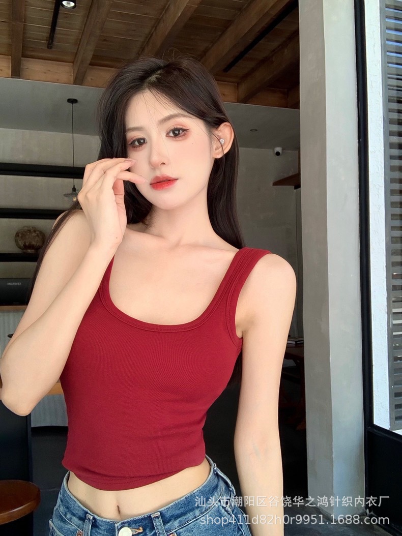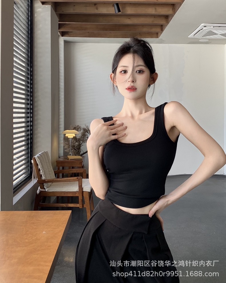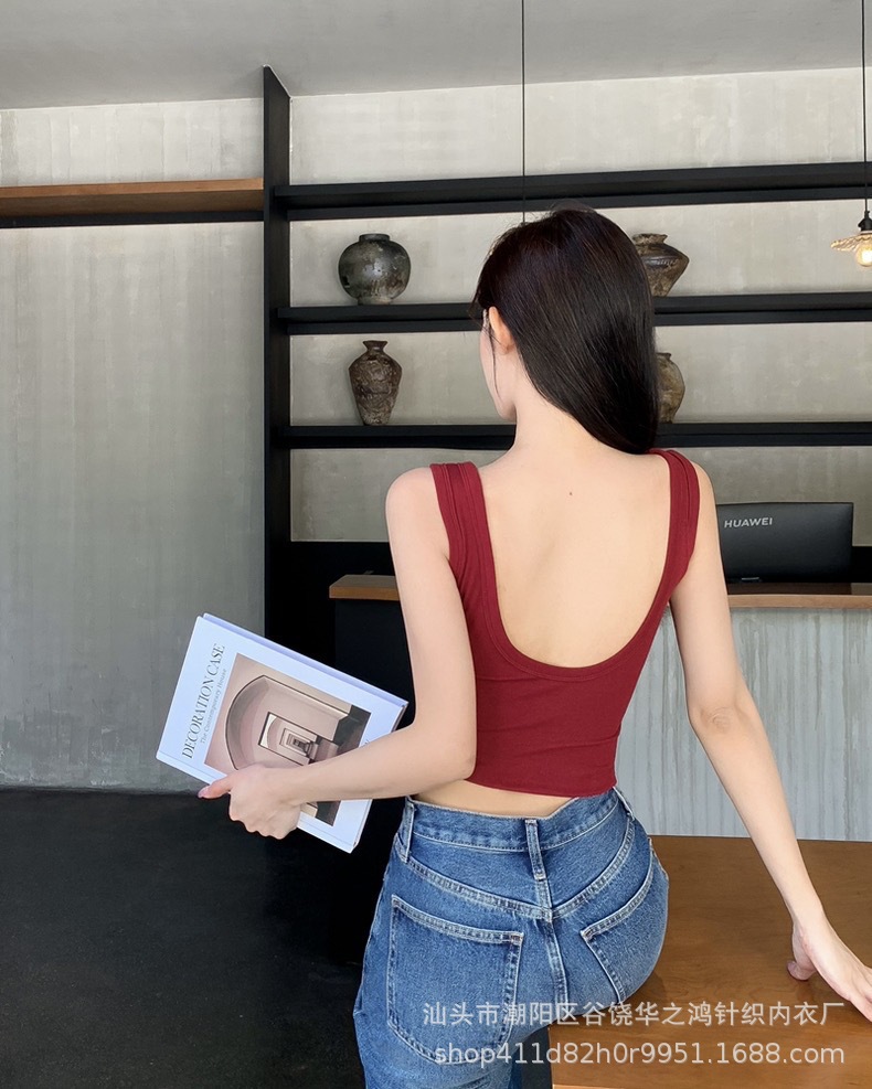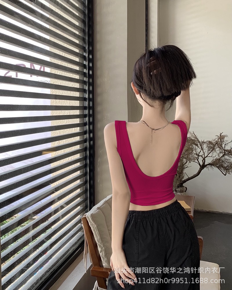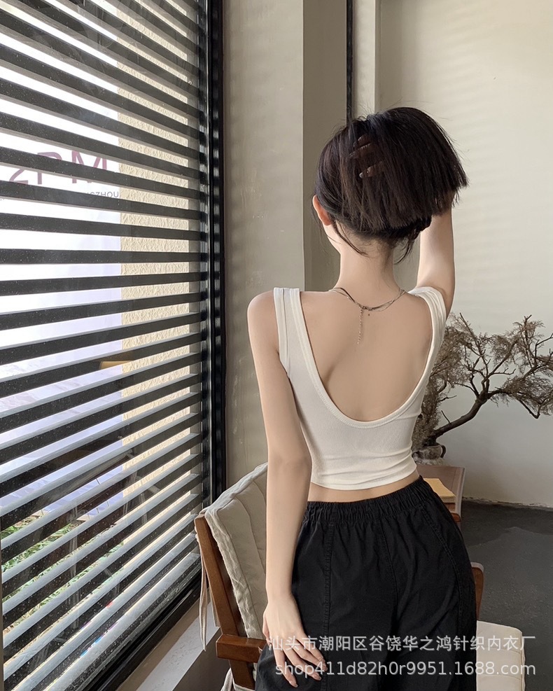 여름 신제품 Pure Desire Hot Girl 여성용 캐미솔, 가슴 패드, 큰 U자형 아름다운 등, 슬림한 백리스 탑스토어 가기