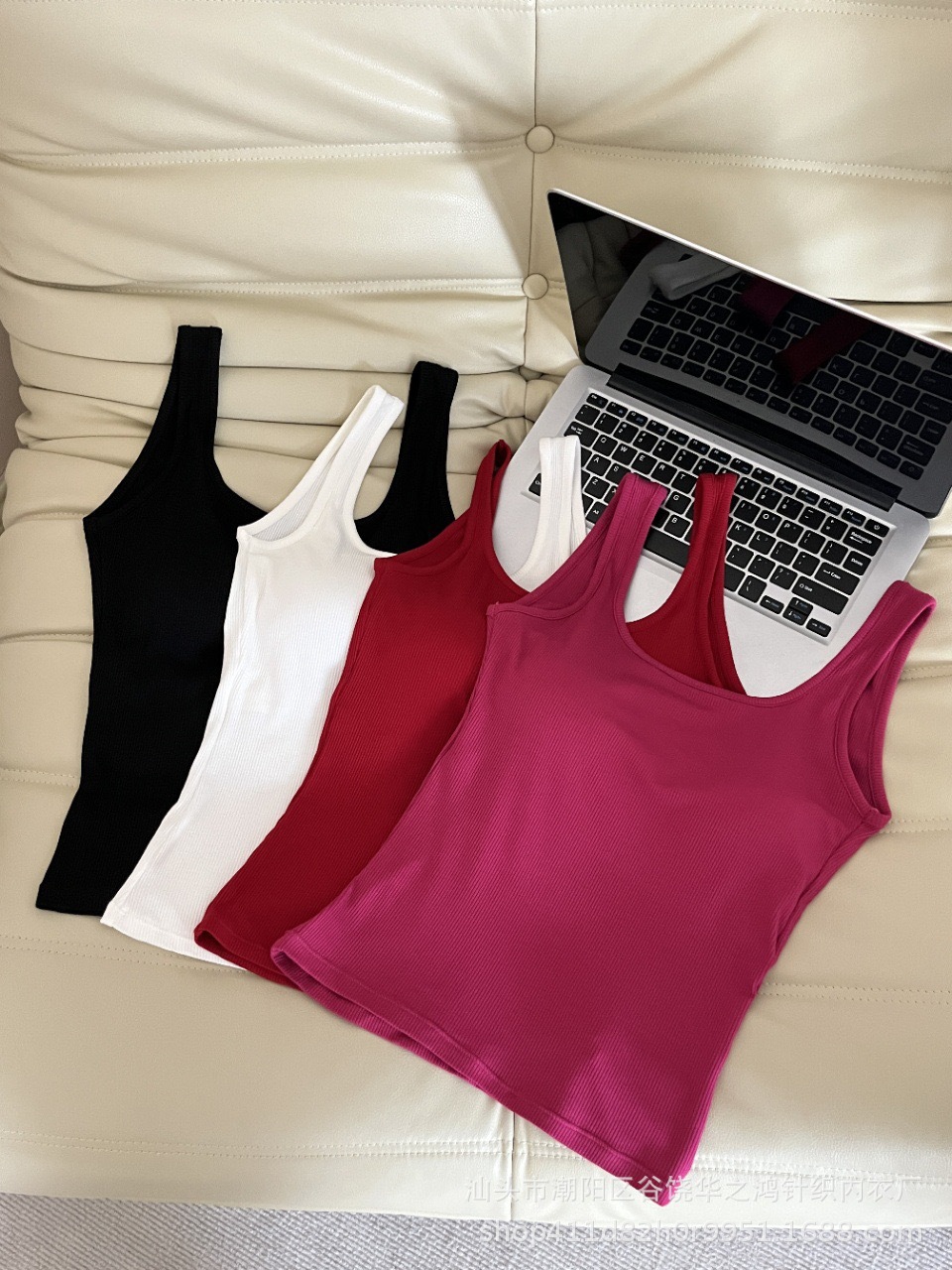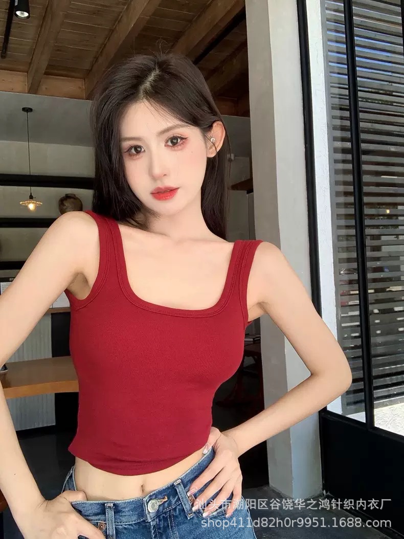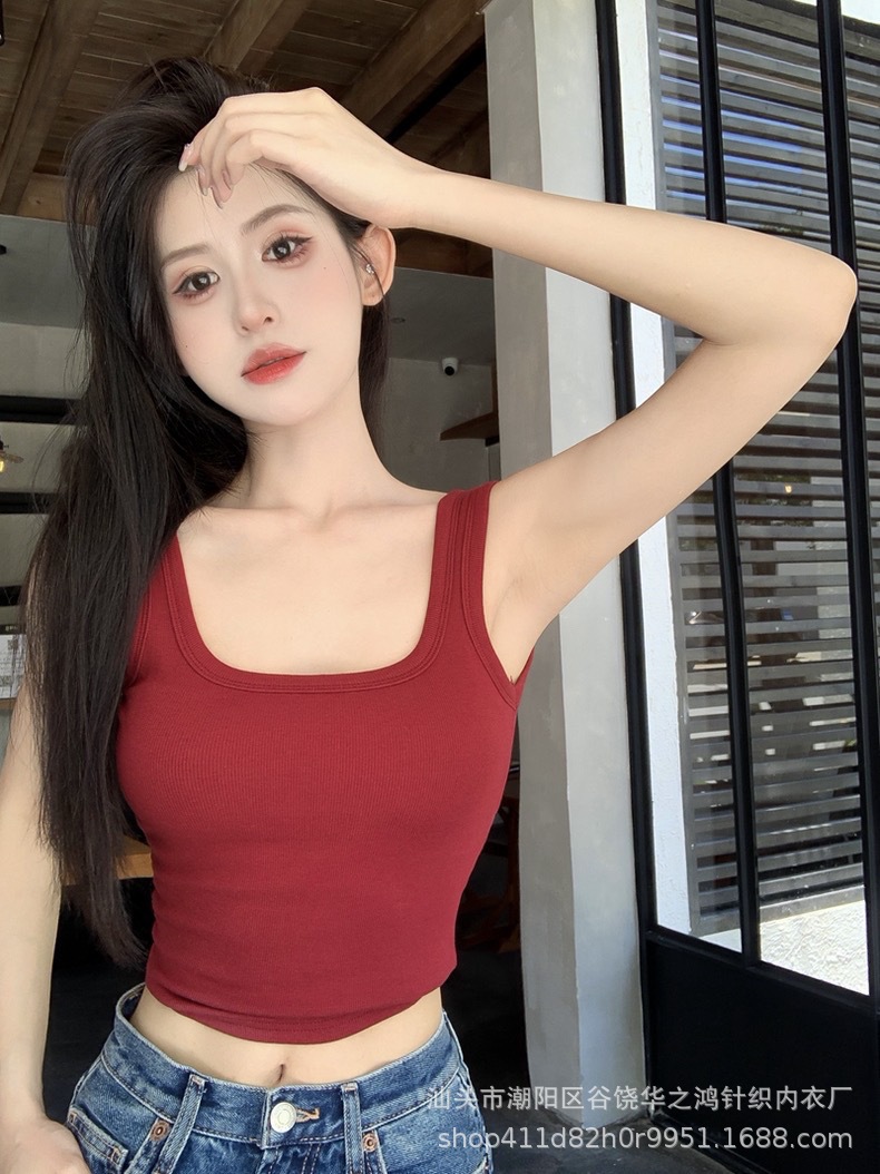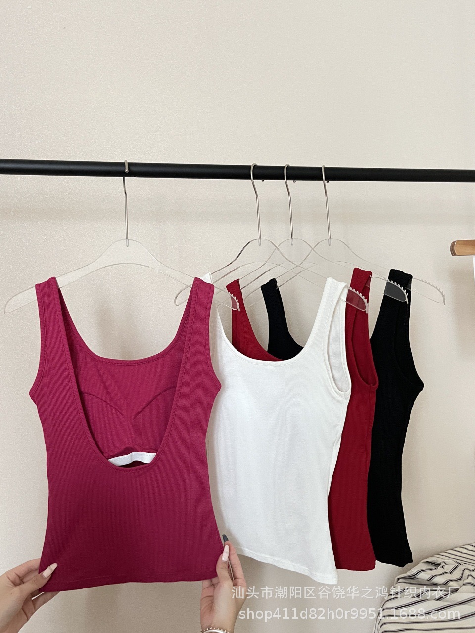 여름 신제품 Pure Desire Hot Girl 여성용 캐미솔, 가슴 패드, 큰 U자형 아름다운 등, 슬림한 백리스 탑