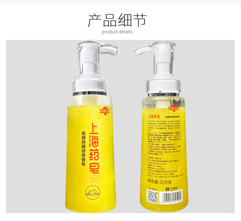 상하이 약용 비누 샤워 젤 500g 유황 진드기 제거, 살균, 가려움증 완화, 순한 세안 및 목욕 식물 샤워 젤 정품스토어 가기