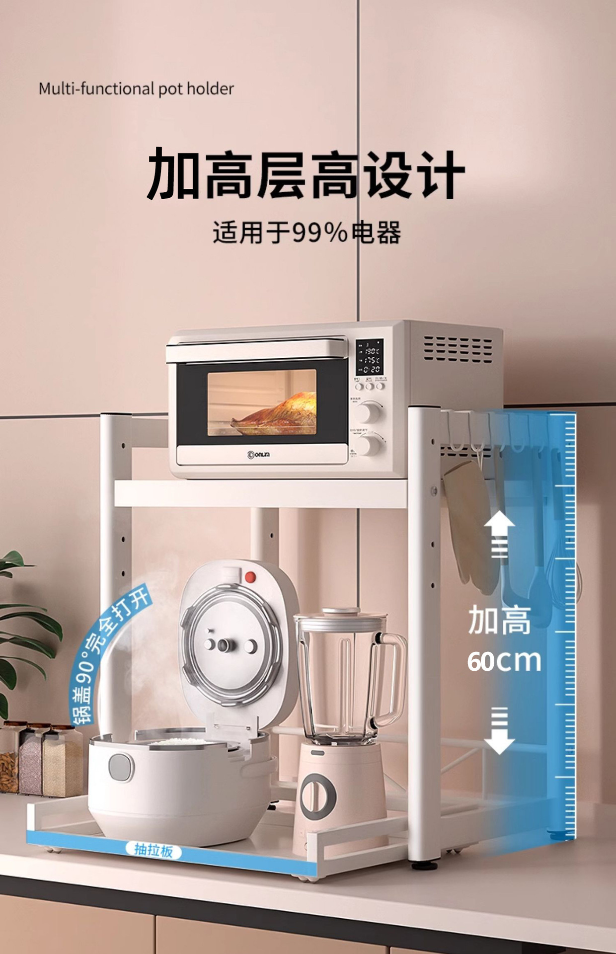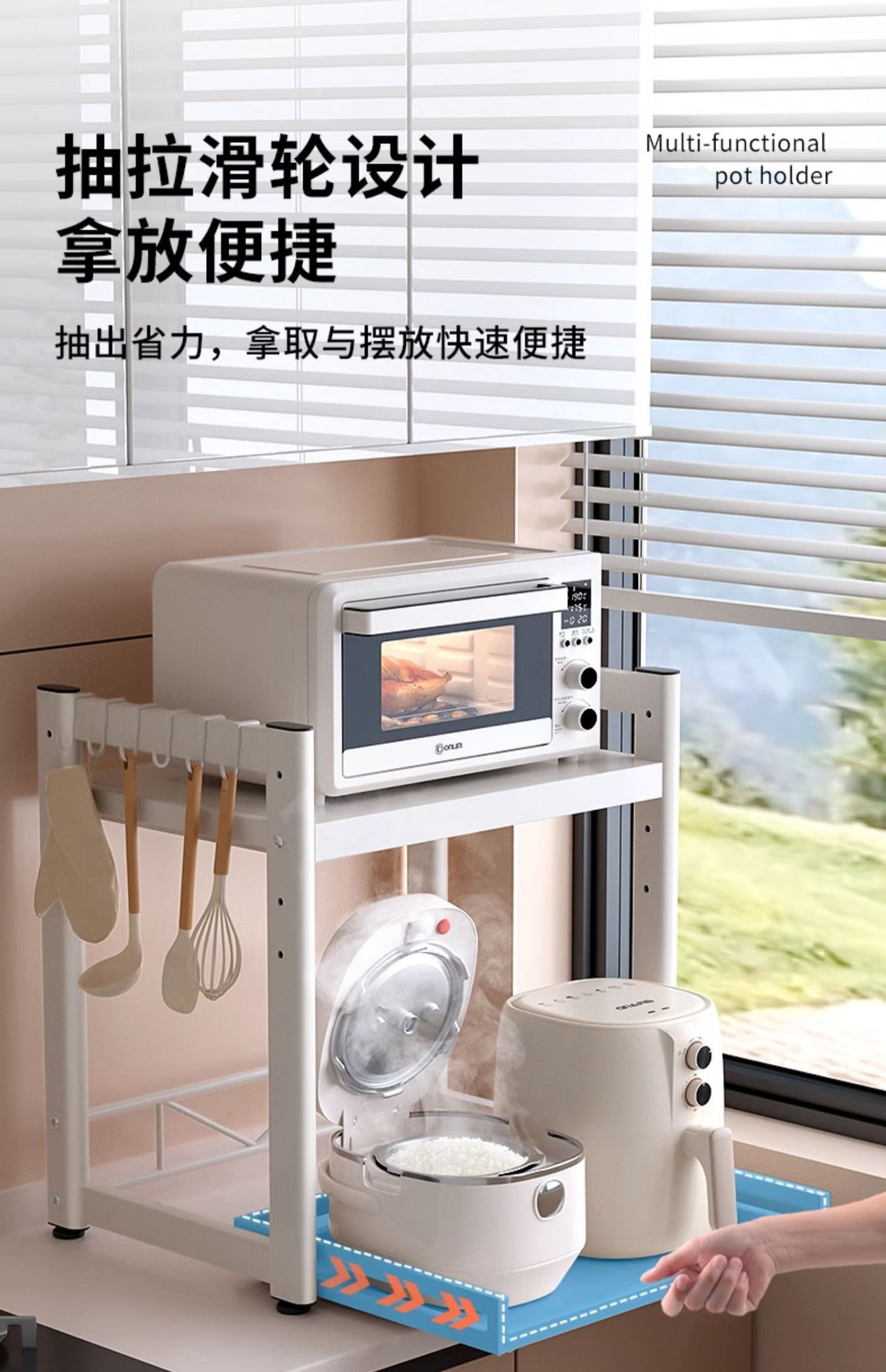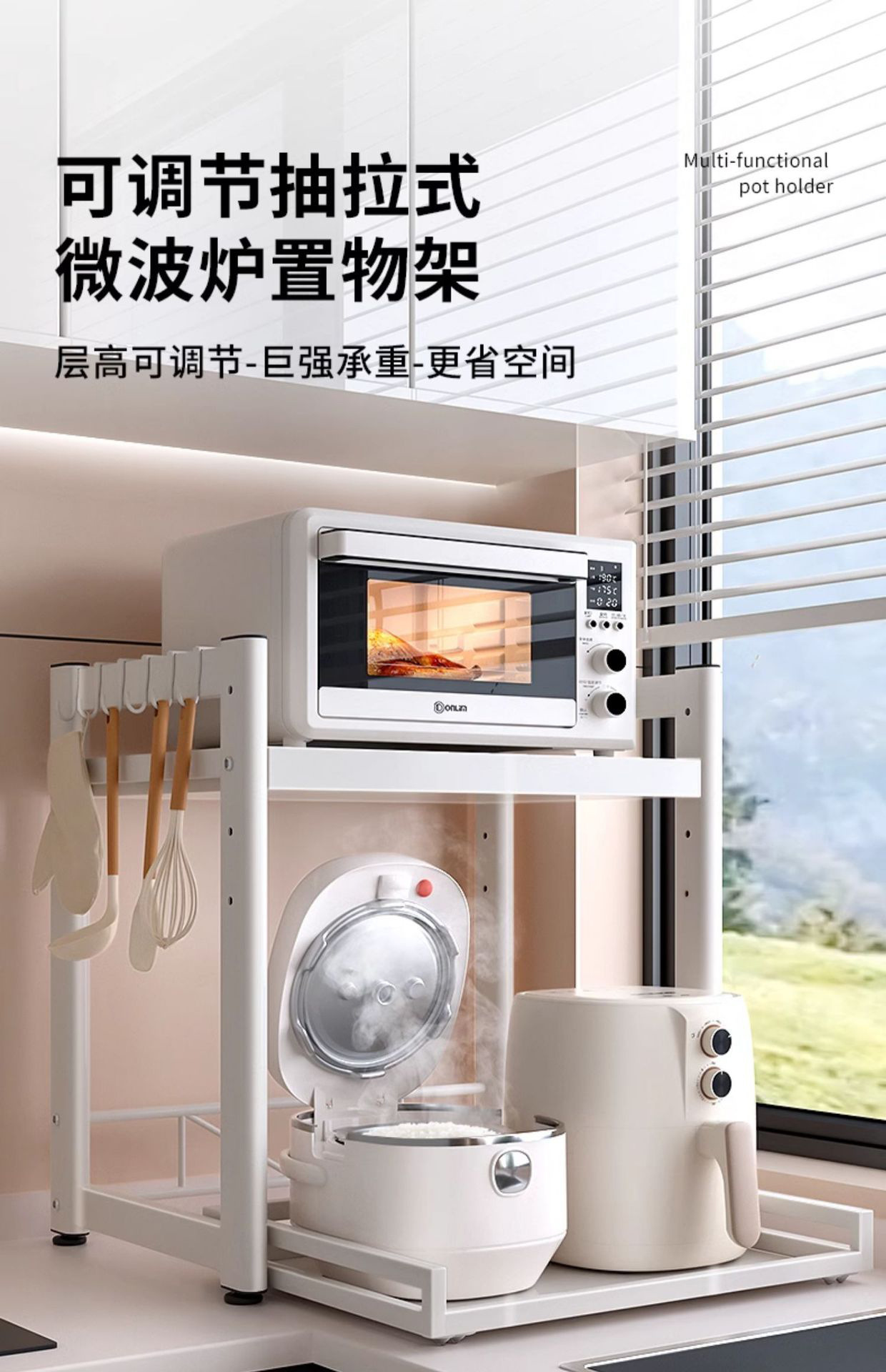 풀아웃 전자레인지 수납선반 주방 밥솥 선반 오븐 에어프라이어 주방 조리대 가전제품 수납