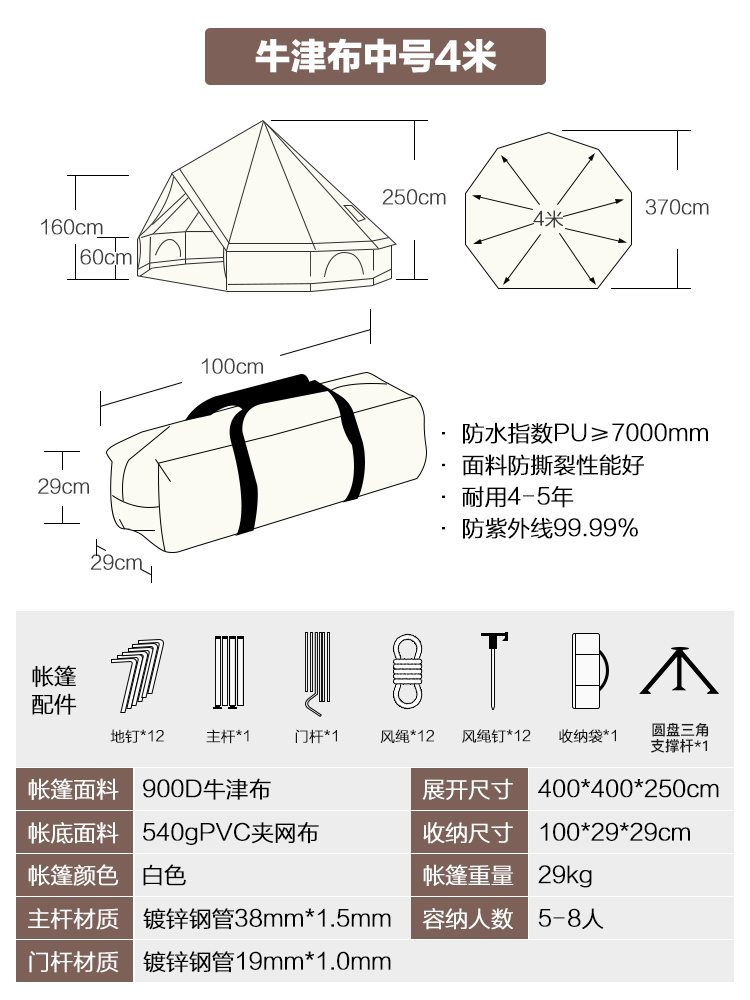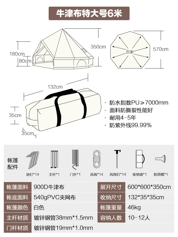 • 6M 흰색 옥스포드 원단(중간 폴 포함)