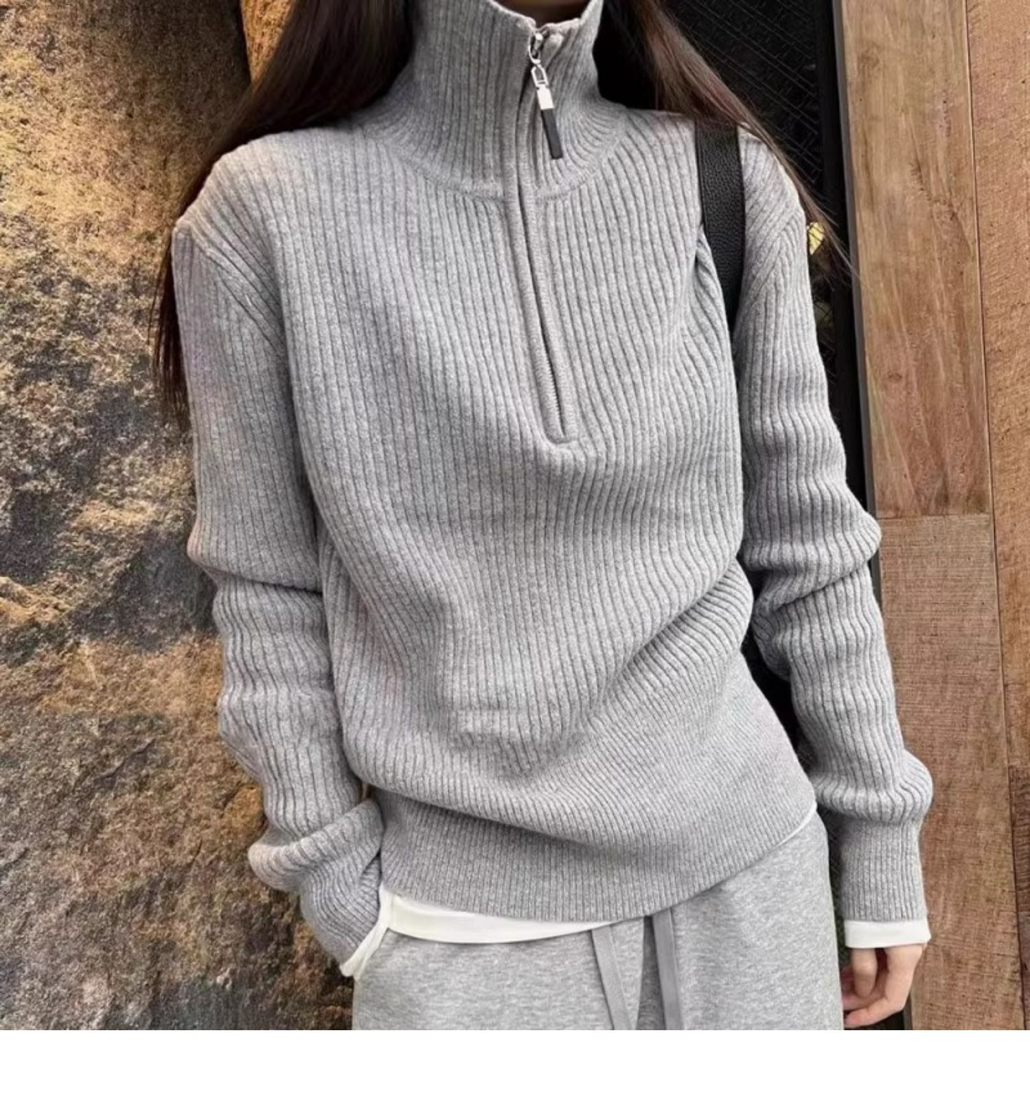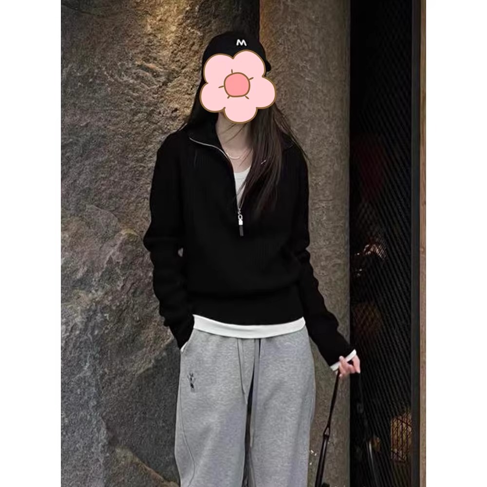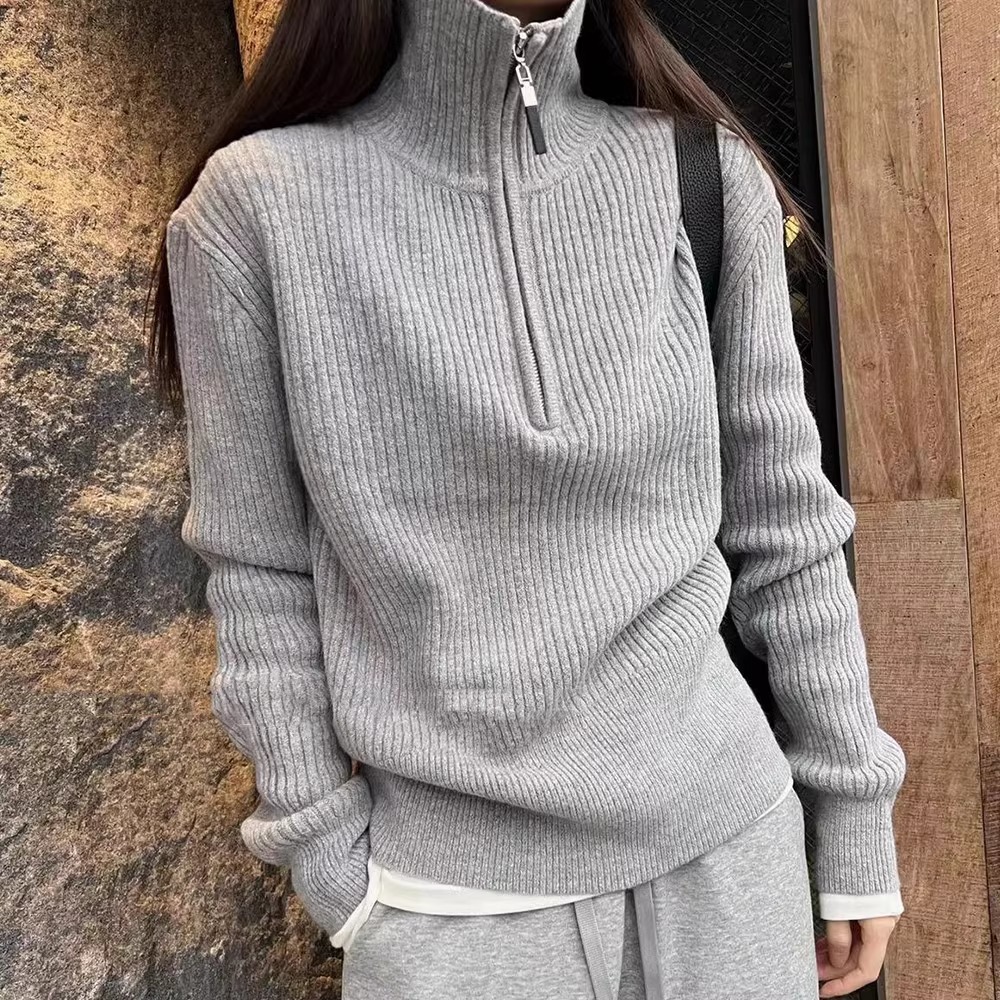 한국식 하프 지퍼 터틀넥 스웨터 가을 겨울 새로운 디자인 외국 스타일 연령 감소 회색 이너 스웨터 탑 여성용스토어 가기