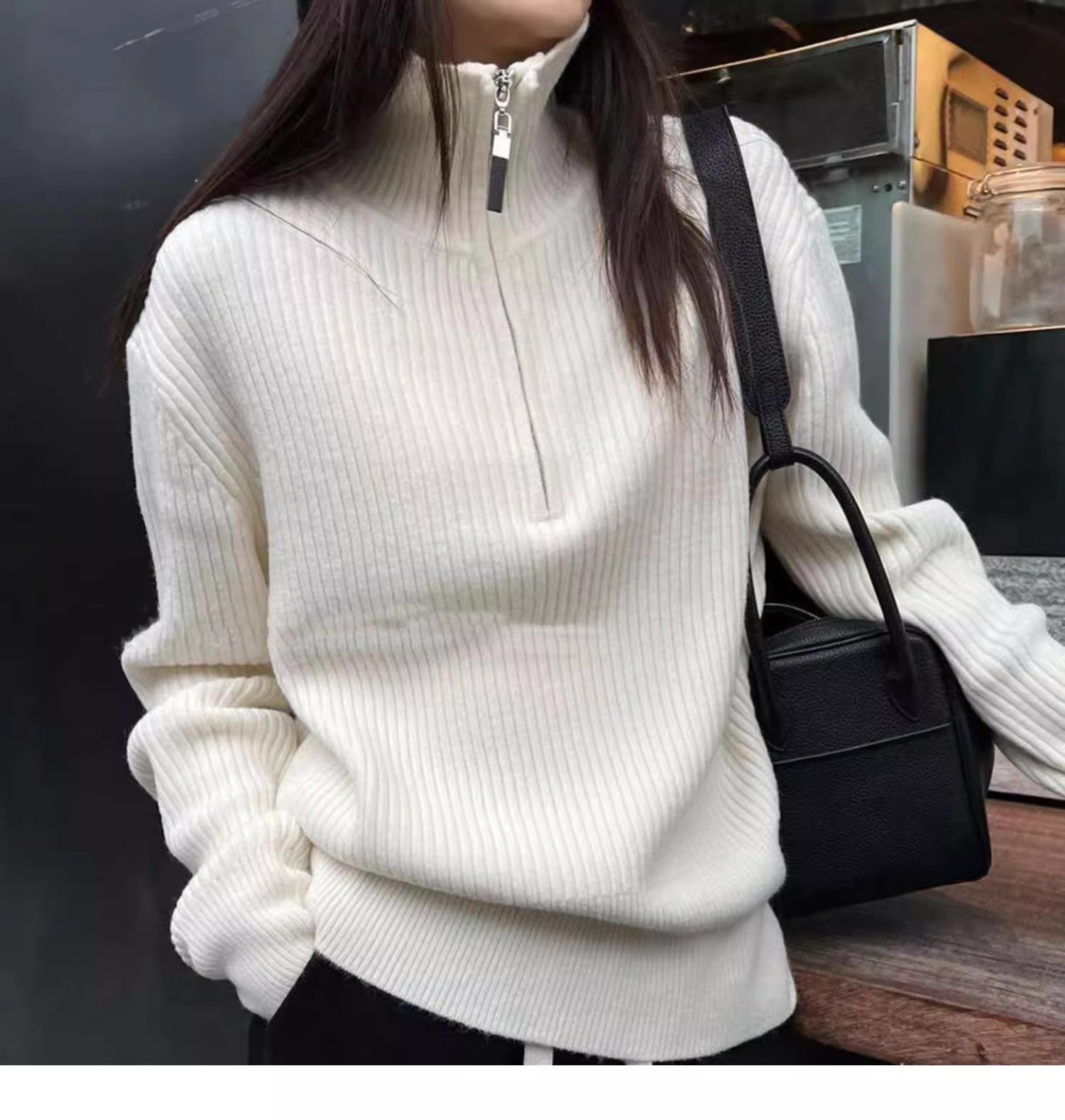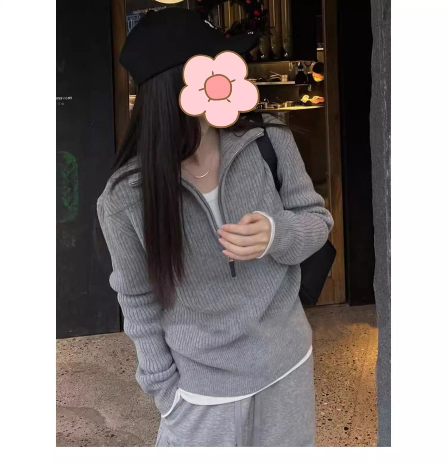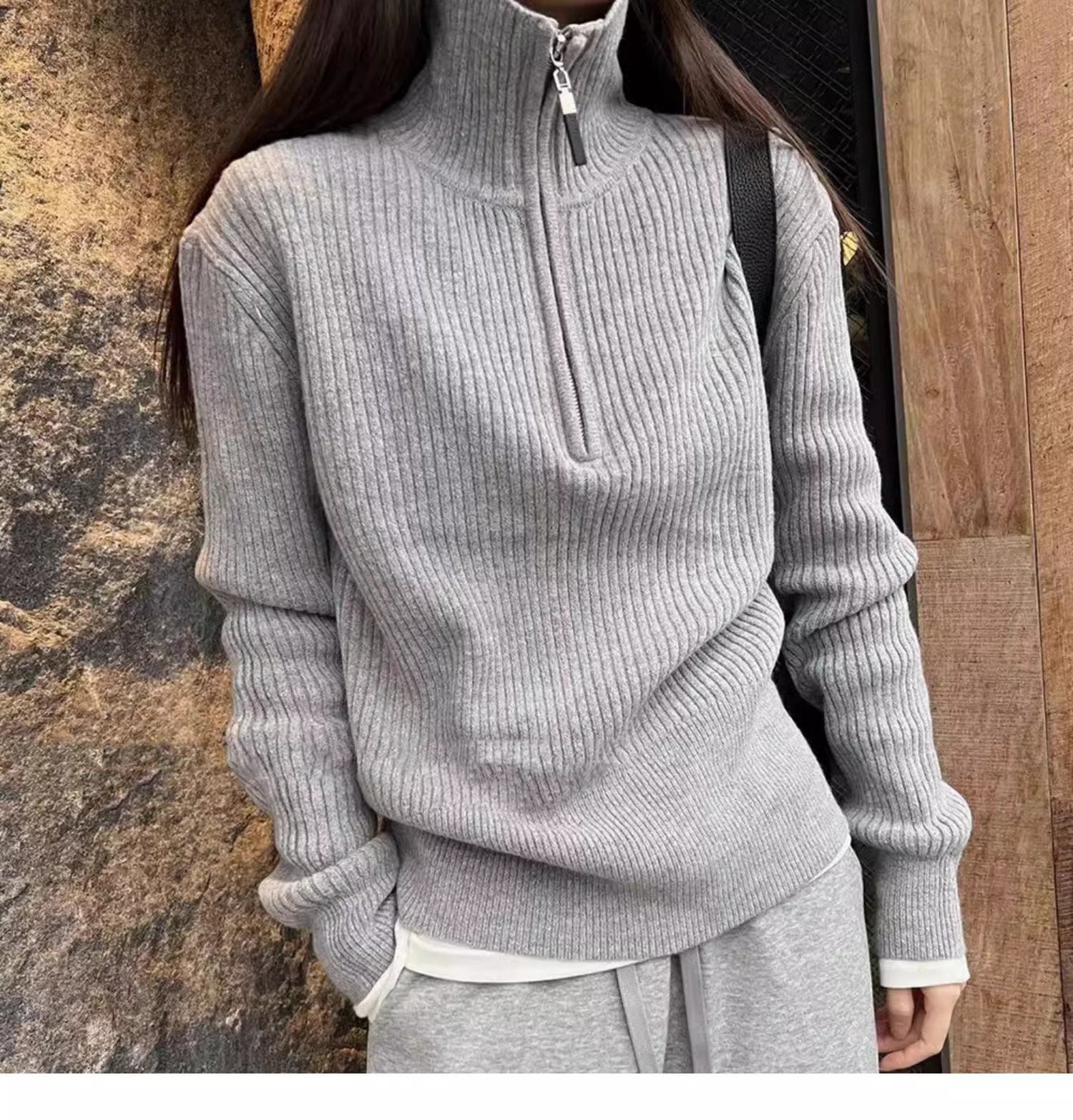 한국식 하프 지퍼 터틀넥 스웨터 가을 겨울 새로운 디자인 외국 스타일 연령 감소 회색 이너 스웨터 탑 여성용스토어 가기