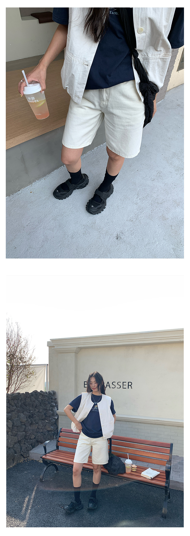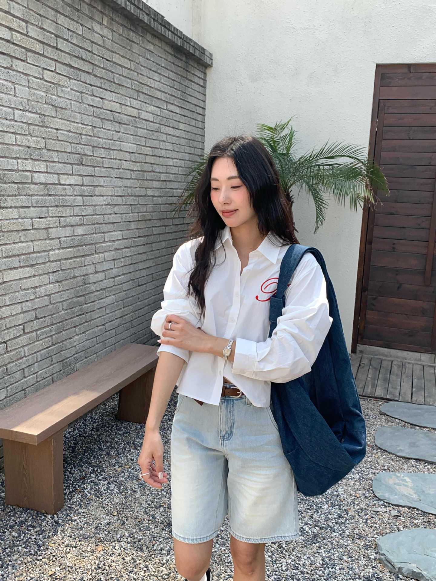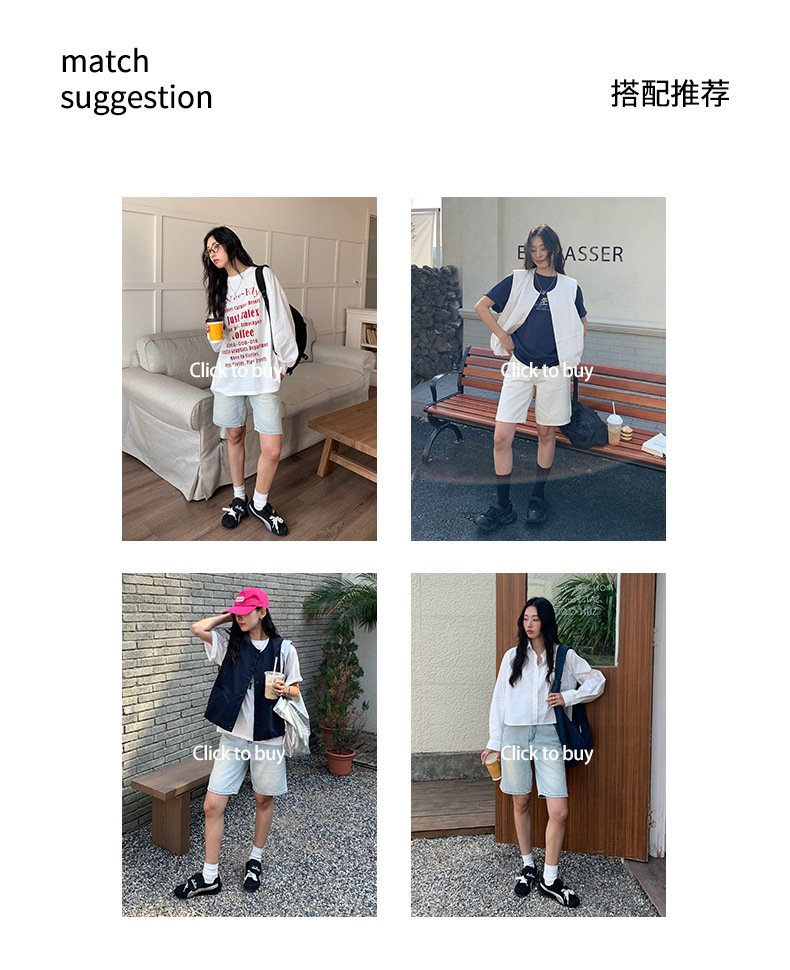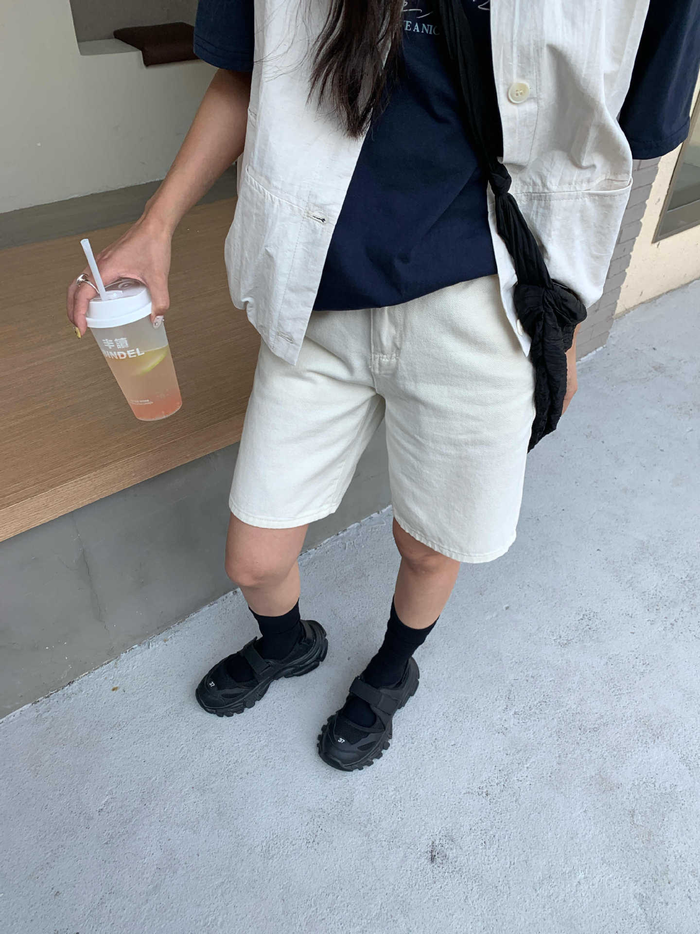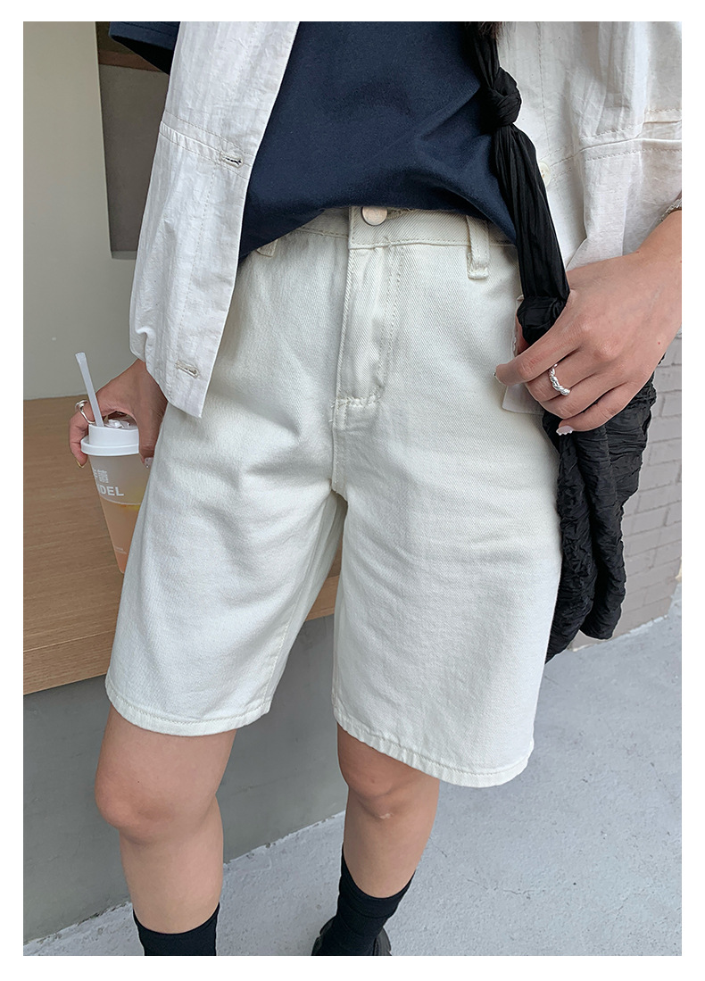 Huang Zheng 여성용 심플 메탈 버클 장식 스트레이트 루즈 데님 반바지 2025 봄 스타일 편안하고 다재다능한 HB510209스토어 가기