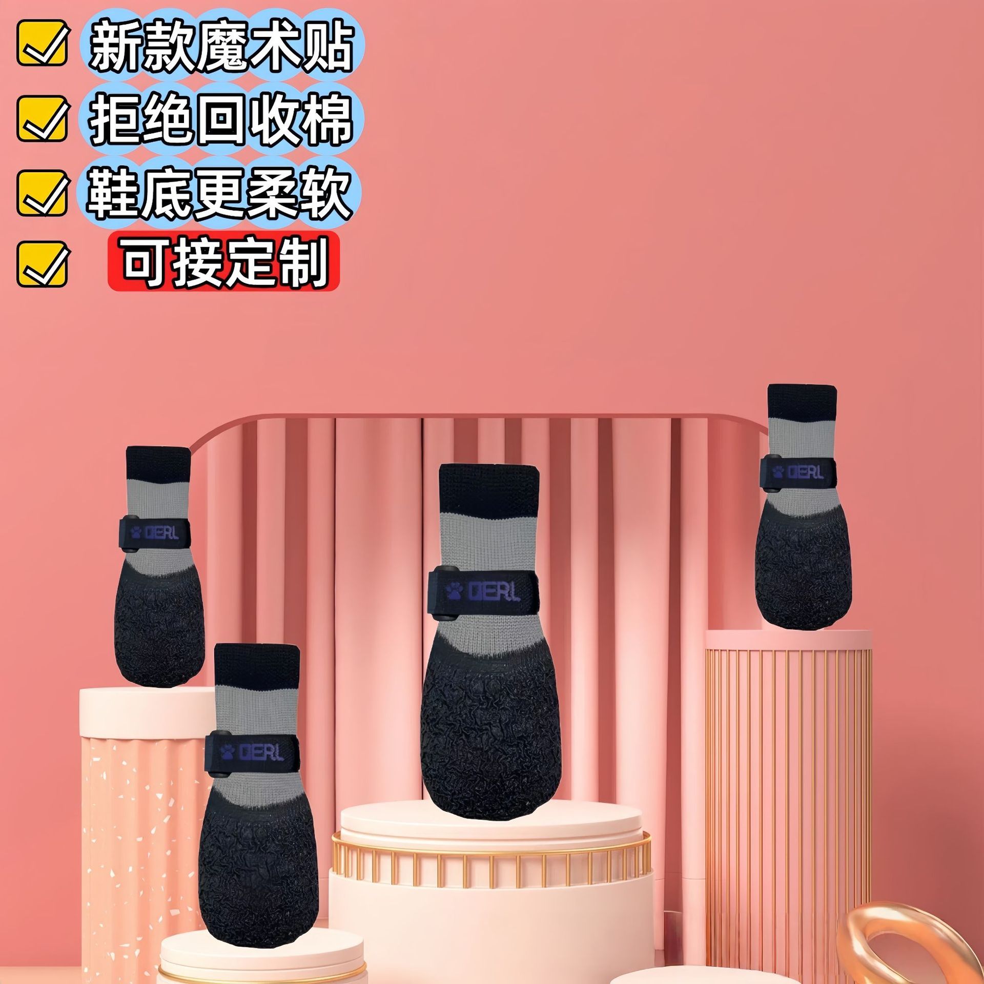 국경을 넘는 맞춤형 개 양말, 강아지 신발, 주름진 라텍스 색상, 미끄럼 방지 및 내마모성 애완 동물 양말 선택 가능