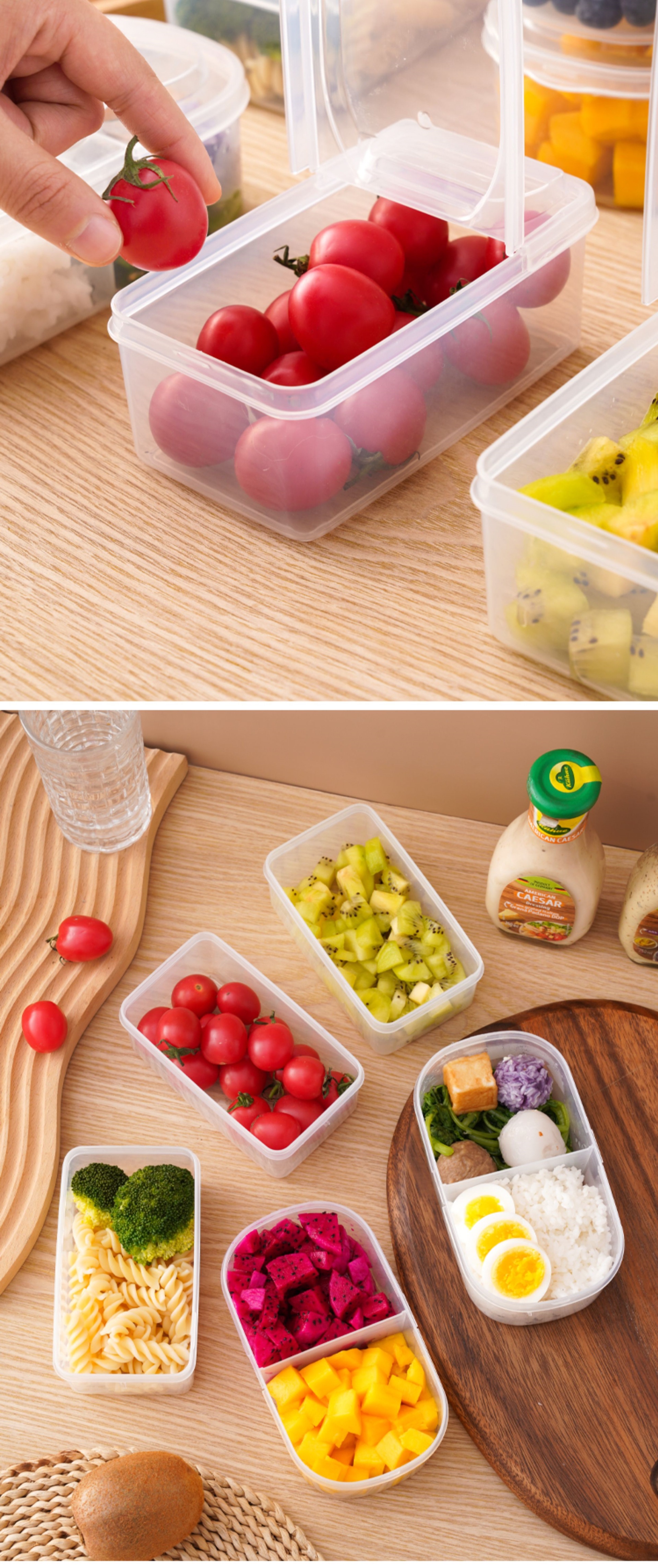 과일 도시락, 초등학생이 가지고 다닐 수 있는 휴대용 피크닉 도시락, 투명 뚜껑이 있는 특수 피크닉 도시락스토어 가기