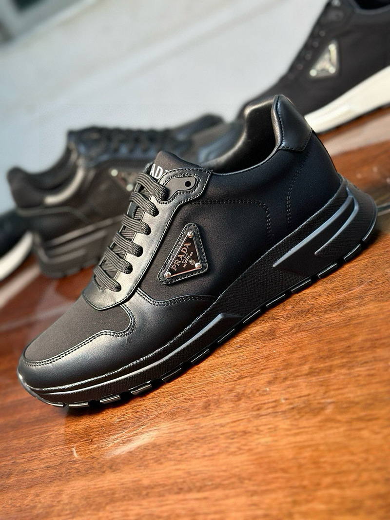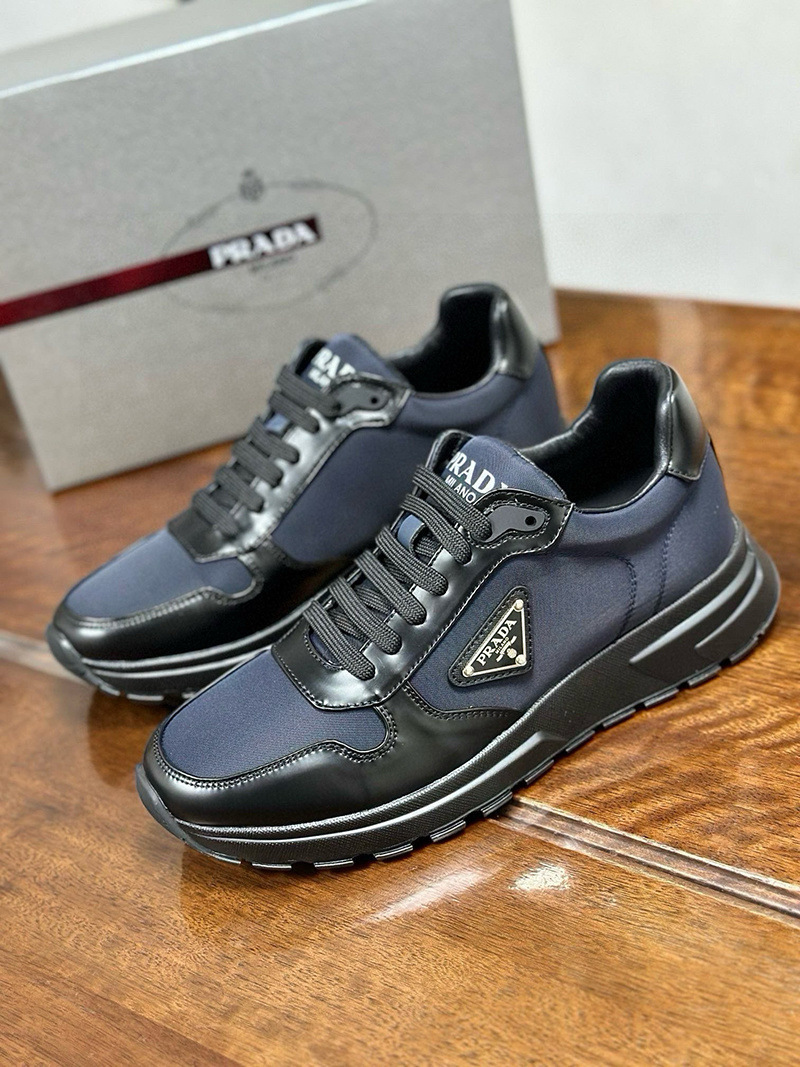 유럽 고급 남성 운동화 삼각형 로고 캐주얼 패션 운동화 가죽 접합 메쉬 두꺼운 밑창 운동화스토어 가기