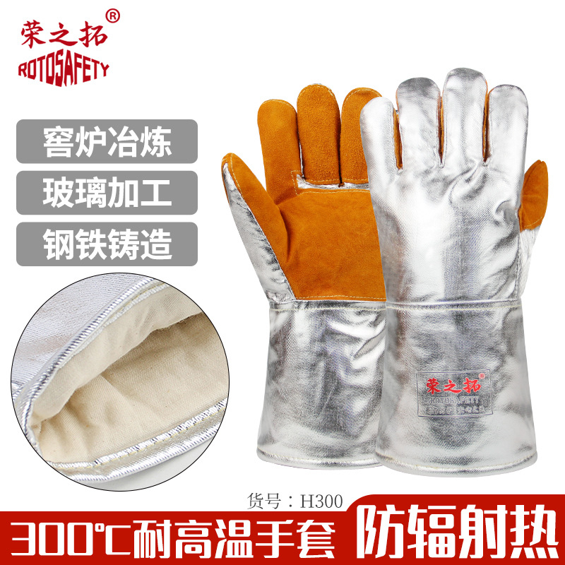 • 300도 손바닥 소가죽 강화 알루미늄 호일 고온 방지 장갑