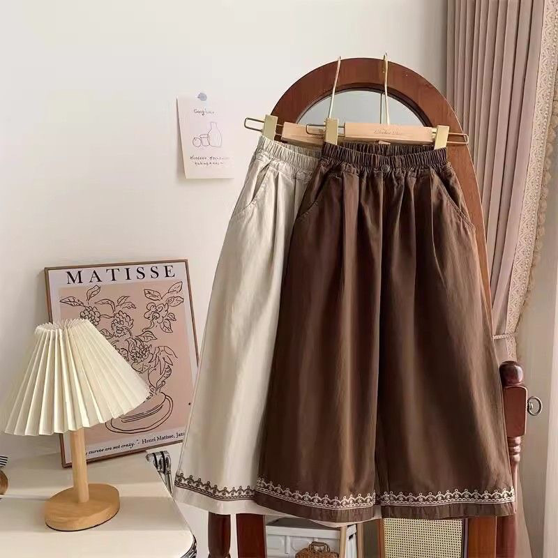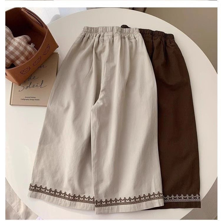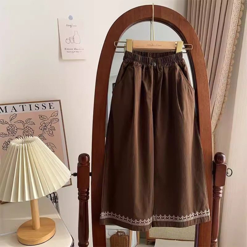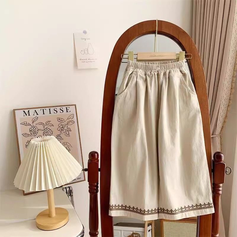 레트로 포레스트 스타일 와이드 팬츠, 아동용 스타일리시한 면바지, 새로운 스타일의 여아 자수 프렌치 팬츠, 활용도 높은 봄 여름 의류스토어 가기