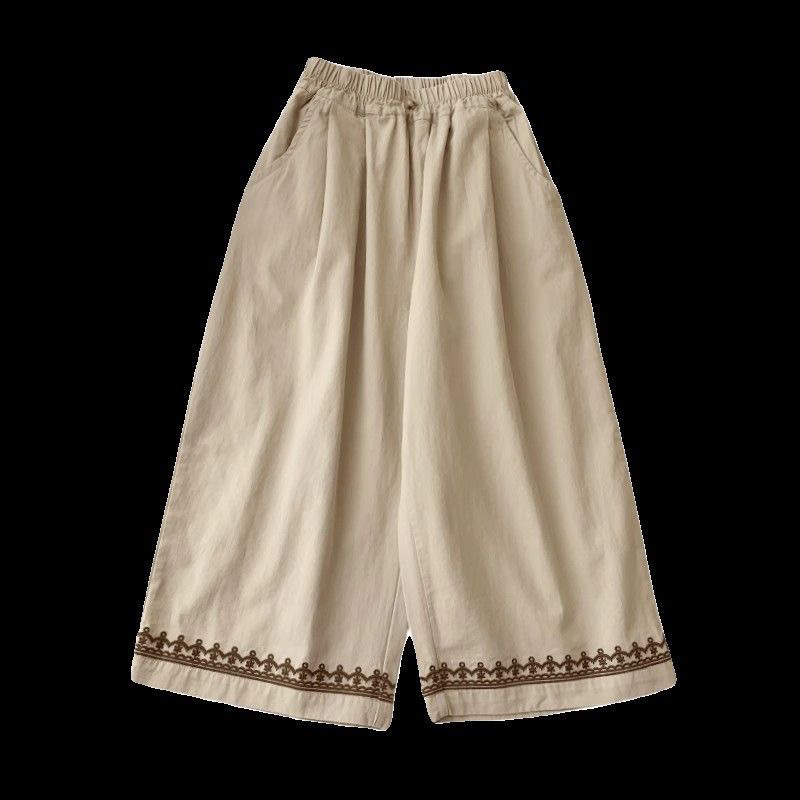 레트로 포레스트 스타일 와이드 팬츠, 아동용 스타일리시한 면바지, 새로운 스타일의 여아 자수 프렌치 팬츠, 활용도 높은 봄 여름 의류