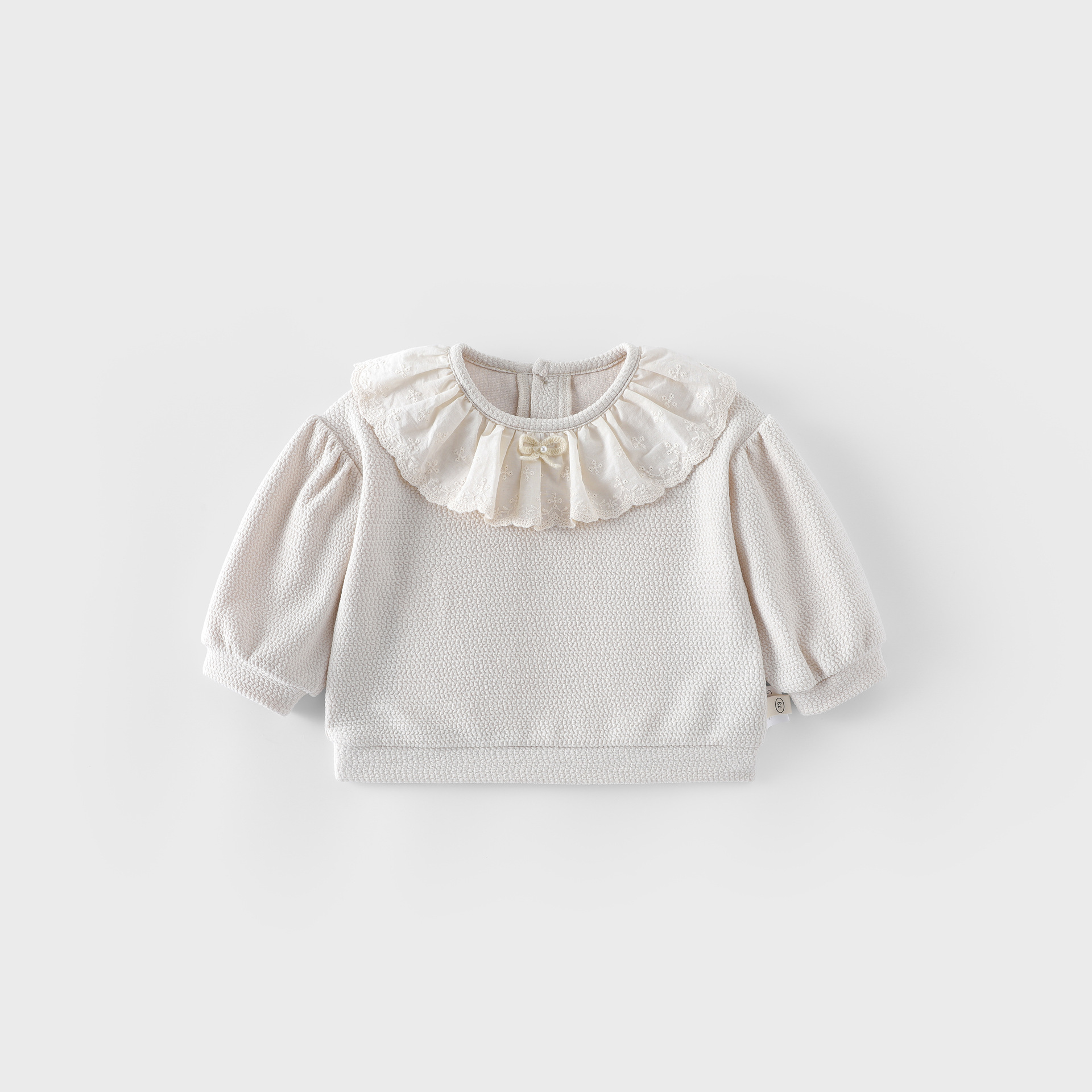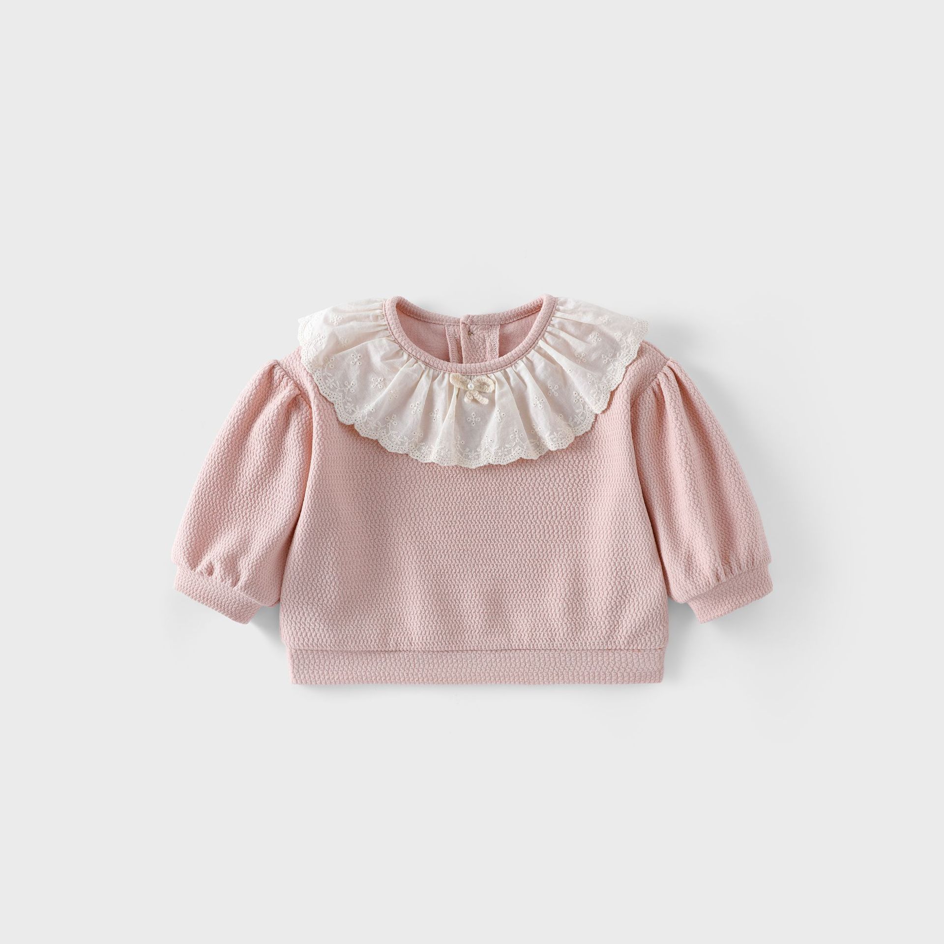 여아 한국 가을 의류 2025 새로운 가을 베이비 스타일 레이스 칼라 스웨트 셔츠 아동용 보우 웨빙 스웨트 팬츠