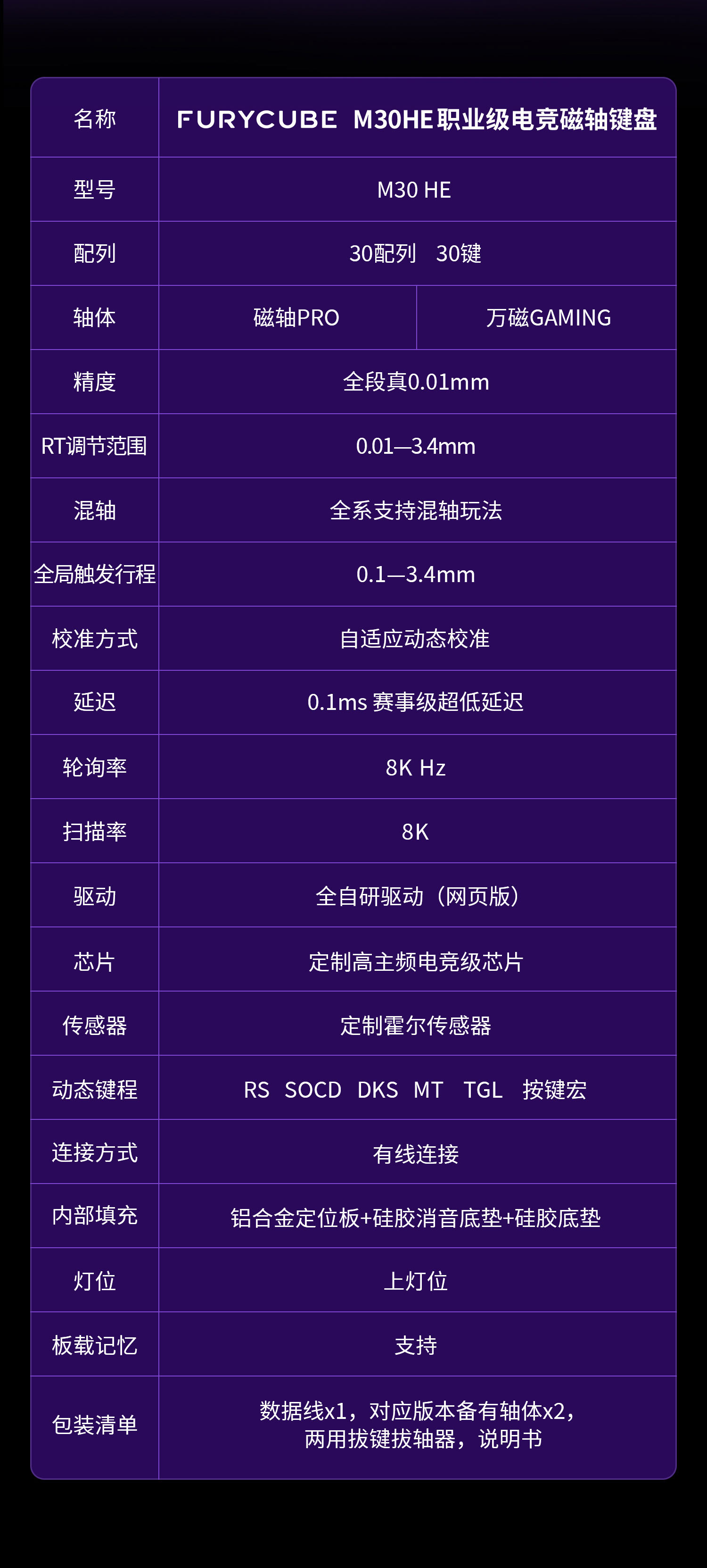 FURYCUBE M30HE e-스포츠 기계식 키보드 8K 자기 축 게임 타일 제조기 무려 계약 빠른 트리거스토어 가기