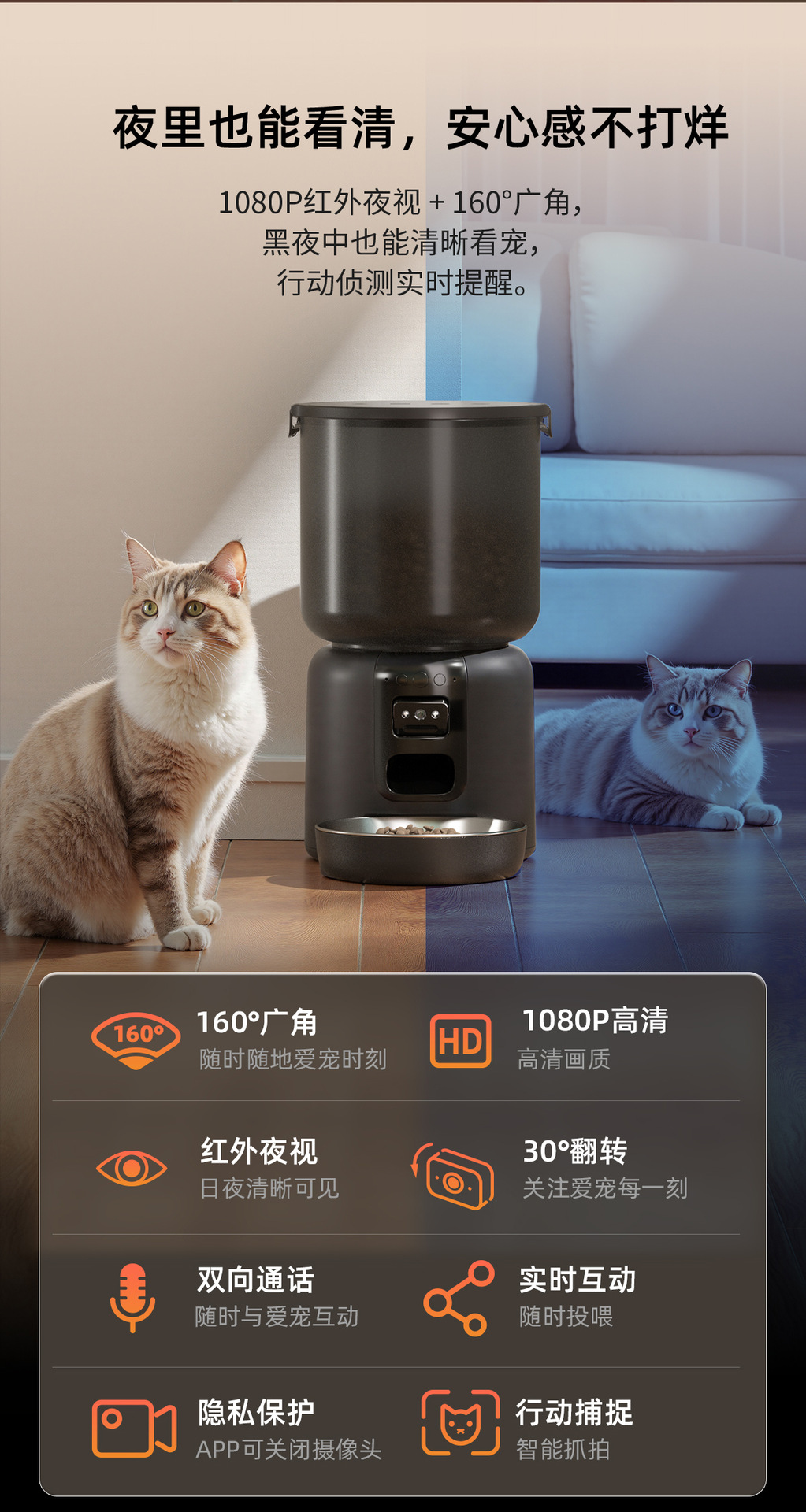 Paiwang 국경 간 새로운 애완 동물 피더는 녹음 및 재생 자동 먹이 공급 무선 전원 공급 WIFI 및 APP 연결을 갖추고 있습니다.스토어 가기