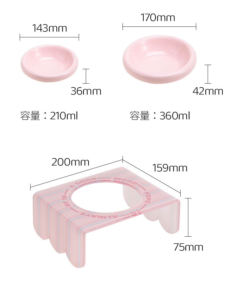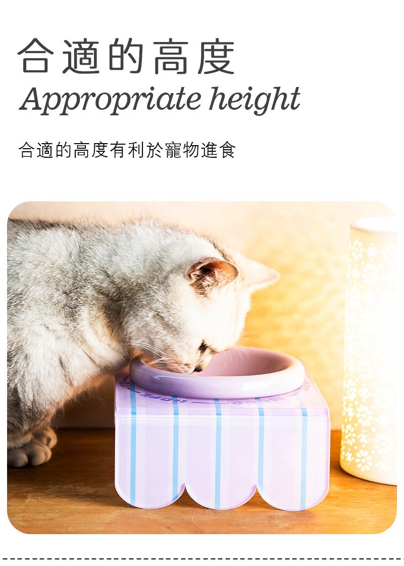 세라믹 애완동물 그릇, 고양이 그릇, 개밥 그릇, 고양이 밥 그릇, 대구경 PE 원형 그릇, 고양이 밥 그릇 뒤집힘 방지 높이 조절
