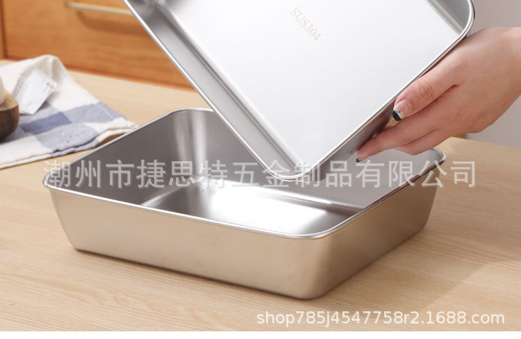 뚜껑이 있는 사각 접시 스테인레스 스틸 수건 트레이 304 스테인레스 스틸 일본식 평면 트레이 티라미수 케이크 찜 트레이
