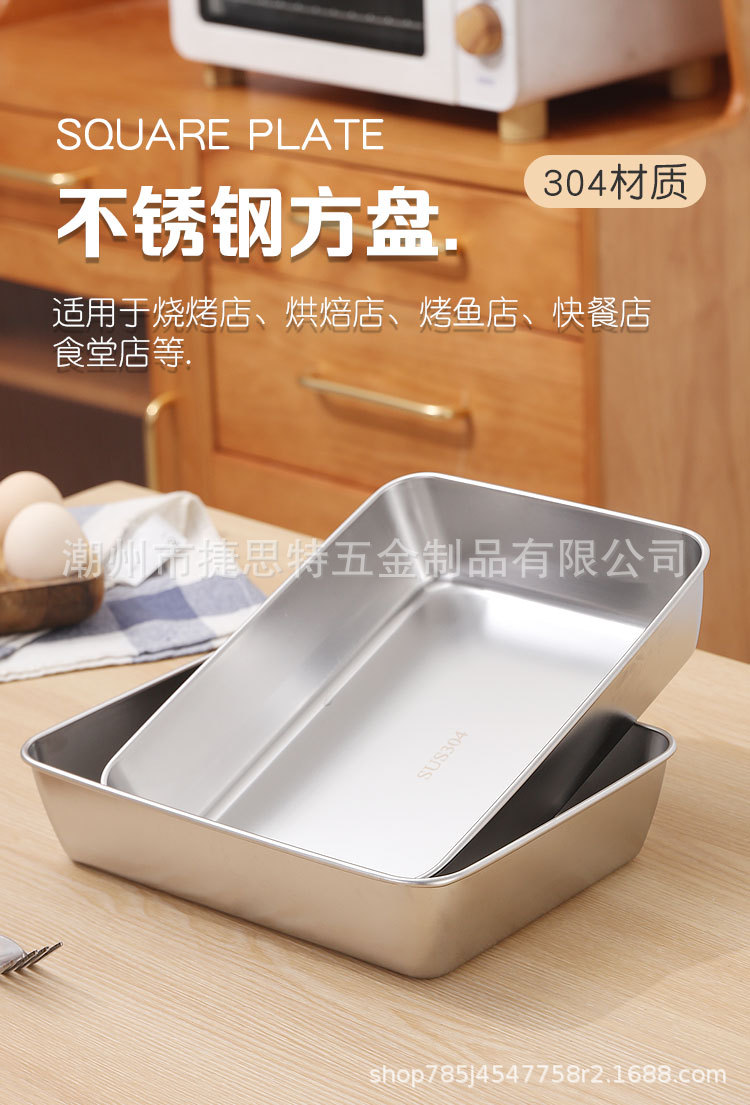뚜껑이 있는 사각 접시 스테인레스 스틸 수건 트레이 304 스테인레스 스틸 일본식 평면 트레이 티라미수 케이크 찜 트레이스토어 가기