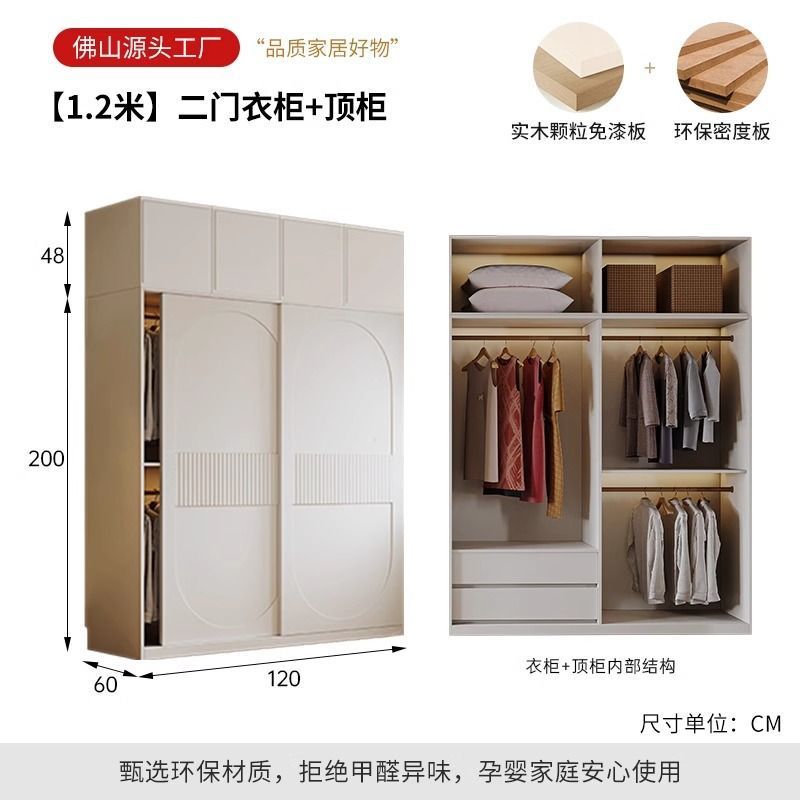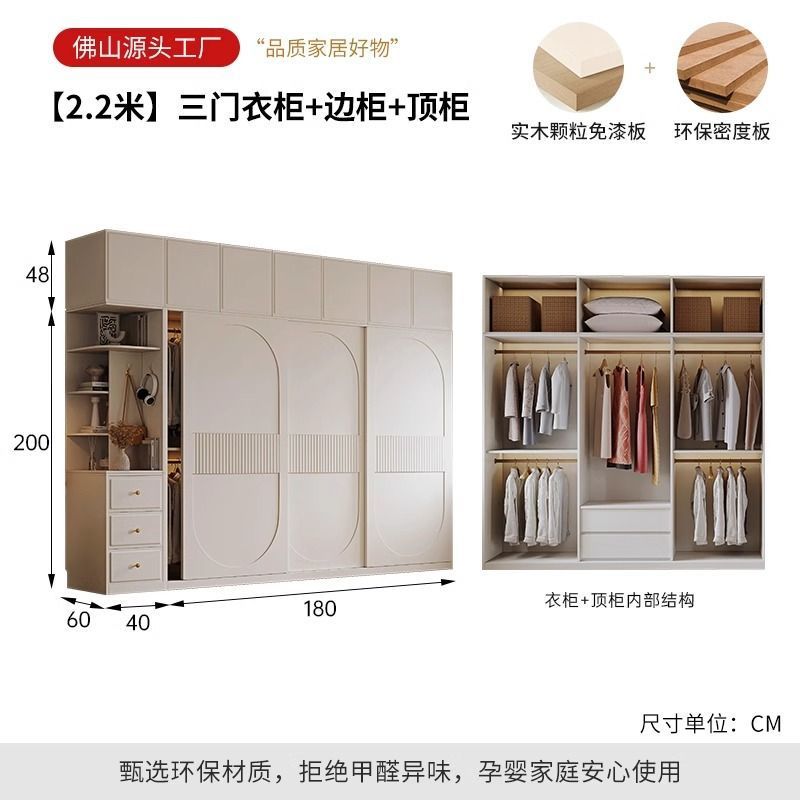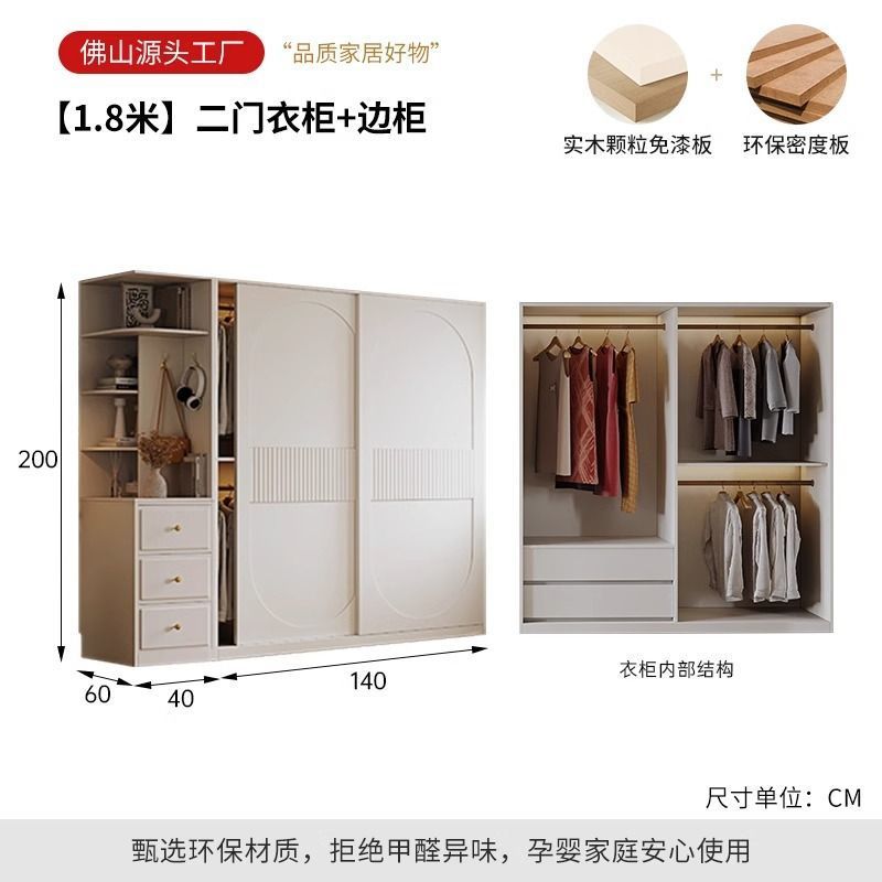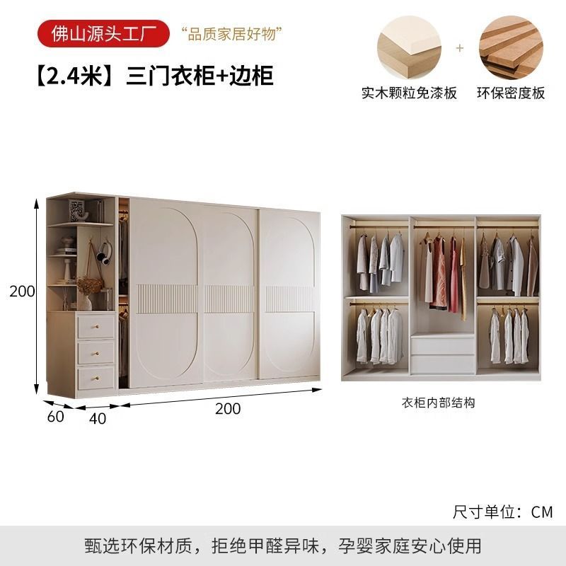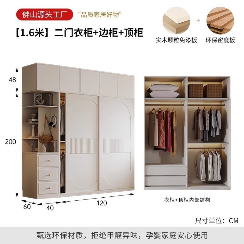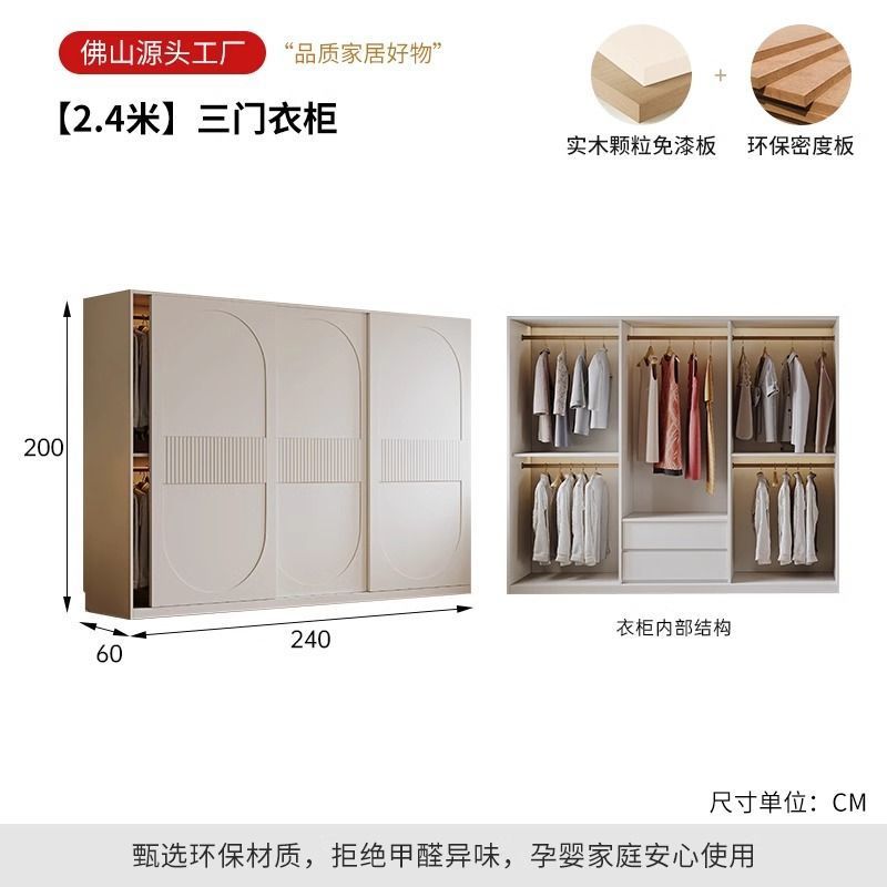 새로운 옷장 인기 크림 스타일 슬라이딩 도어 옷장 현대적인 미니멀리스트 홈 침실 완제품 코트 캐비닛