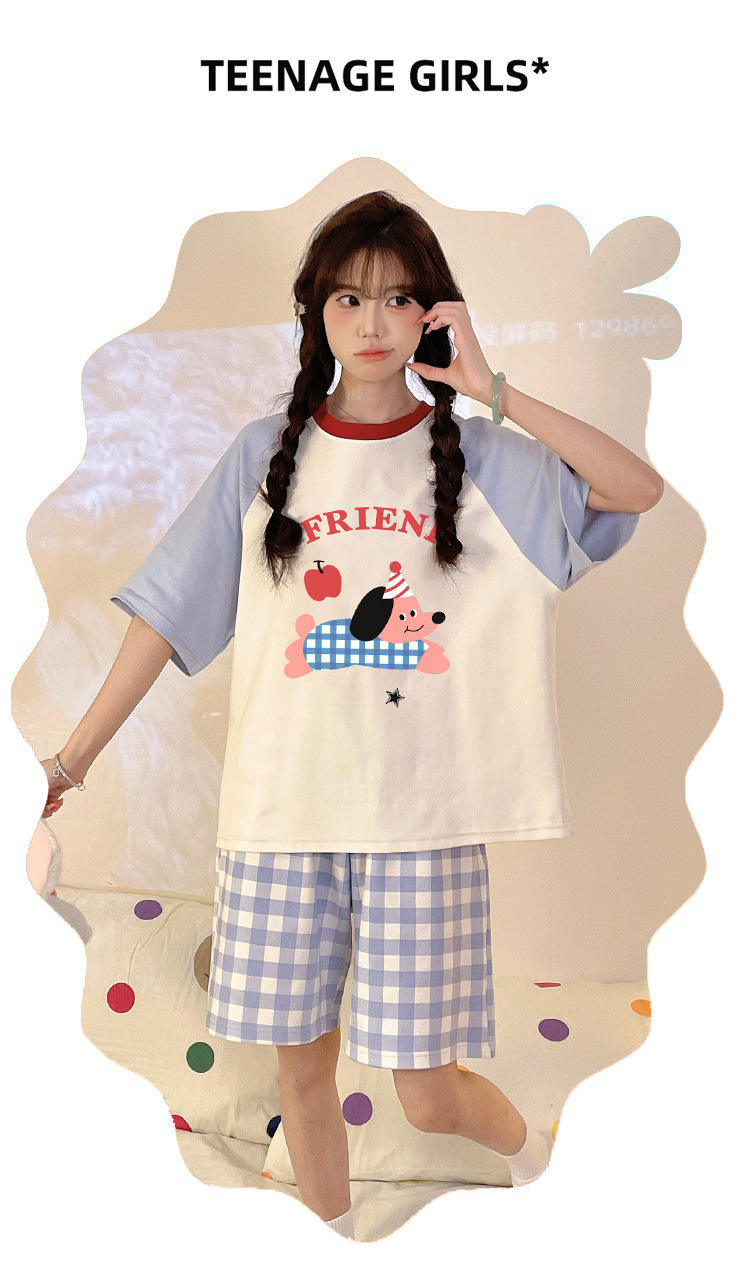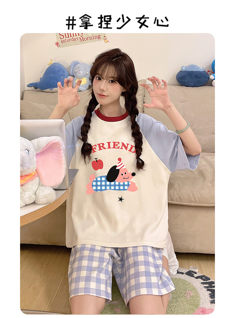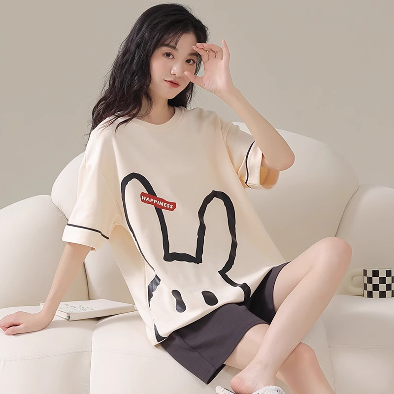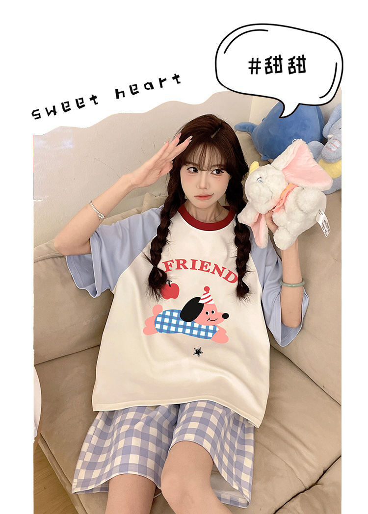 여성용 잠옷 여름 만화 반팔 반바지 여름 플러스 사이즈 귀여운 여성용 홈웨어 세트 겉옷스토어 가기