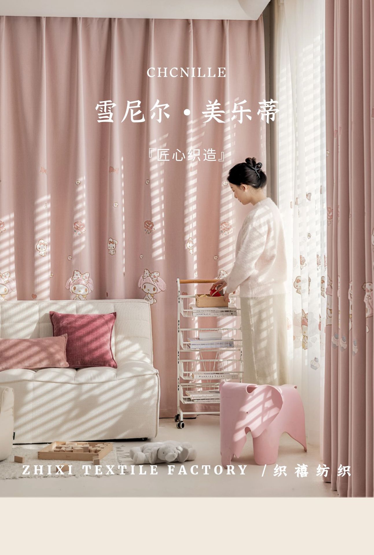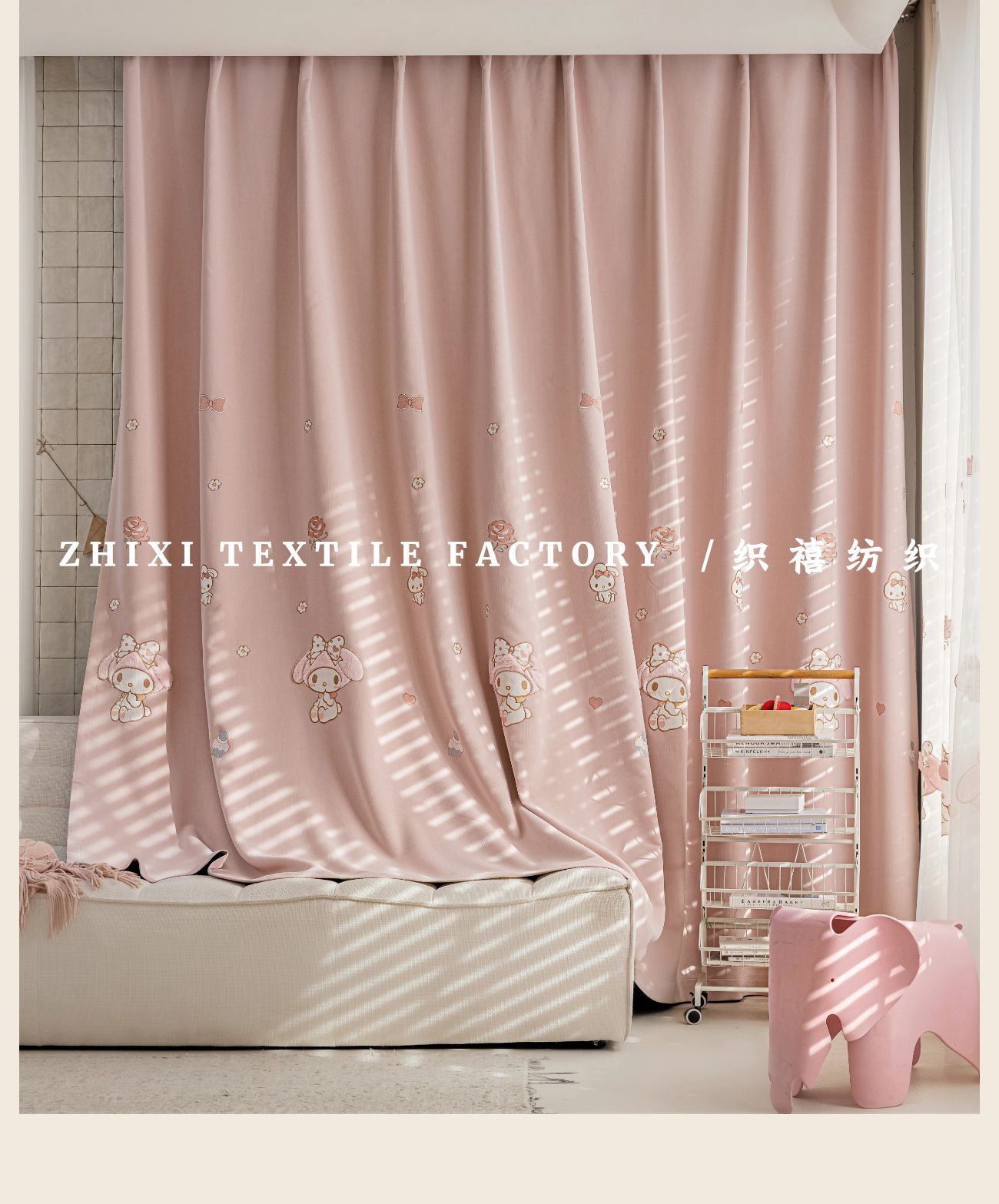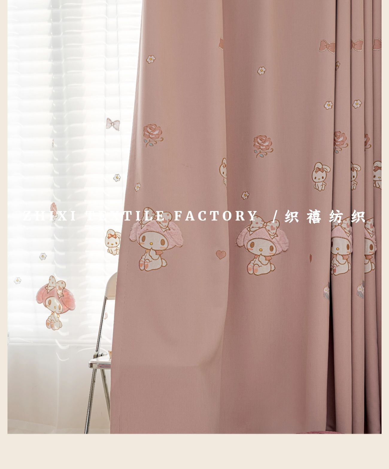 어린이 방 셔닐 자수 커튼 만화 소녀 공주 방 핑크 멜로디 빛 차단 커튼 거즈 커튼 도매