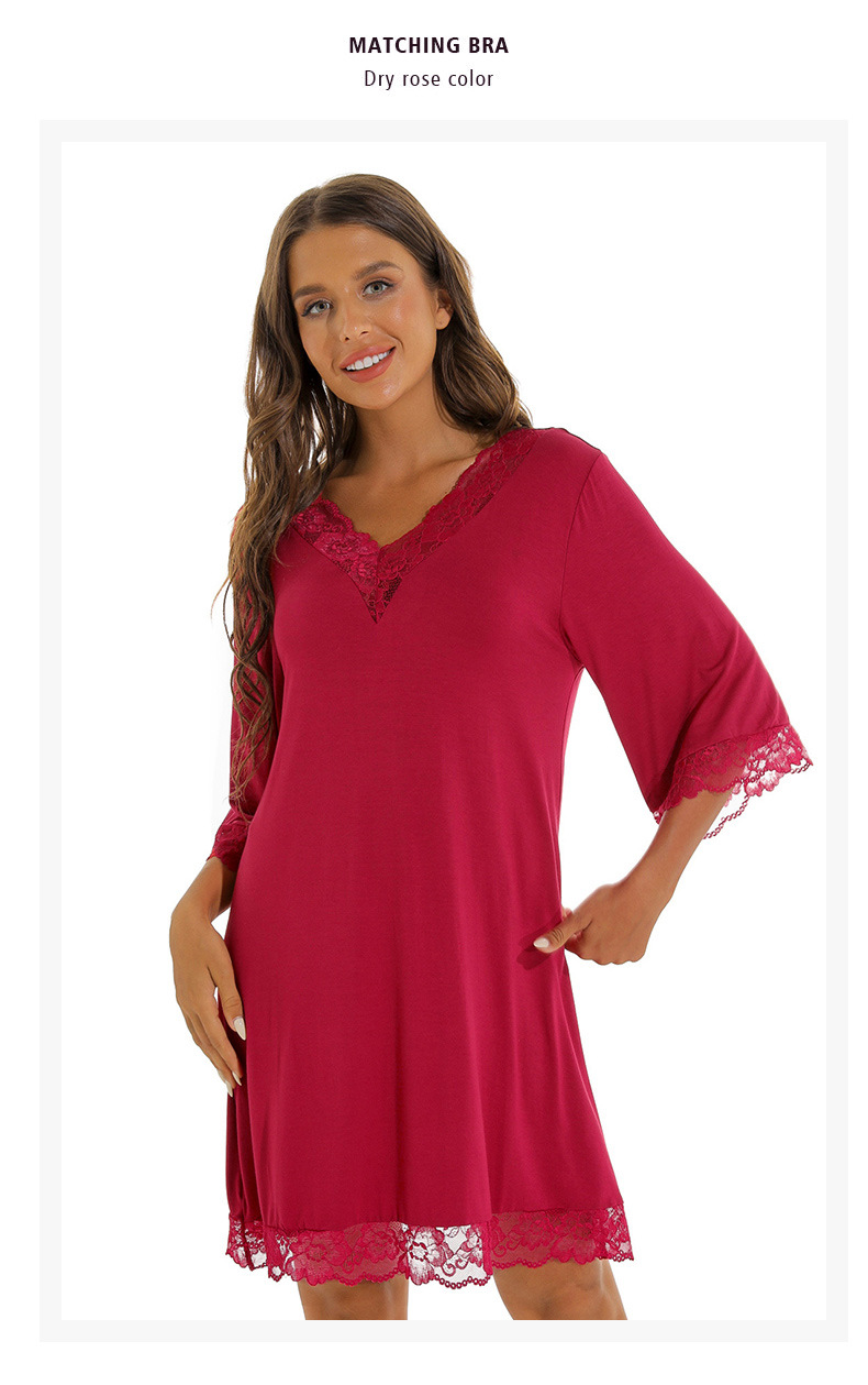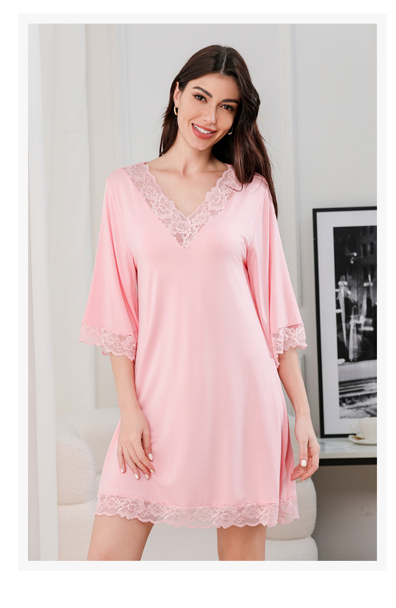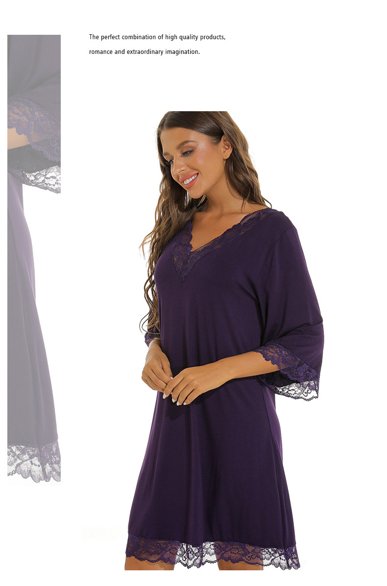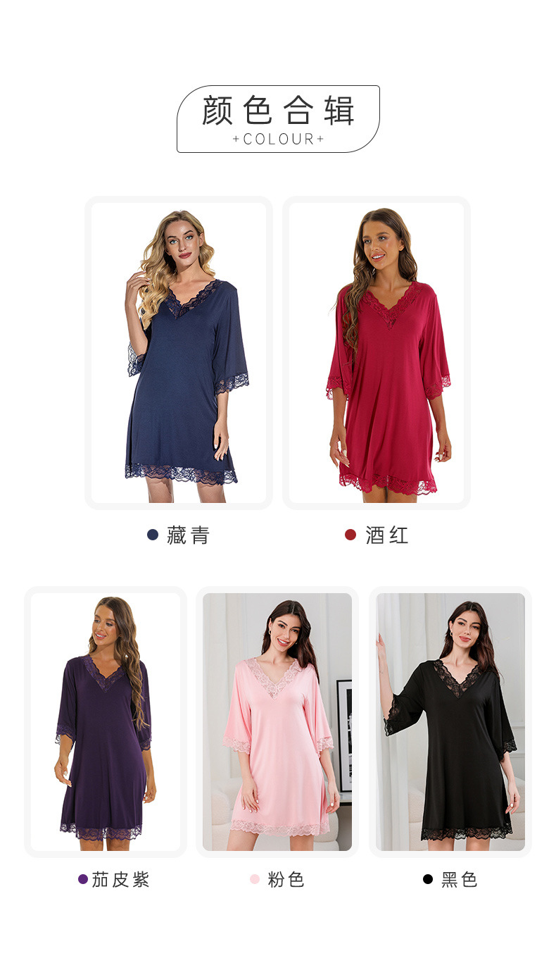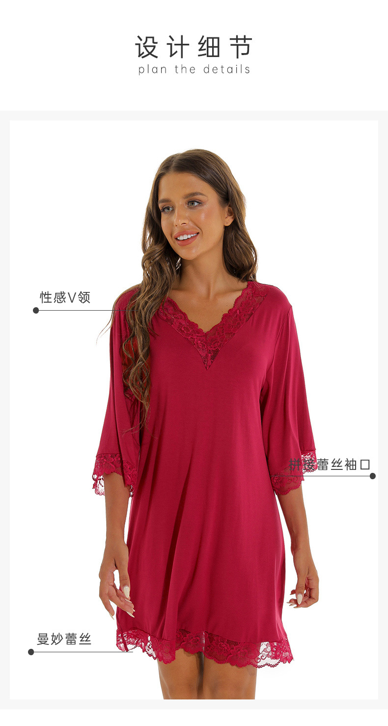 Wow 맞춤형 레이스 섹시한 v 넥 순수 코튼 홈웨어 잠옷 여성용 대형 루즈 대외 무역 7부 소매 잠옷스토어 가기