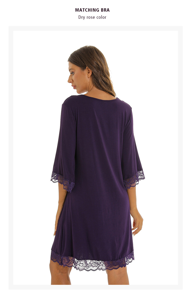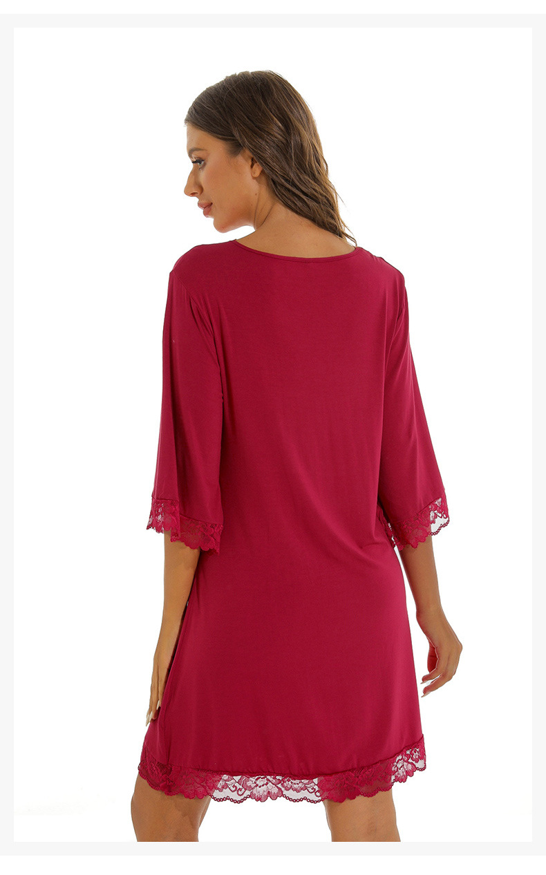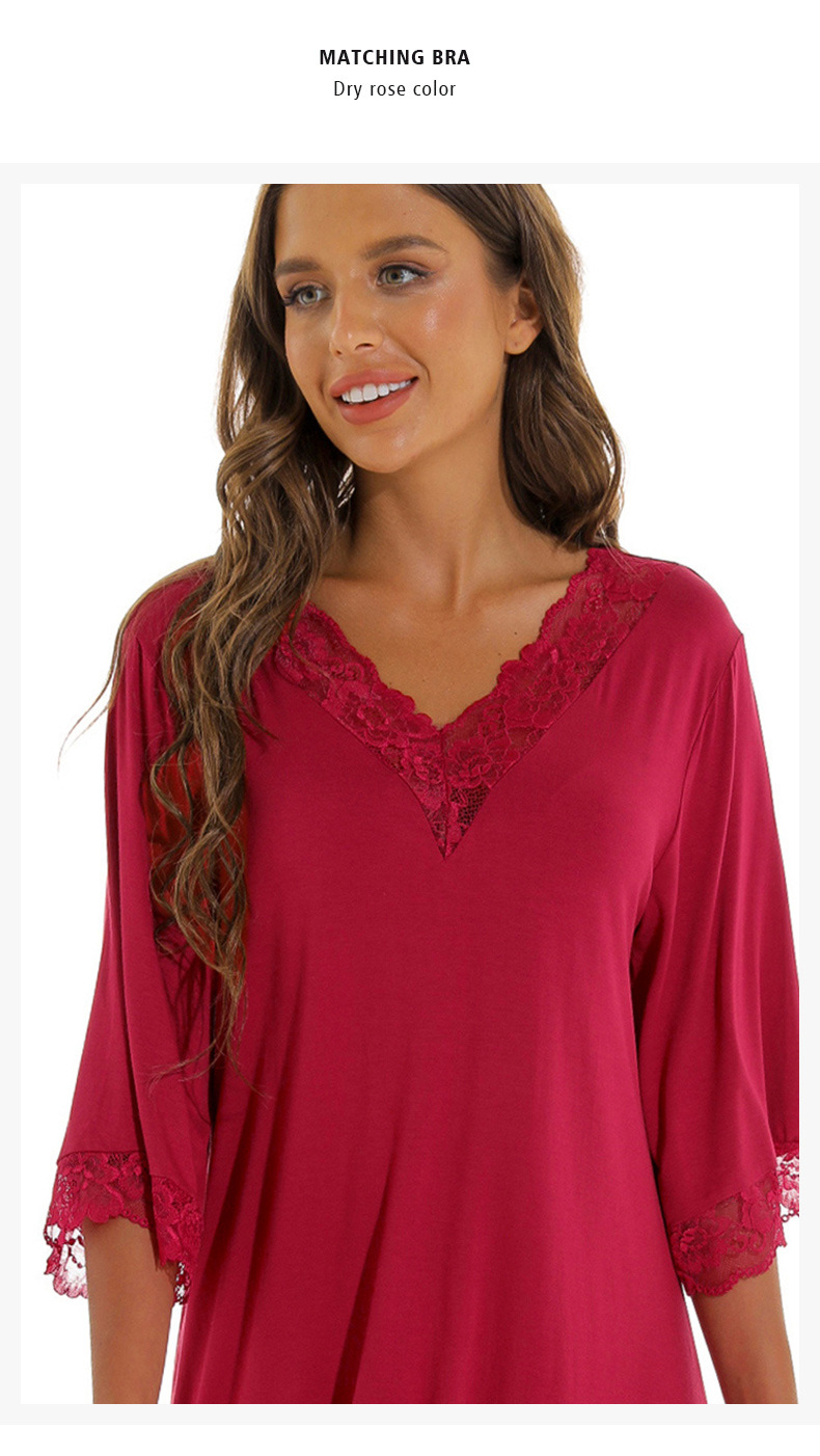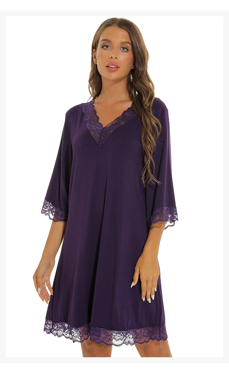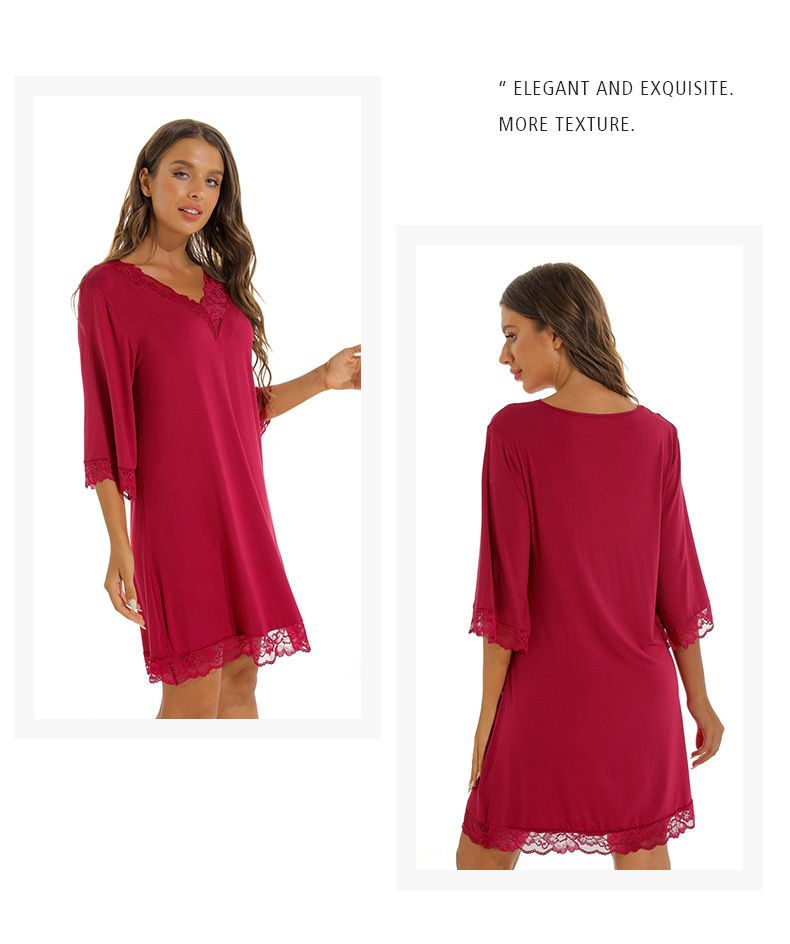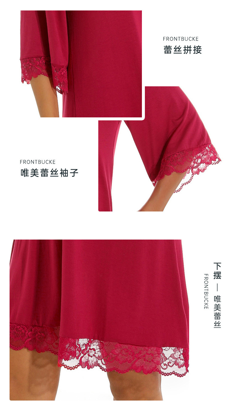 Wow 맞춤형 레이스 섹시한 v 넥 순수 코튼 홈웨어 잠옷 여성용 대형 루즈 대외 무역 7부 소매 잠옷스토어 가기