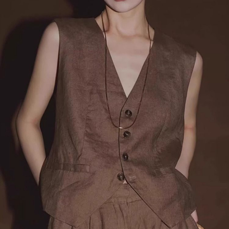 여성을위한 프렌치 린넨 조끼 여름 패션 하이 엔드 올드 머니 스타일 민소매 조끼 여성을위한 서양식 슬림 양복 조끼 탑스토어 가기