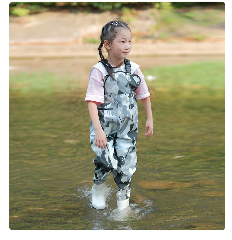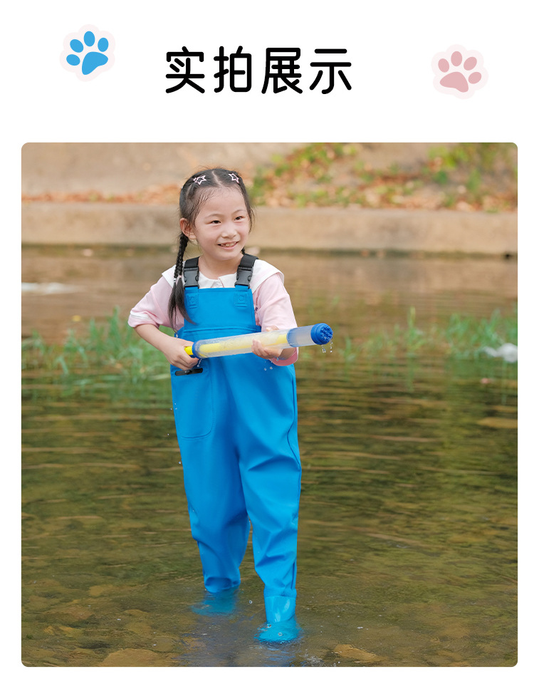 새로운 여름 해변 원피스 바지, 바다 장비, 물놀이 레인 팬츠, 방수 어린이 장화 도매스토어 가기